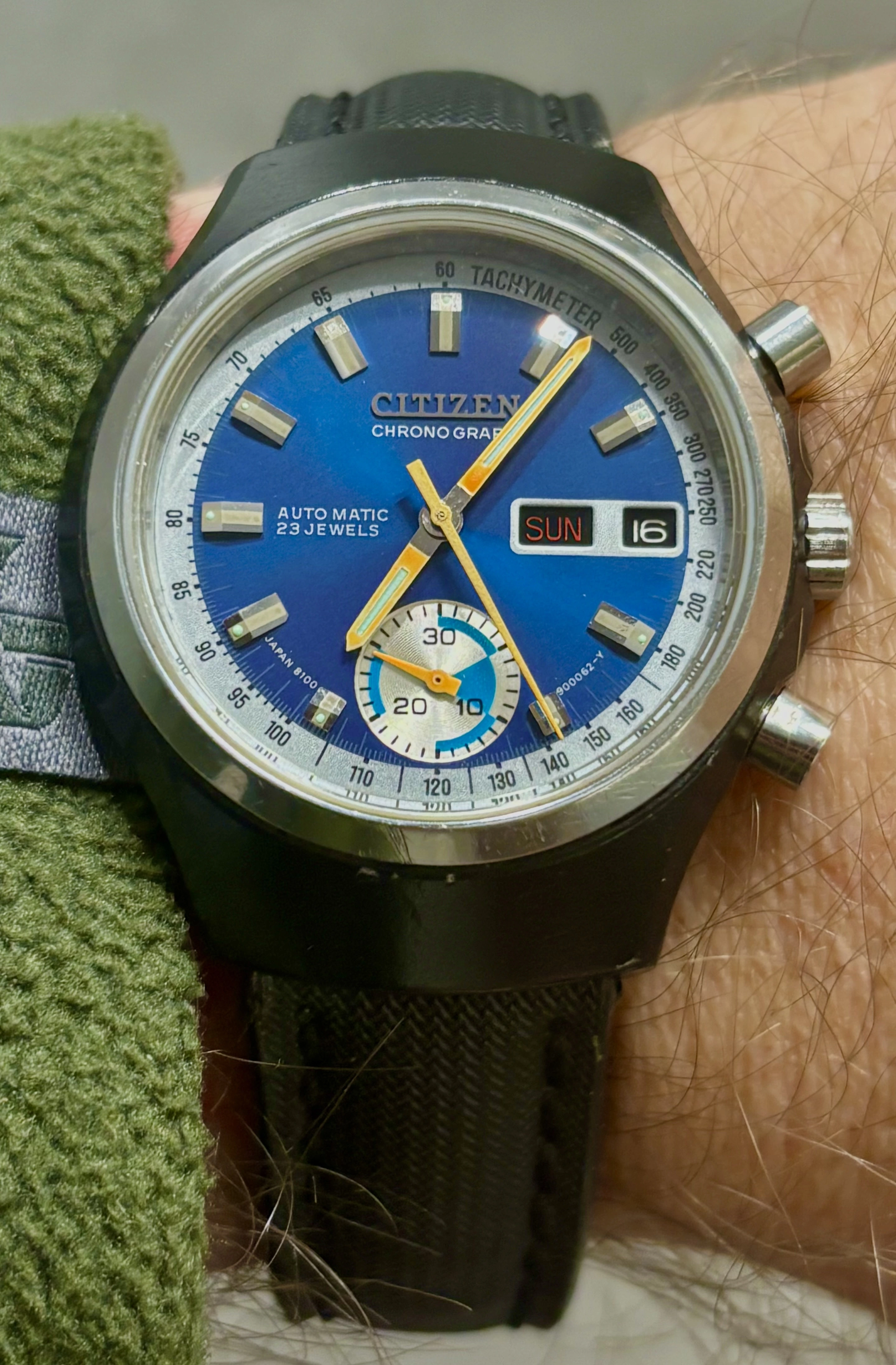 I had to have it! Now wearing a NOS 20mm Shark skin No.27 strap, which suits the watch beautifully!