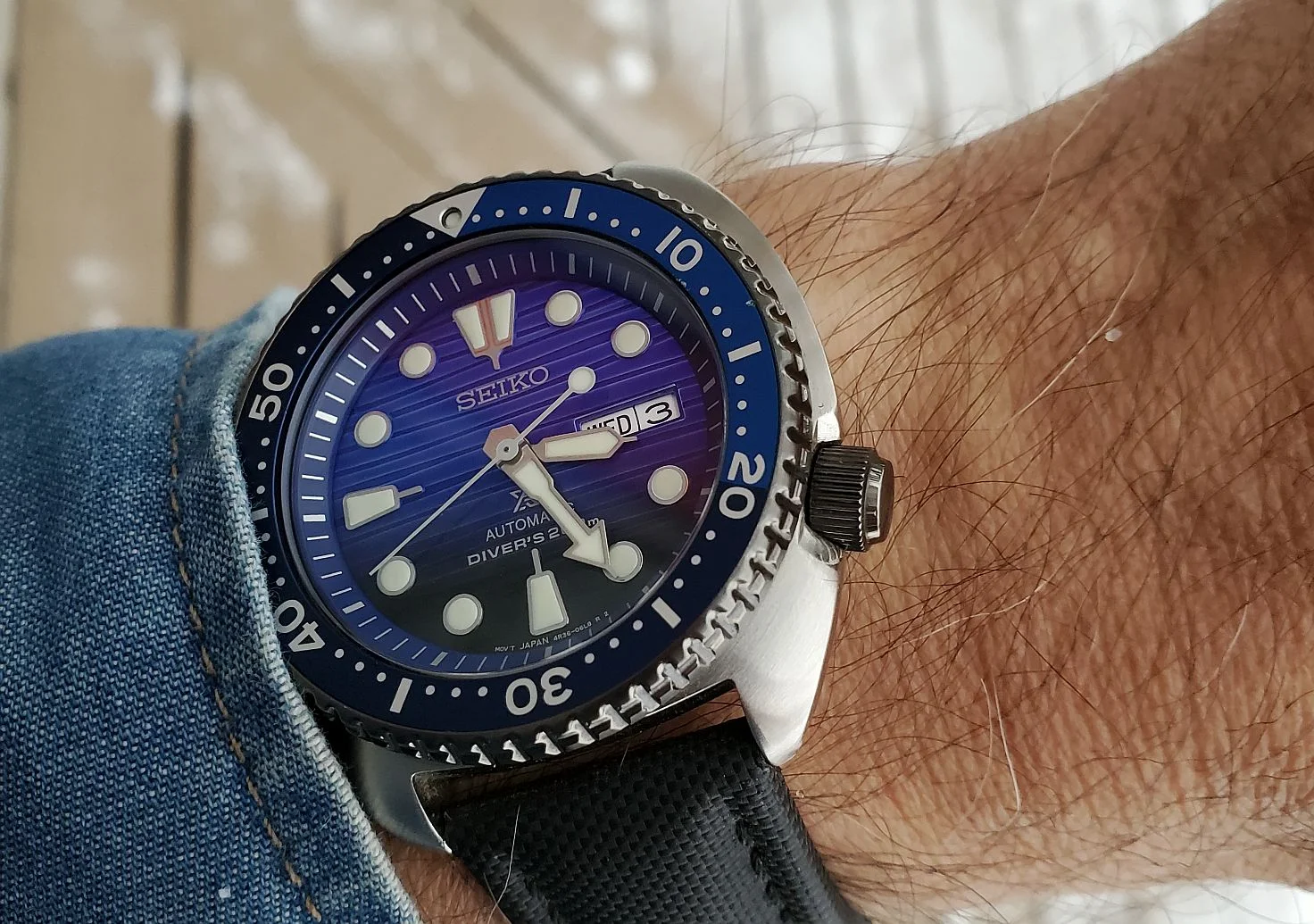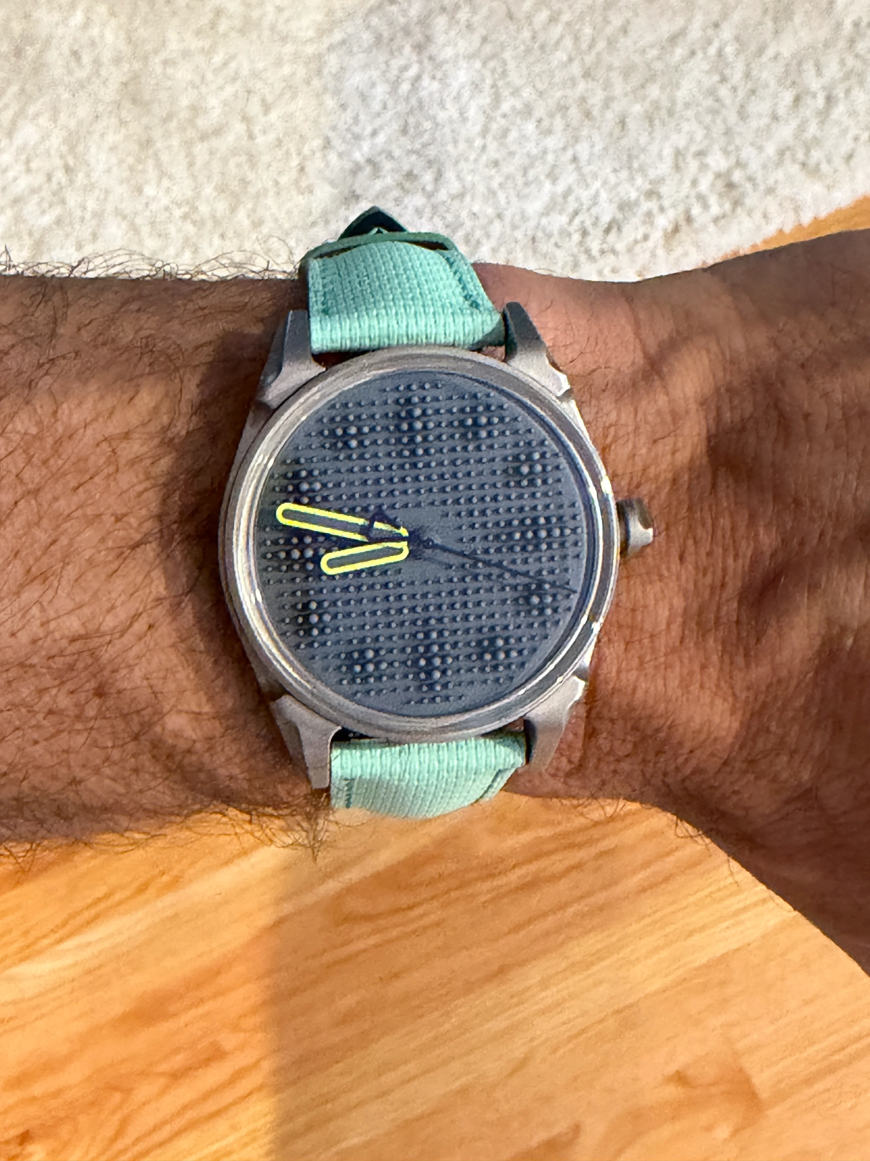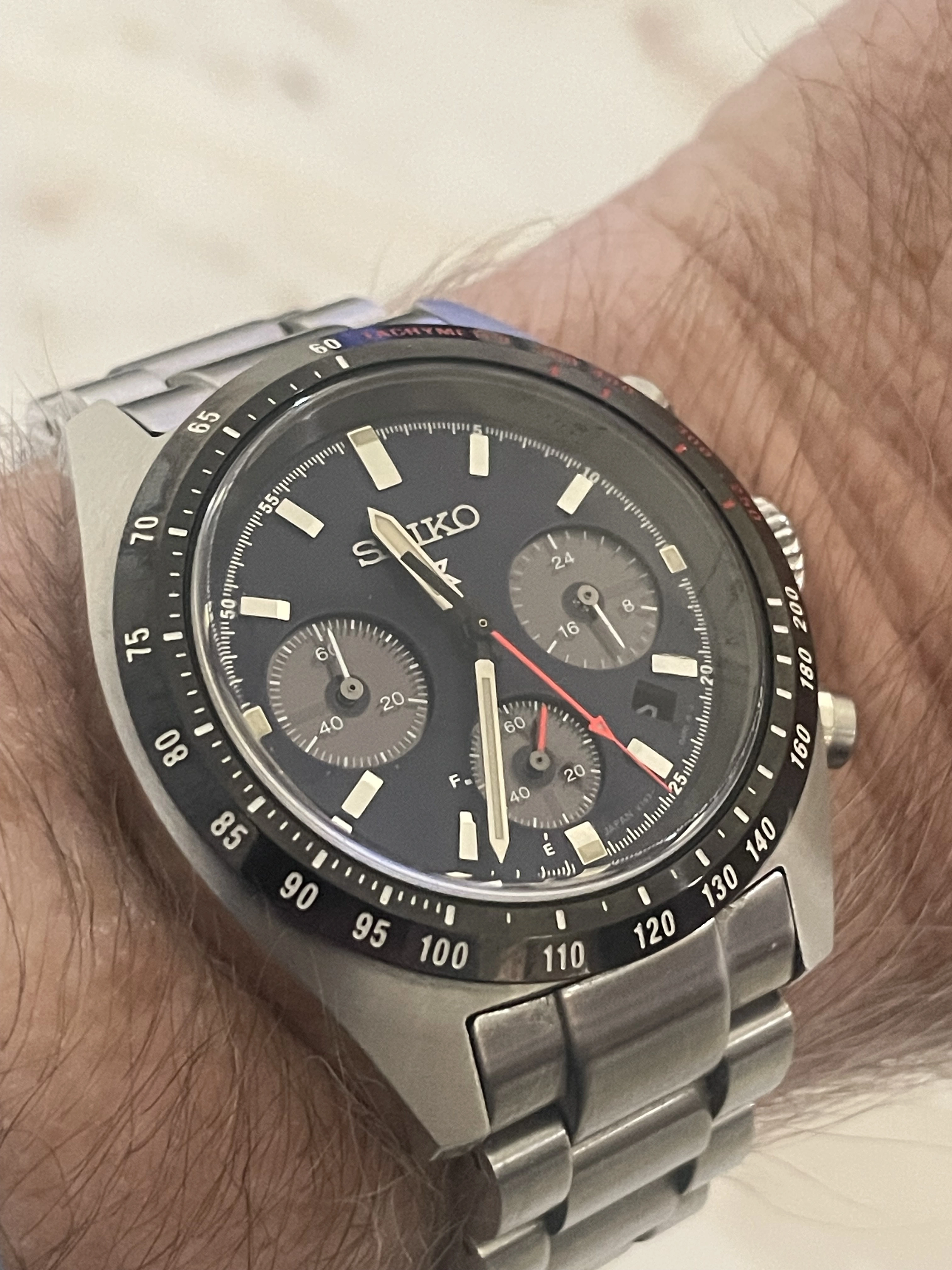 Yes, matching the bezel. Seems to be resisting wear quite well too. I'm also still discovering little Easter eggs in many of Seiko's SE and LE models which don't jump out in their stock photos.