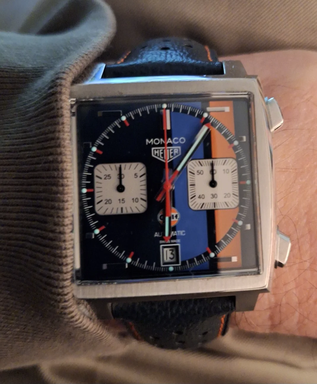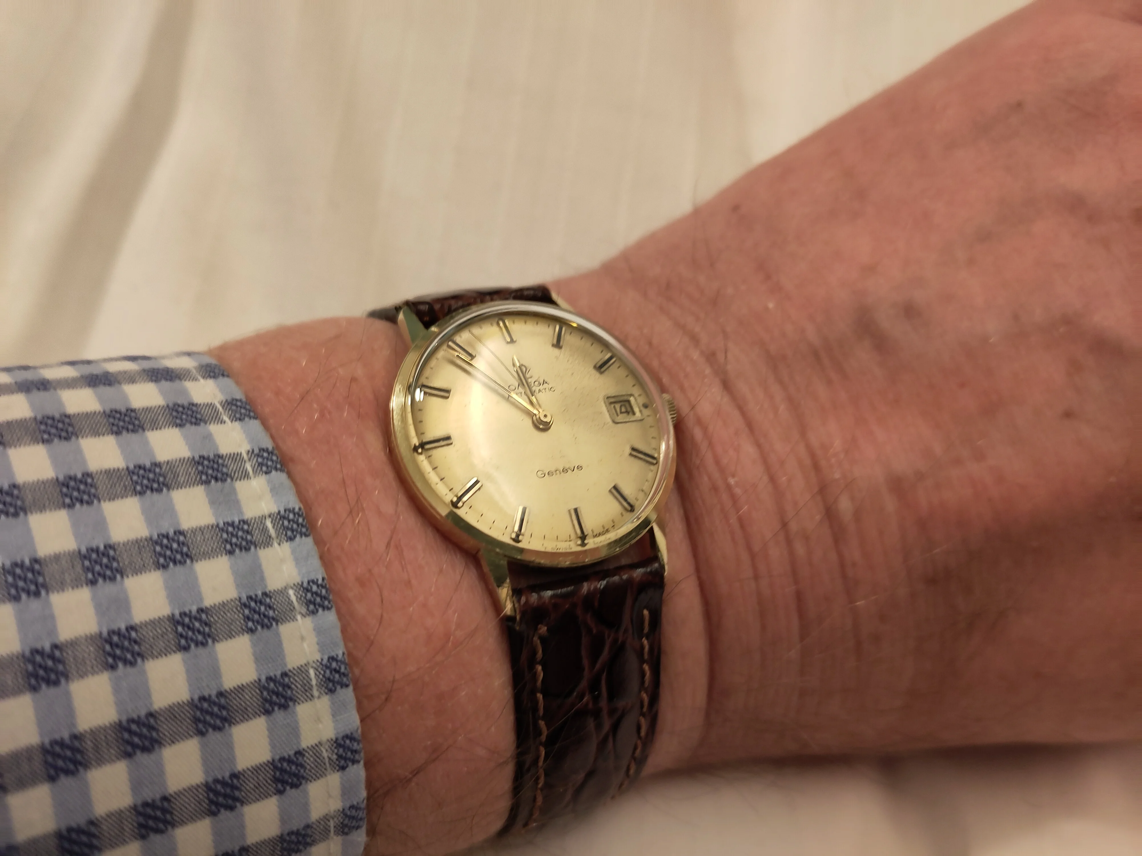 Posts 2,830 Likes 8,324 hen ·Dec 13, 2025 Christmas party and I am giving the Geneve some wrist time. No more party time for this old fart. Good night to you all. But mrs hen had a new watch today, a beautiful little Certina.