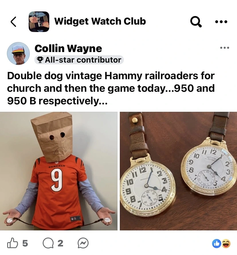Posts 6,574 Likes 78,068 Mad Dog ·Dec 14, 2025 Posted at our Delta pilot Widget Watch Club today…grateful to have two vintage Hammy railroaders in good working order…