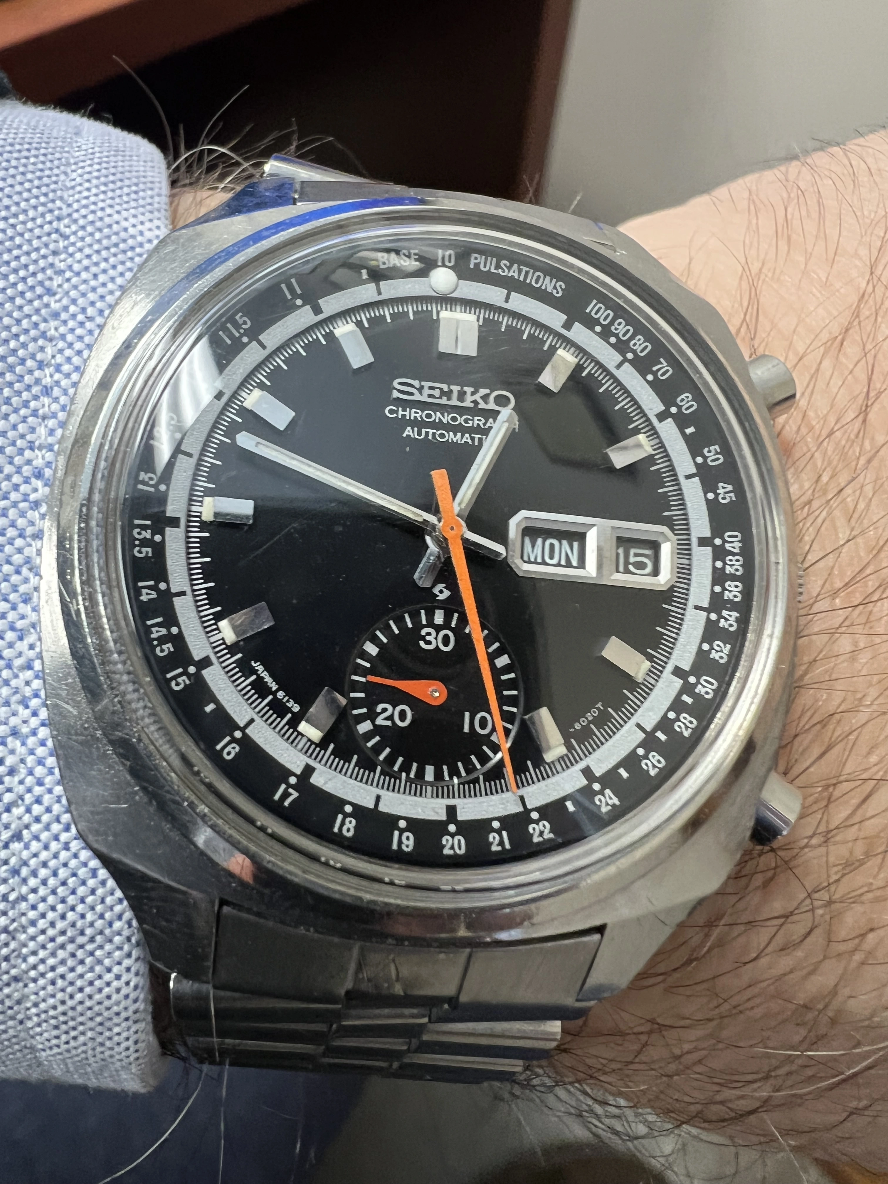I love that watch because it's the automatic version of the first really nice watch I owned! I always regretted not buying an auto, and as a result ended up selling the watch after wearing it daily for years. I'd like to find one like yours to replace it, but they're not that common.