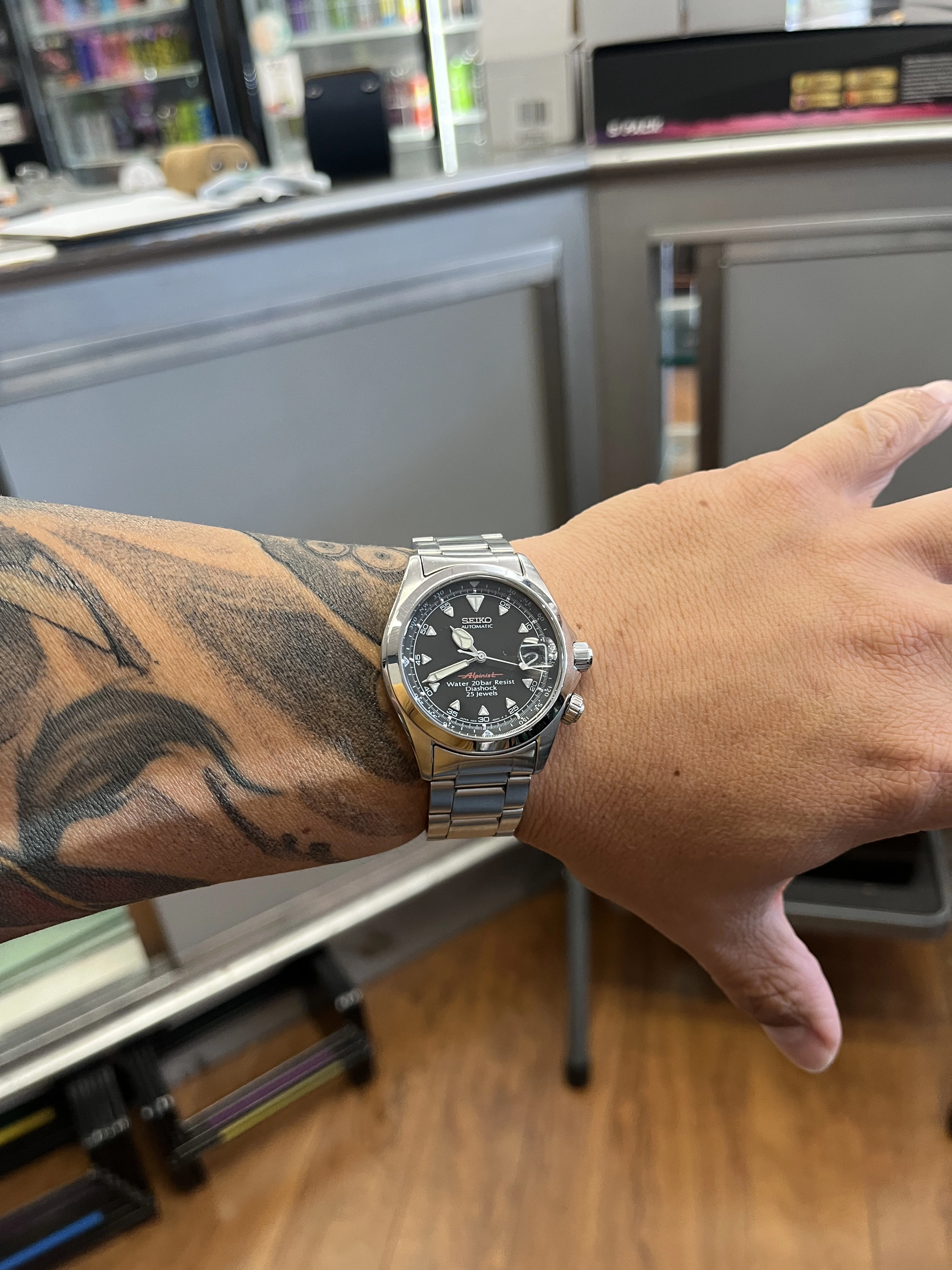 Posts 231 Likes 672 Mister2kris ·Dec 17, 2025 Bought something cool today! “Red Alpinist” Seiko. The spider texture is barely noticeable in pics but its awesome!