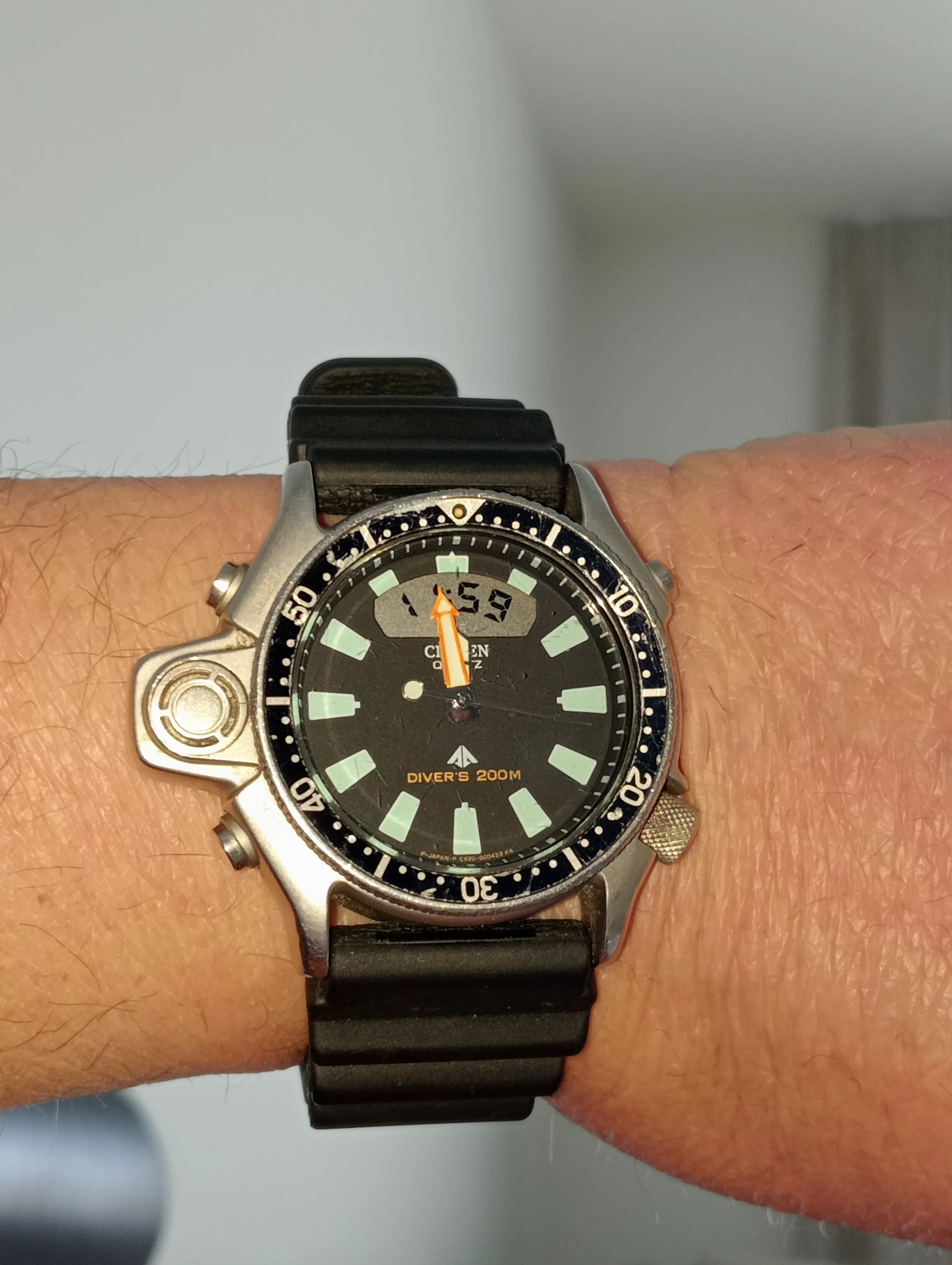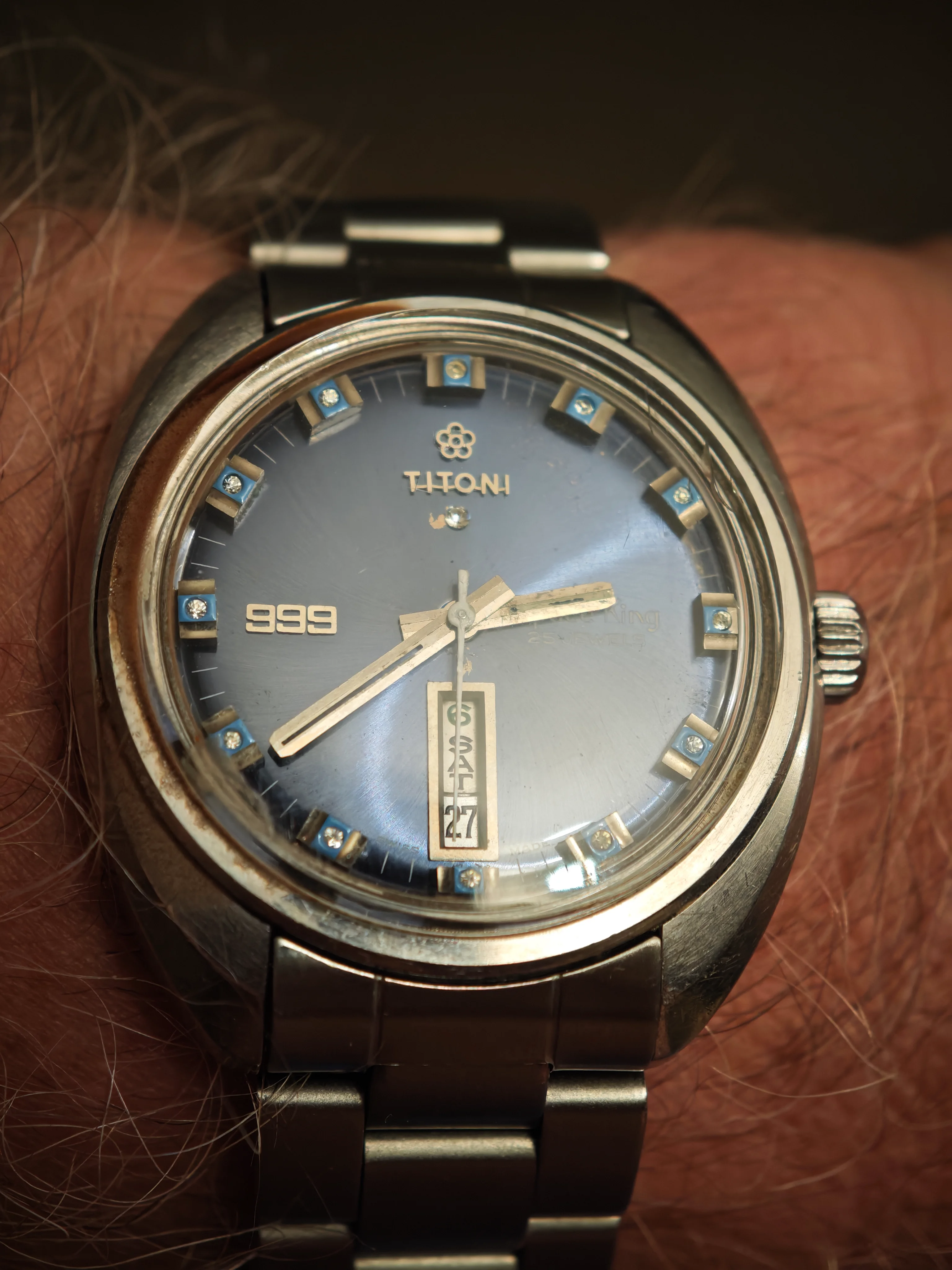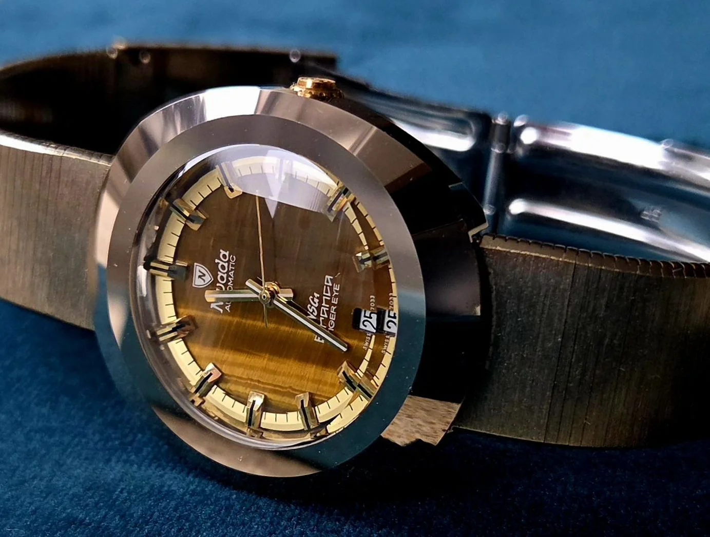 Posts 60 Likes 453 F.Antl ·Dec 26, 2025 Today, just as yesterday, a vintage watch that perfectly fits the festive season: Nivada VSG1 Branca Tiger Eye with a pale gold-plated tungsten carbide case, a faceted crystal and a unique dial on its original bracelet. Cheers, F.Antl