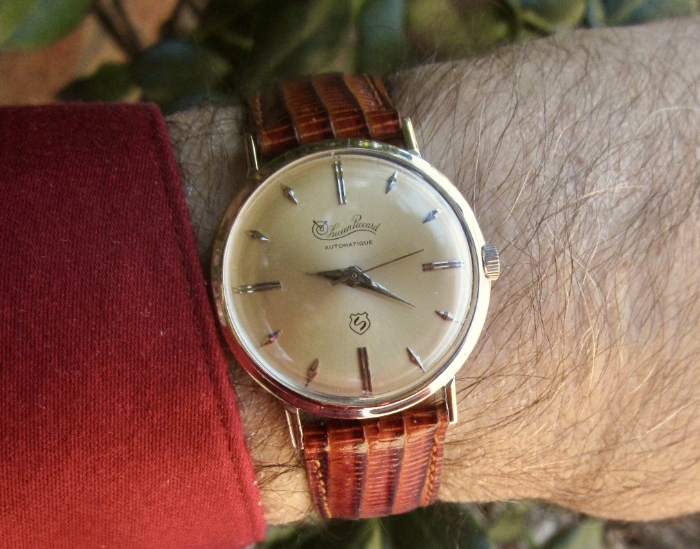 Posts 6,653 Likes 52,364 noelekal ·Dec 31, 2025·Home For Wayward Watches Festive new strap in anticipation of New Years Eve, on the only solid white gold cased watch in the "Home For Wayward Watches." A 1959 Lucien Piccard Sea Shark with A. Schilde 1656 movement that had been languishing with a broken strap.