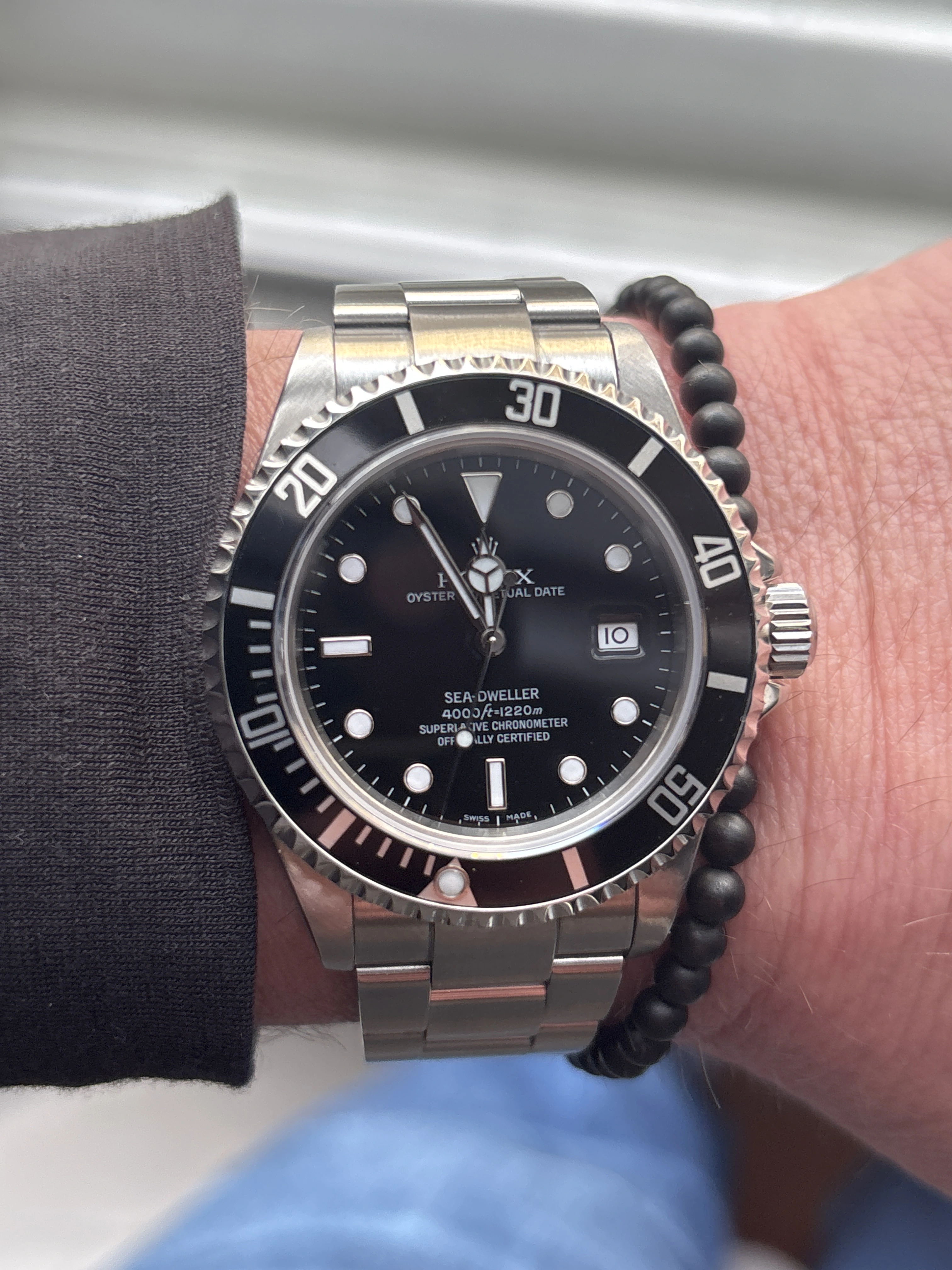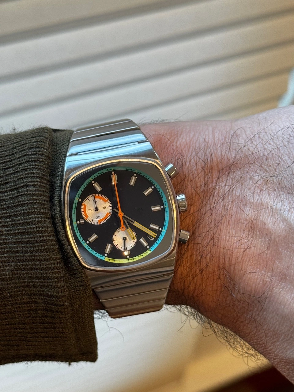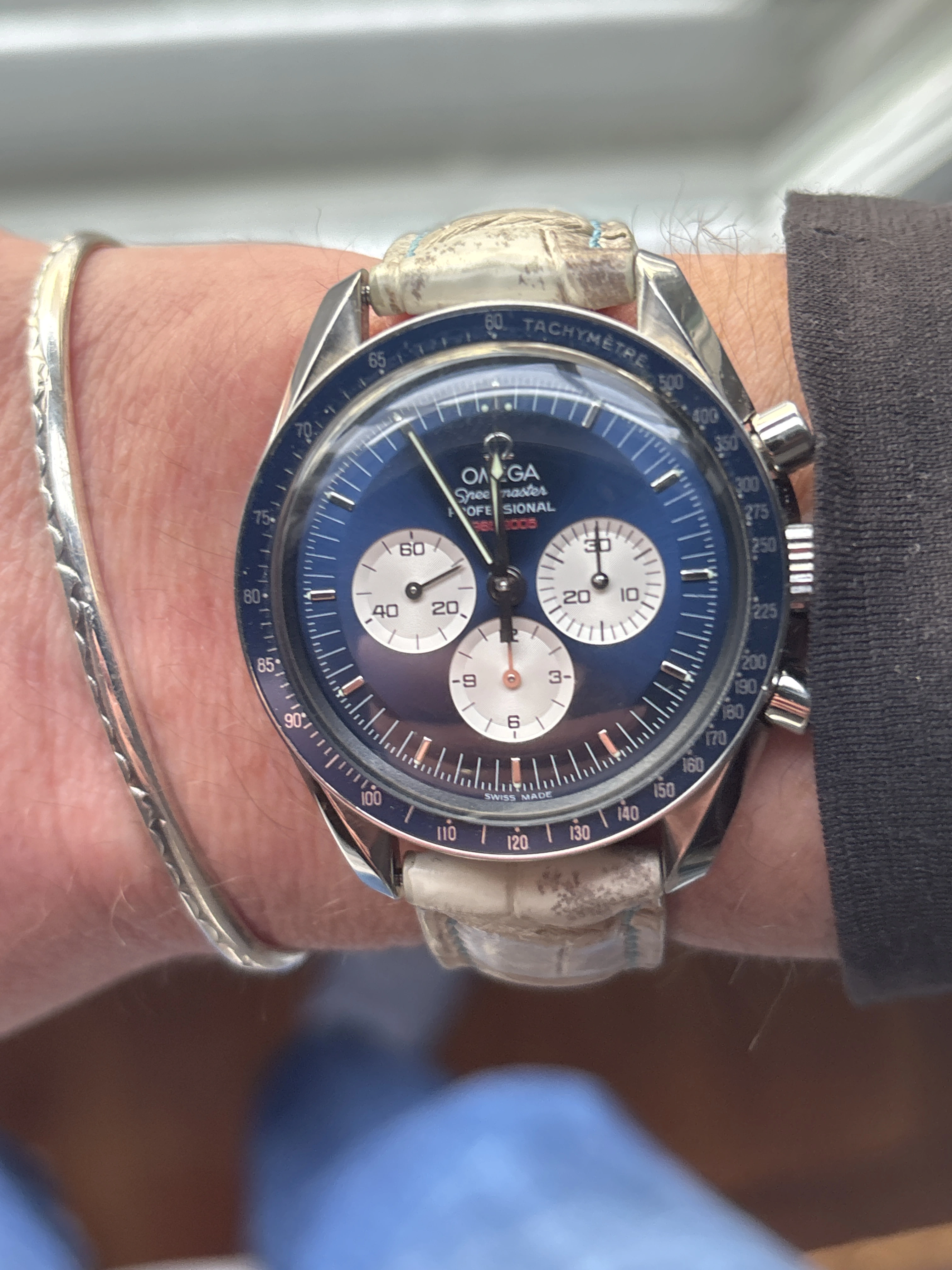 ·16600 just back from RSC, and I’m so psyched to have this back! Stuffing the frog back in the watch box for a bit…I’m also psyched to be wearing my beloved G4. The story, unbelievable courage of the first EVA, and I swear I see this dial turning purple over the coming decades!! Thing 2 will be rocking a purple Speedy in 40 years!! Have a great weekend OF!!!