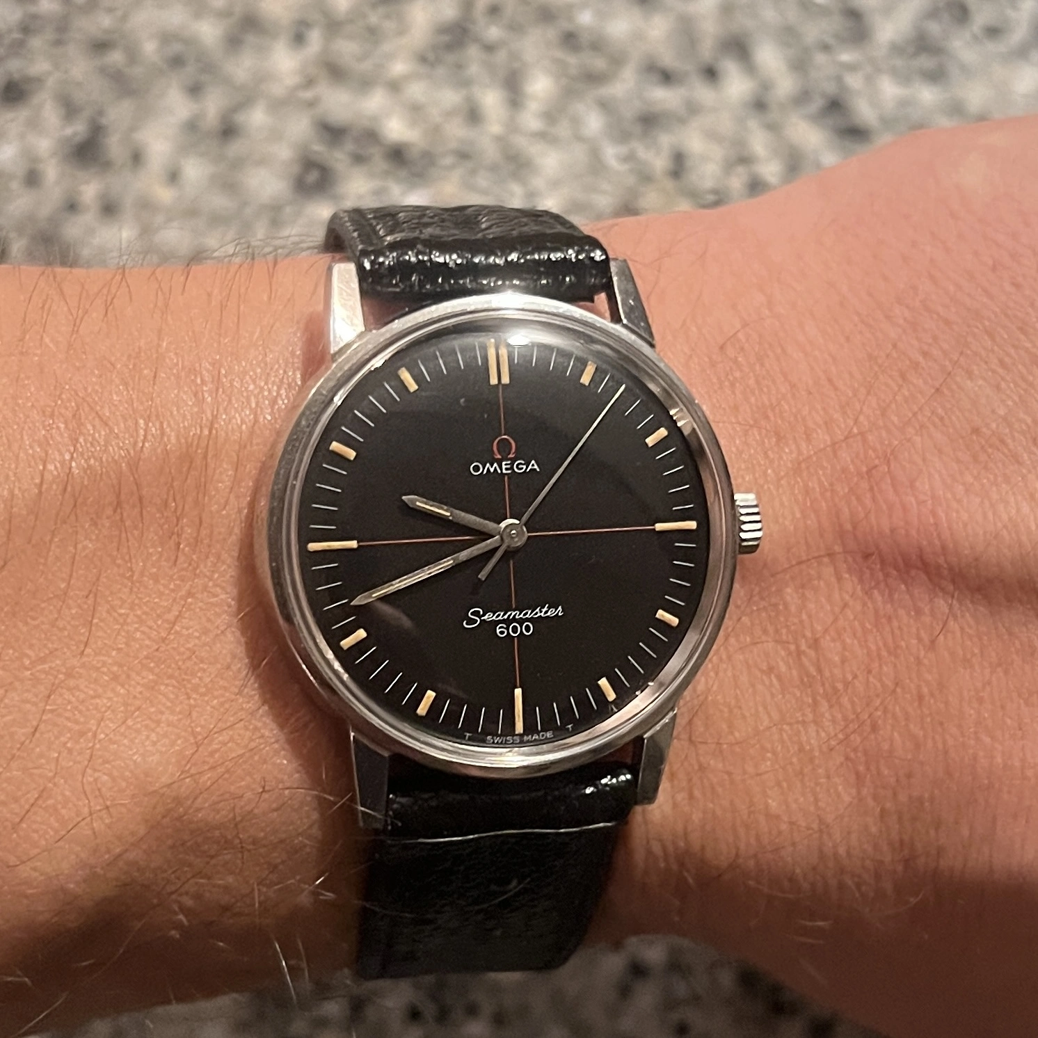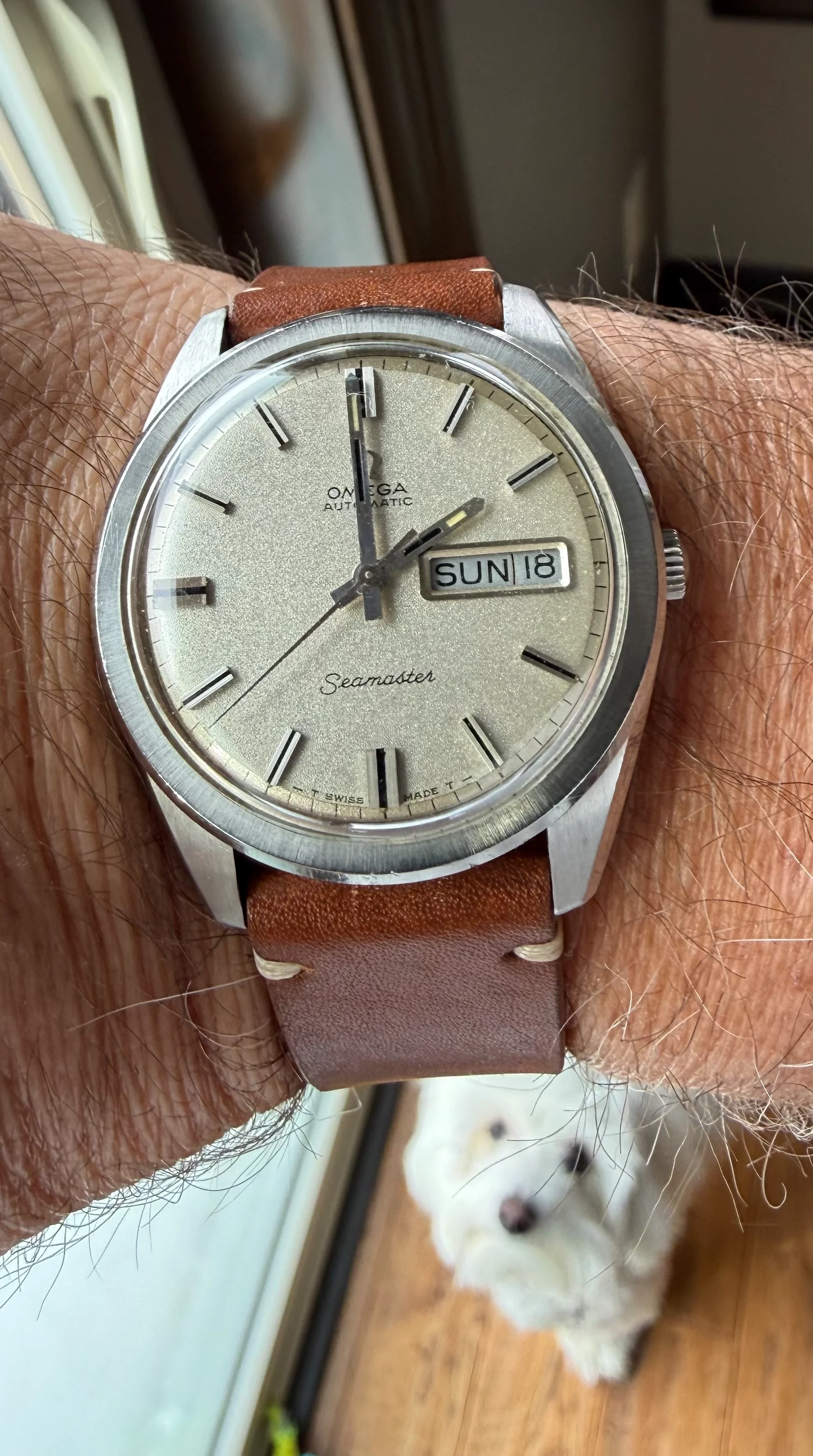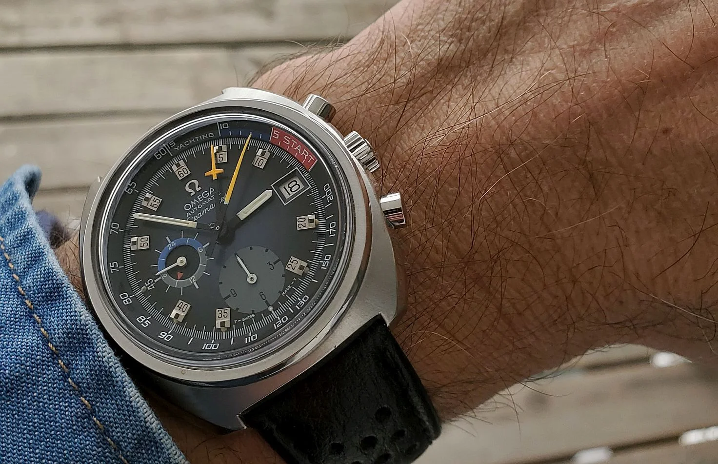 Everyone seems to be wearing wrist watches today. I’m all for parity, so in addition to two wrist watches, I’ll wear one of my Hamilton 992Bs. Steel case, melamine dial, short on pulchritude, but I rather like it. Likely from the late 1950s or early 1950s.