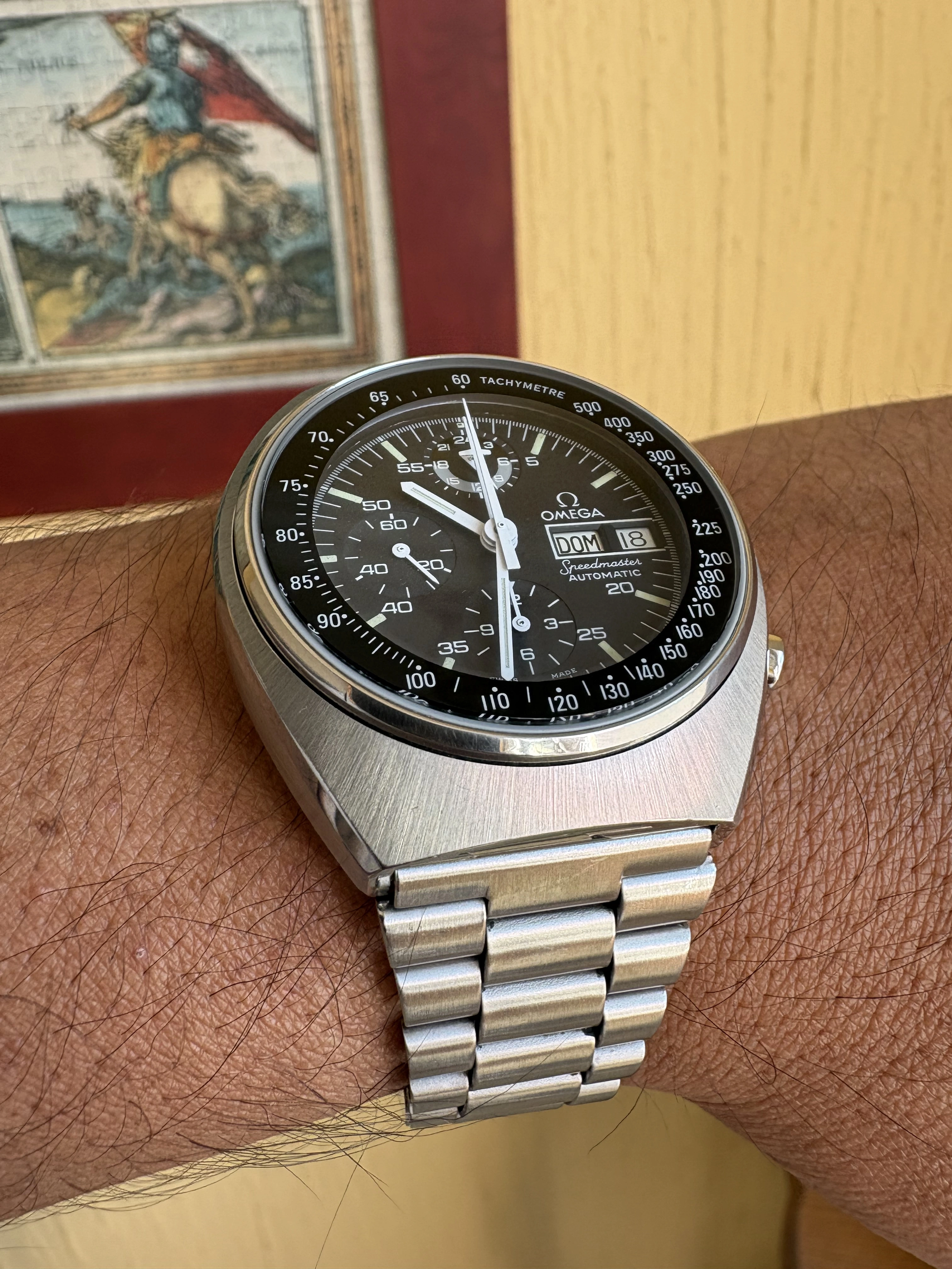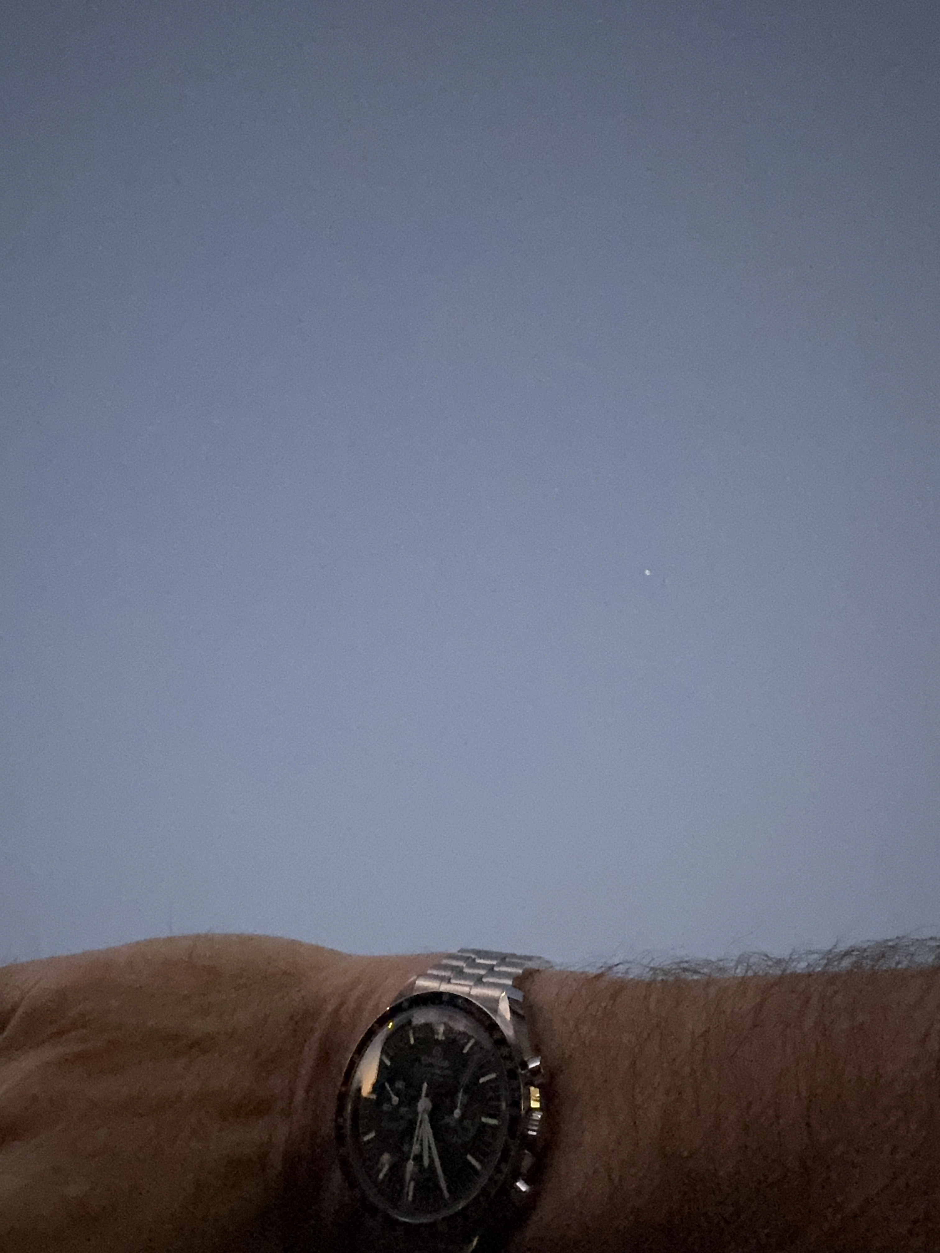 Hard to see but, Caught the ISS orbiting overhead approximately at the 1pm mark above my new Speedy Moonwatch last night 🌛
