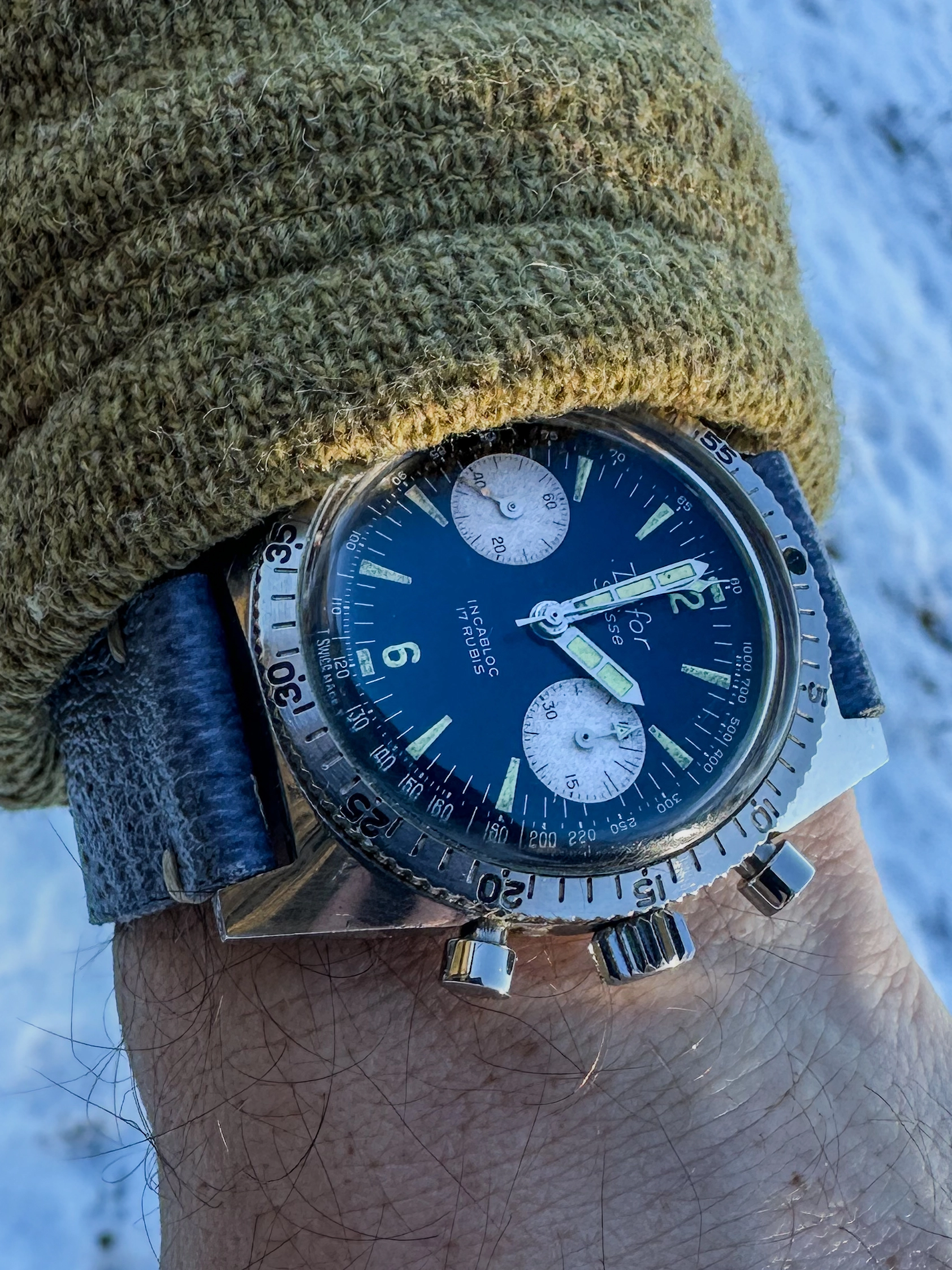 Posts 242 Likes 2,656 MrFriday* ·40m ago Lab companion. Had to change to a leather strap as the steel bracelet got quite cold during walks with the dog. I kind of like it anyway 😊