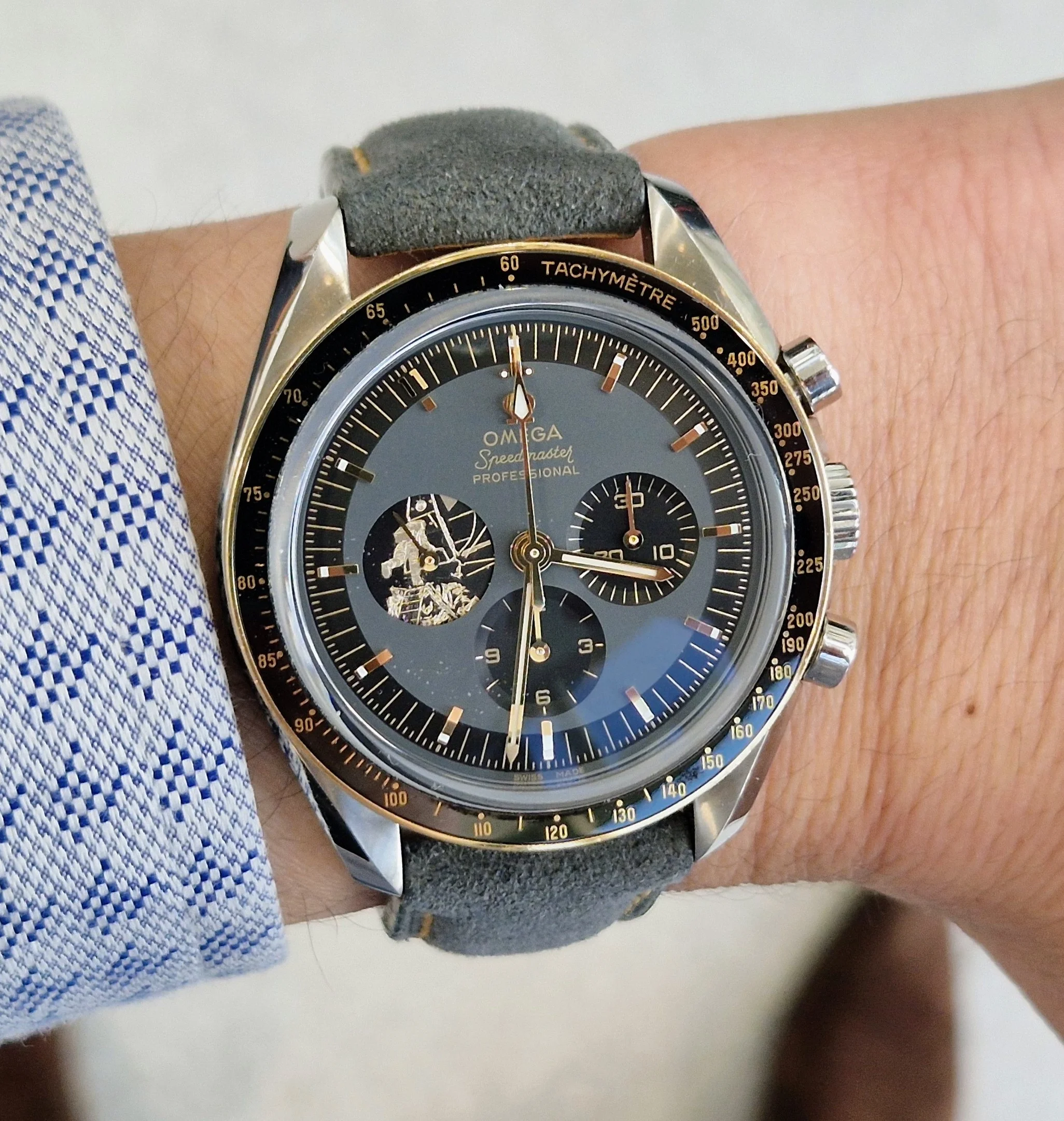 After a few days of enduring an Accutron 218 with an expansion bracelet that was about 2 links too short, and the resultant discomfort, I have decided to wear my one 50 year old Omega F300. This watch came to me, not running. Circuit and tuning fork seemed okay. It was bogged down with congealed oil, rendering it useless. So I cleaned it, and replaced the cracked crystal which cost me almost 4 x what I paid for the watch! But I ❤️ it!