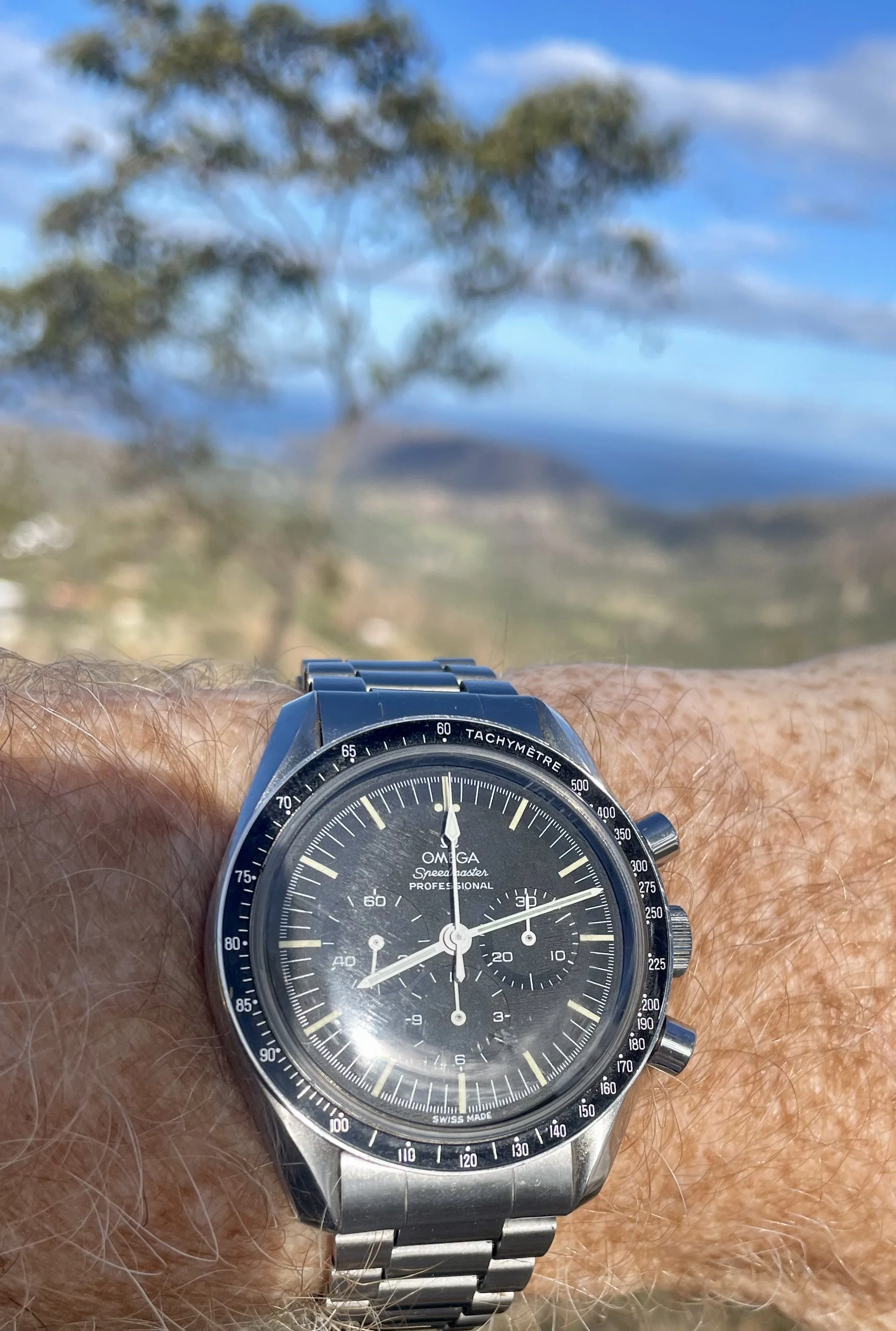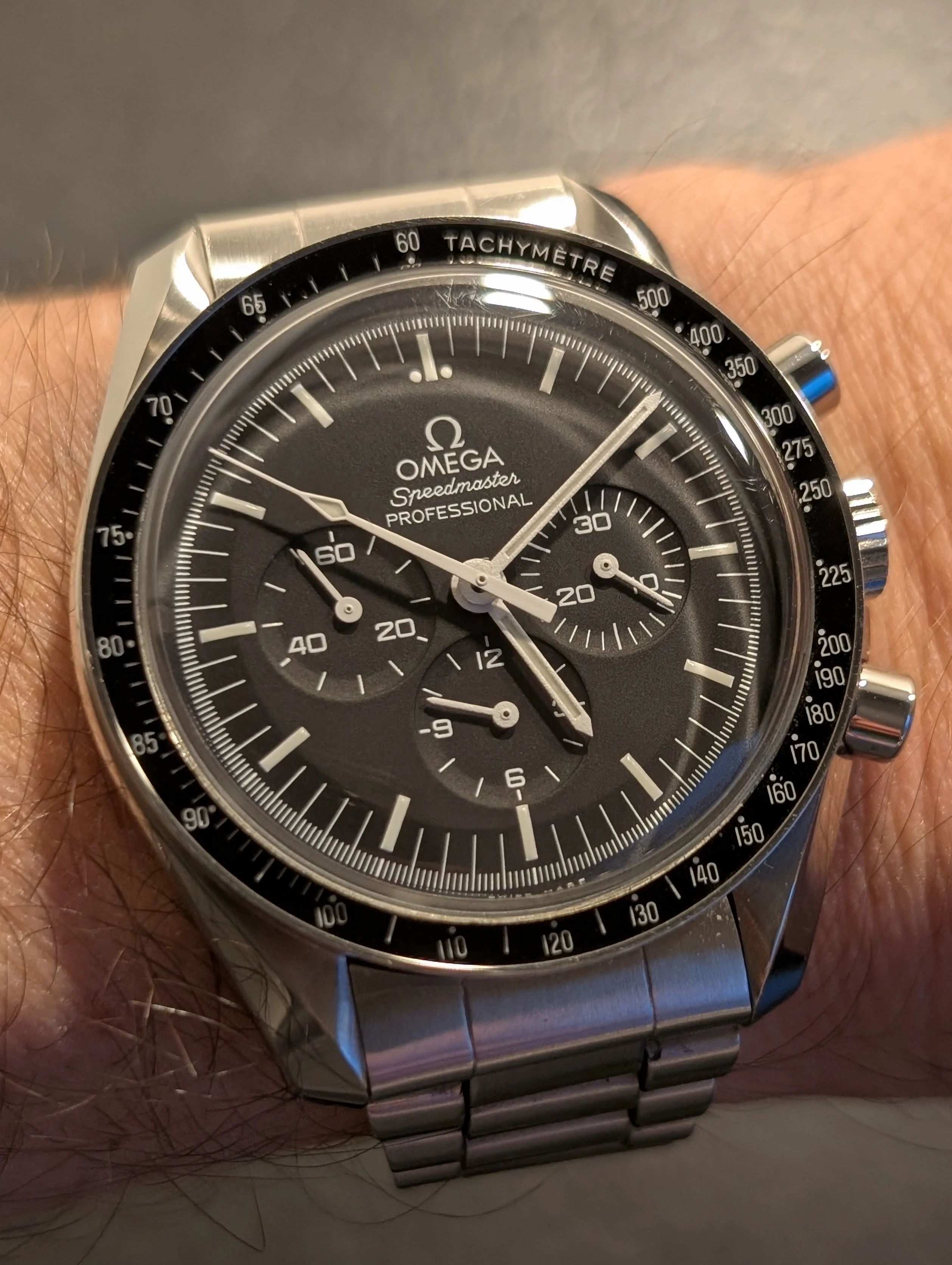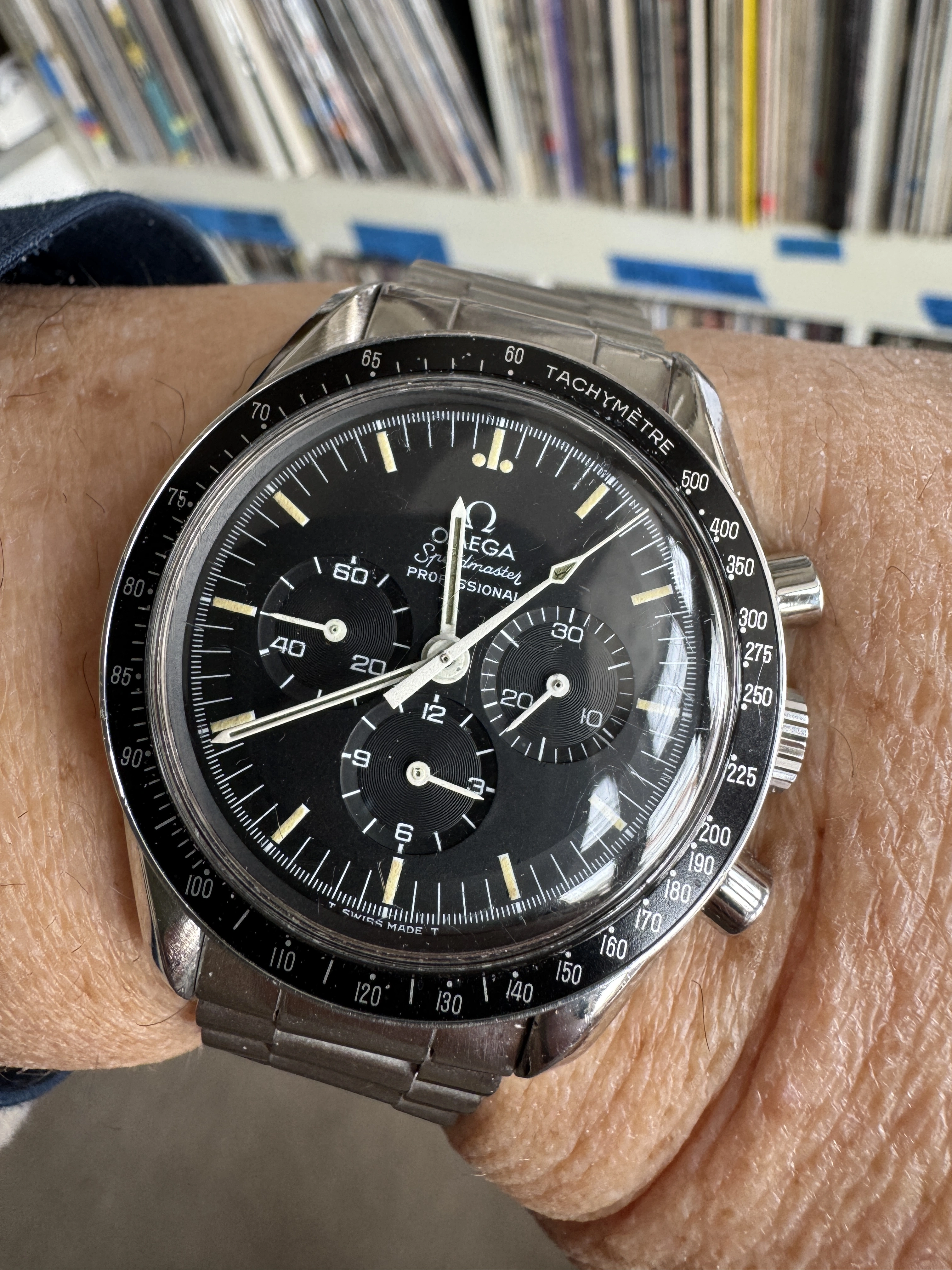 Sleet mixed with a little snow fell on Saturday and Sunday. It has solidified into mounds of slick ice that is impossible to safely negotiate. Cannot get out our doors due to the impediments of yuckiness. I am not accustomed to such mistreatment. I know I am a tender wimp when it comes to winter conditions compared with so many of y'all, but I've had enough of this. I'm about to cause something to happen and begin clearing this out while wearing a Speedmaster!