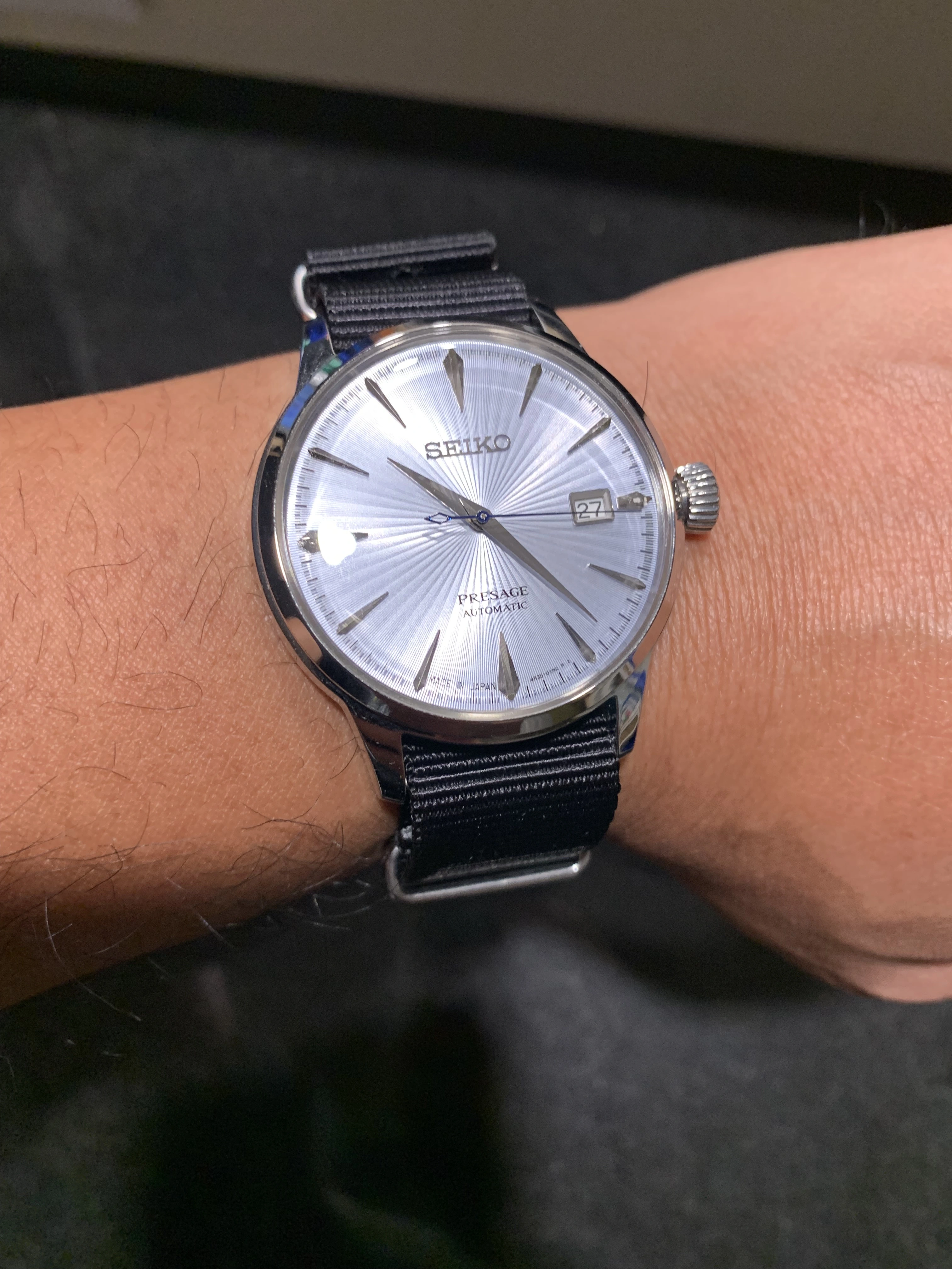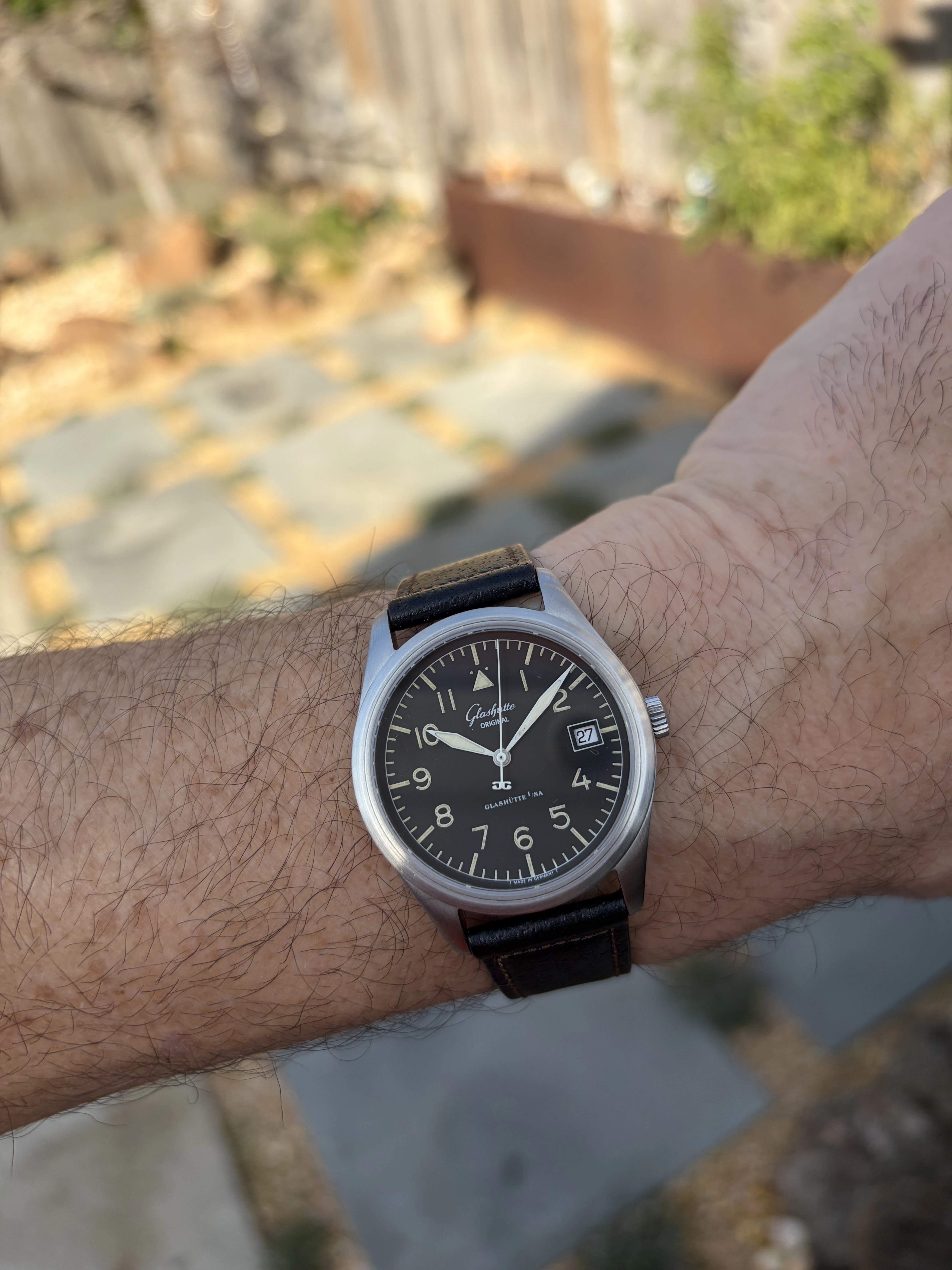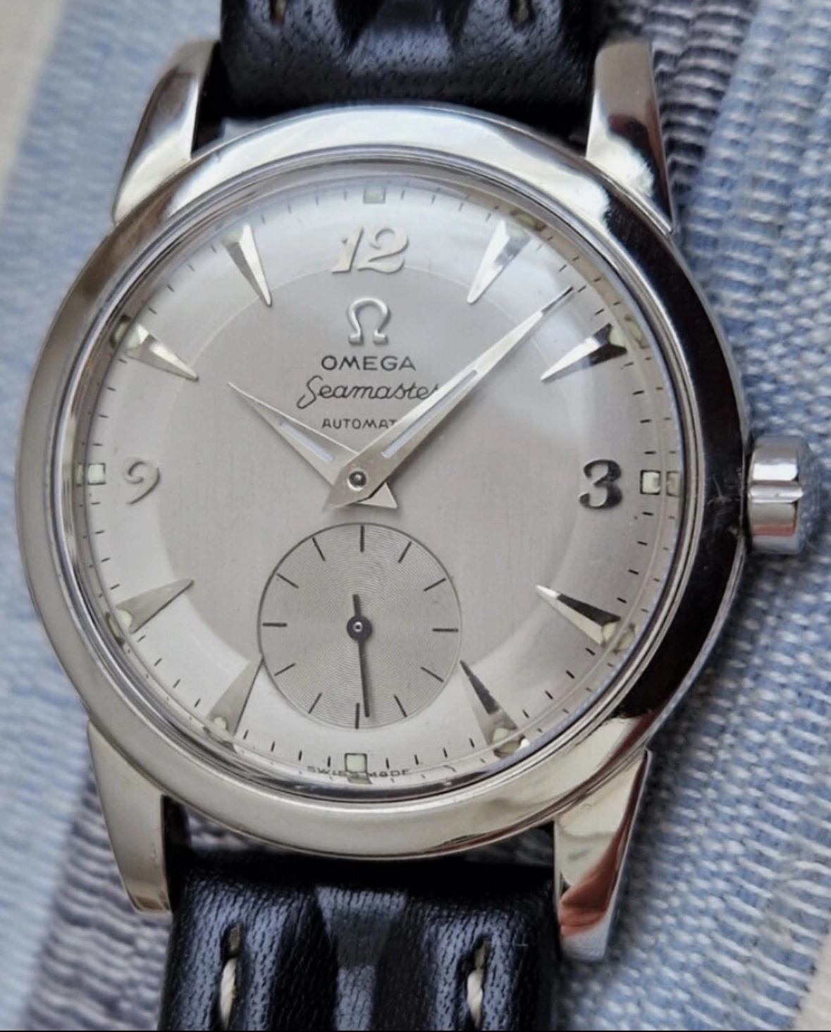 Photos don't do this Gilt dial justice! Along with the gold Breguet applied numerals and arrow hour markers this black gilt dial shows much better in person. The cal. 354 serial number dates this to ~ 1951.