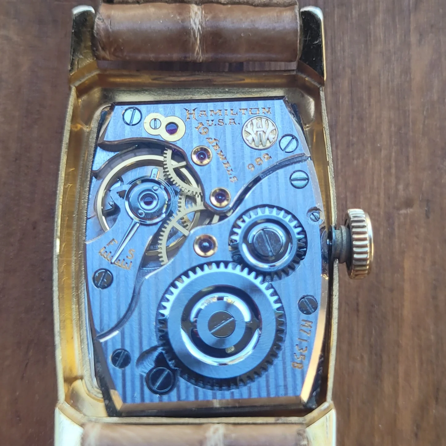 Posts 2,434 Likes 7,014 Deafboy ·50m ago·His Holiness Puer Surdus Waltesefalcon Late 40s Hamilton Donald with a delightful 982M mov't. The movement is in nice shape; look at the screw heads!
