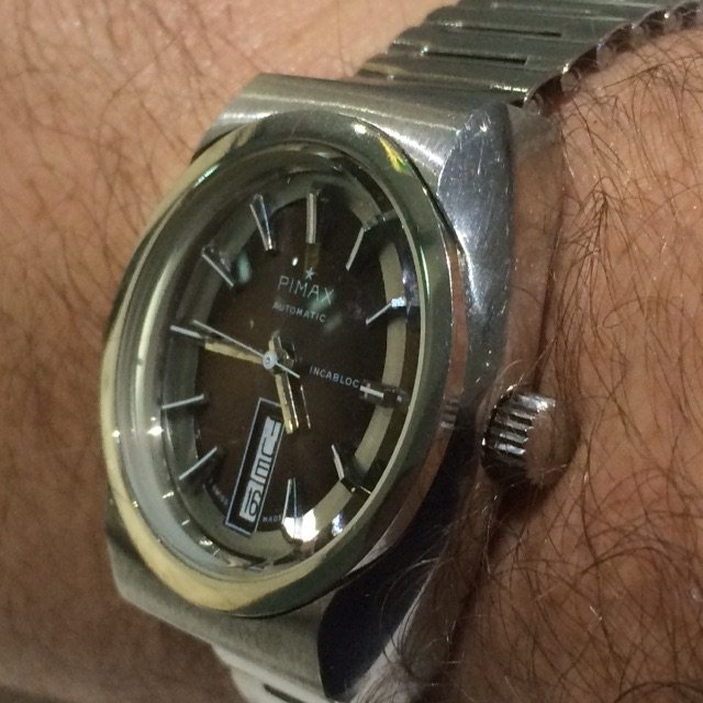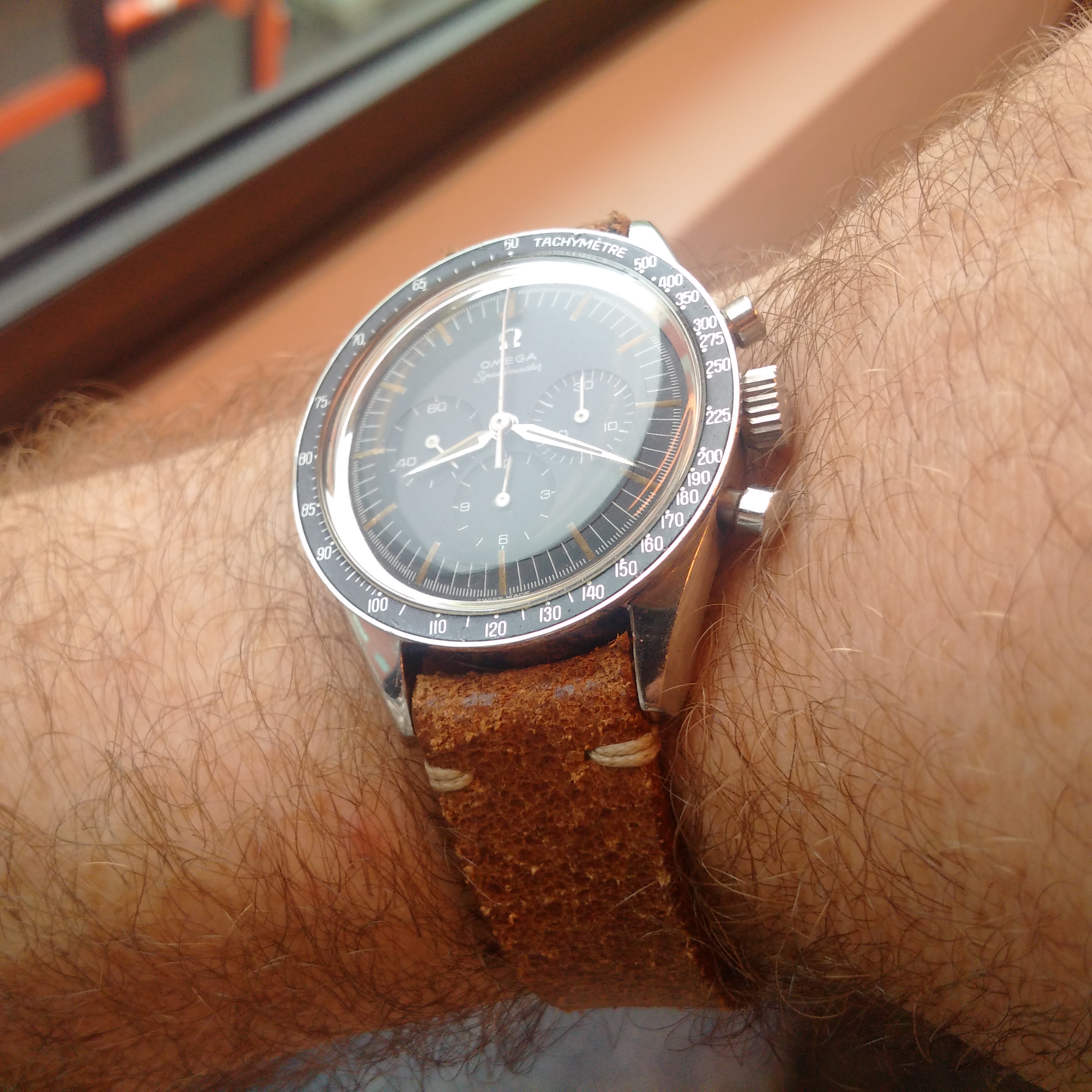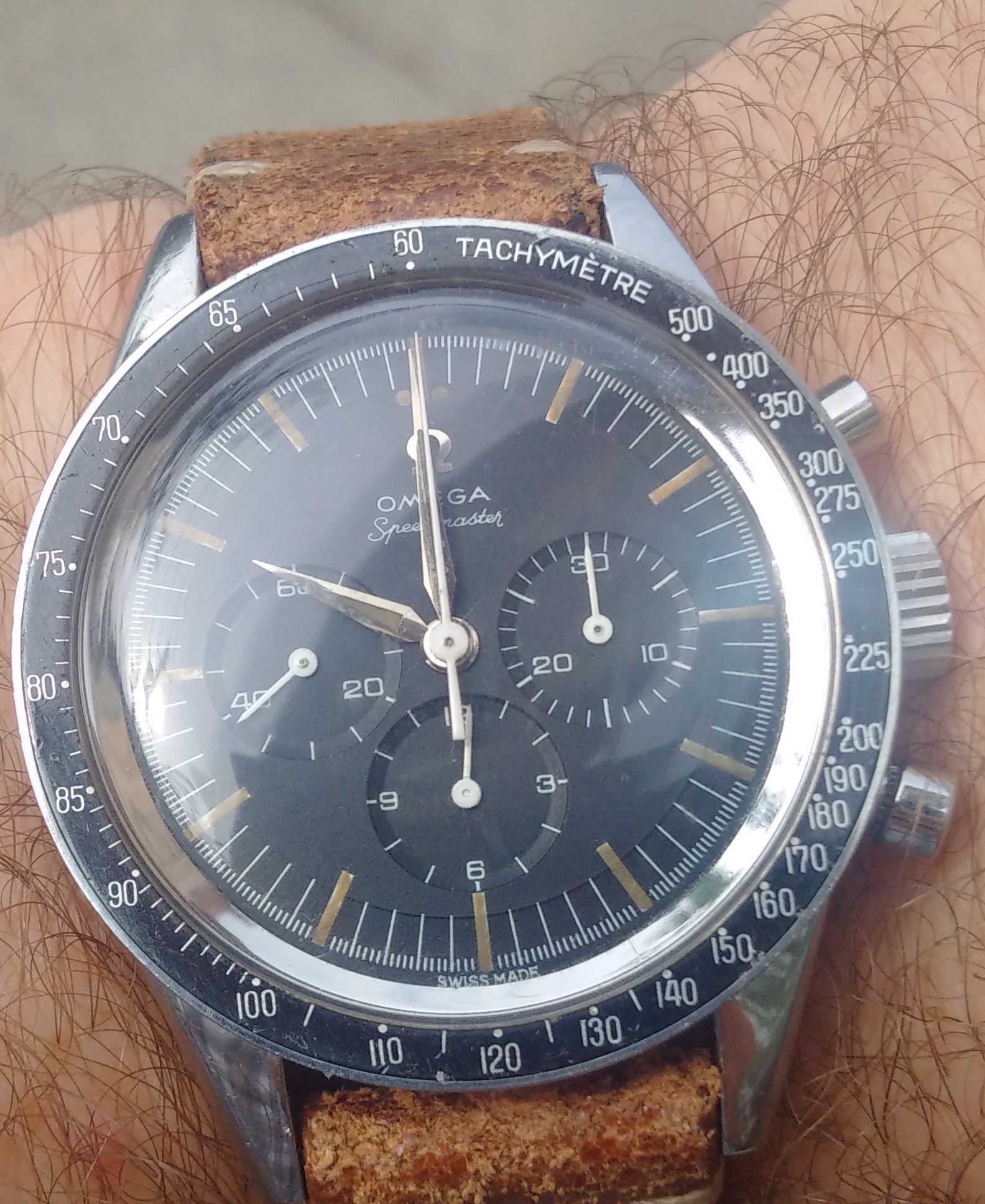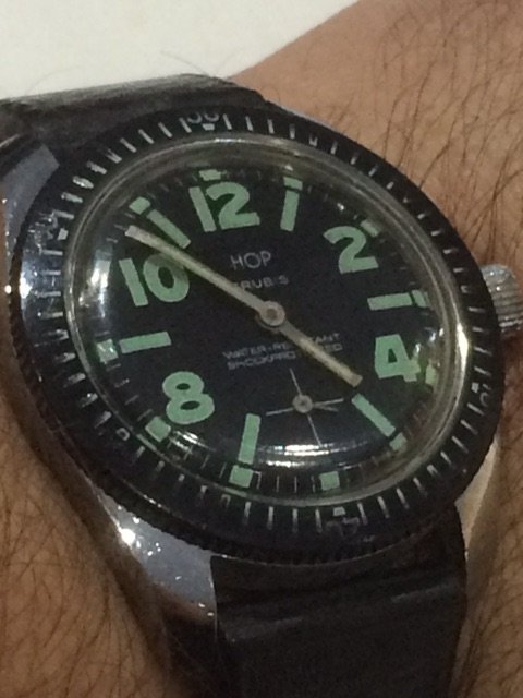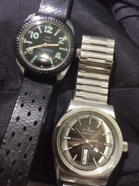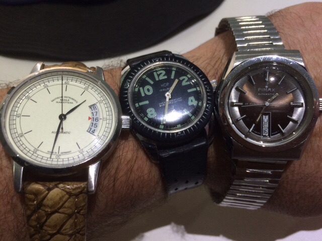 Inspired by @Darlinboy black memovox. I dug up an old pic of a watch I would have been wearing had I managed to find a swan neck regulator for it (cal 12-120). This has been sitting with my watch guy for exactly 2 years waiting for the part (he is actually skilled enough to make it too but just too busy), ref. 96 black dial sold by Walser Wald during WW II. I pray for the part to appear once a week....