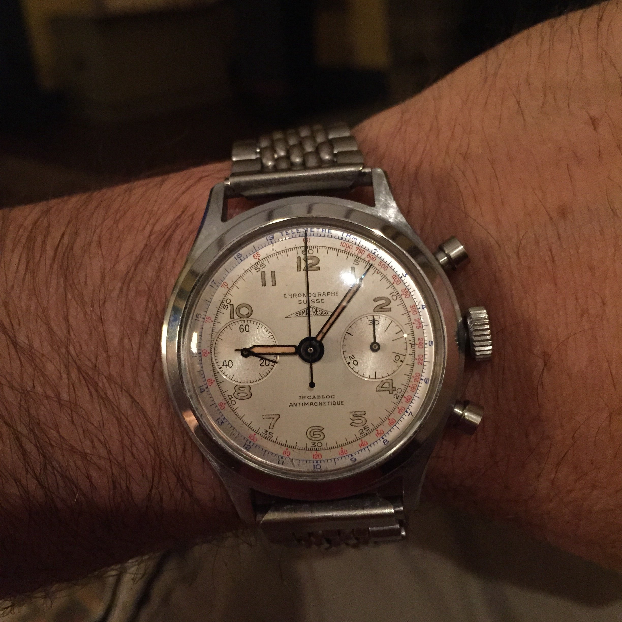 Posts 1,632 Likes 14,547 khmt2 路Jun 17, 2015 cristos71 A new arrival for me and my first Longines chrono. This one is a circa 1962 ref. 7414 cal 30 CH. Not perfect by any means but all the same very nice on the wrist 馃榾 Welcome to the club! 馃憤