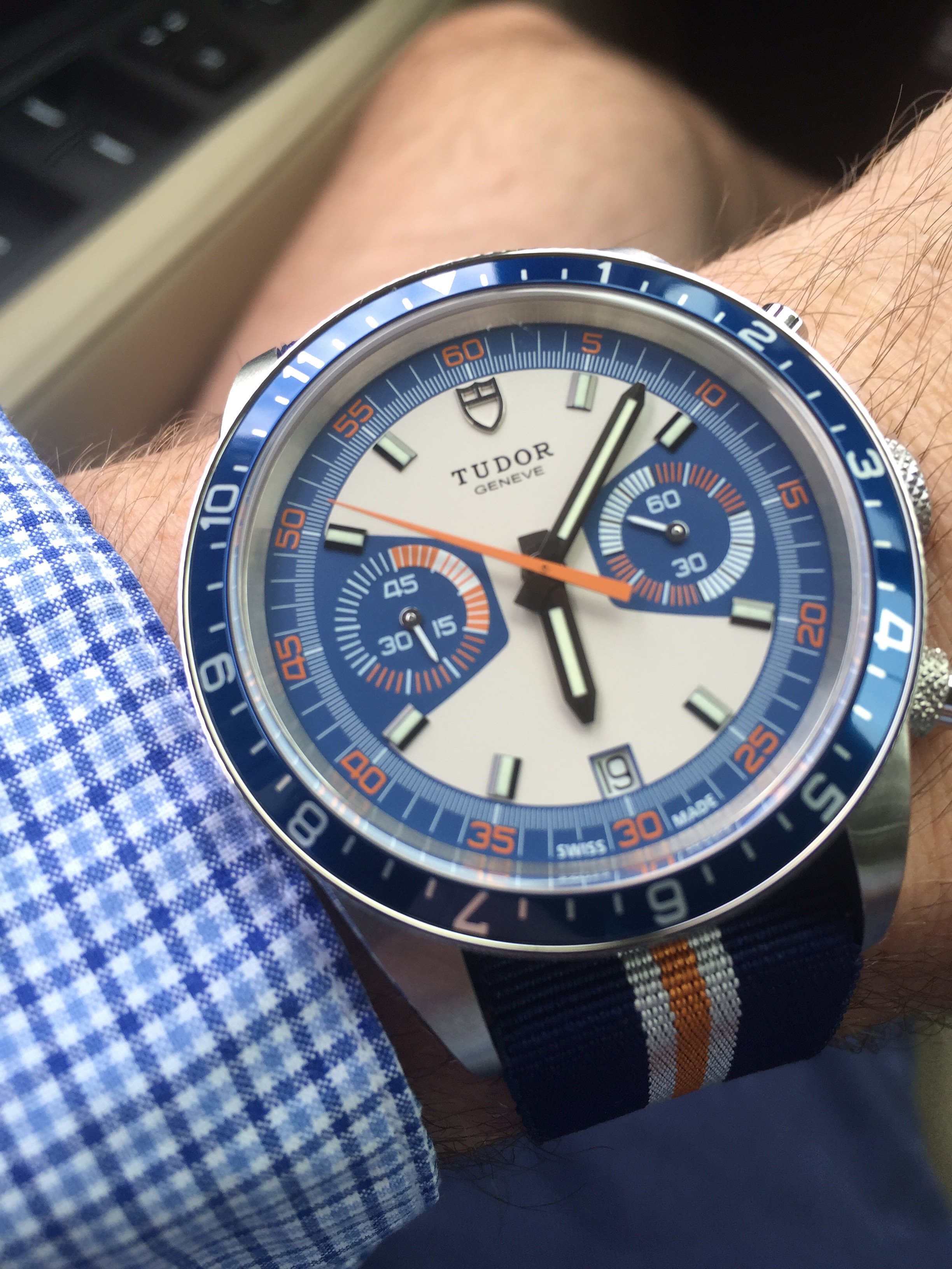 Posts 79 Likes 120 BadAndy ·Jun 19, 2015 Still no Omega. Almost won a vintage military last night on Ebay, but was beat out at the last second. So just my old trusty Breitling, but on a new kevlar strap. (First time on another new strap).