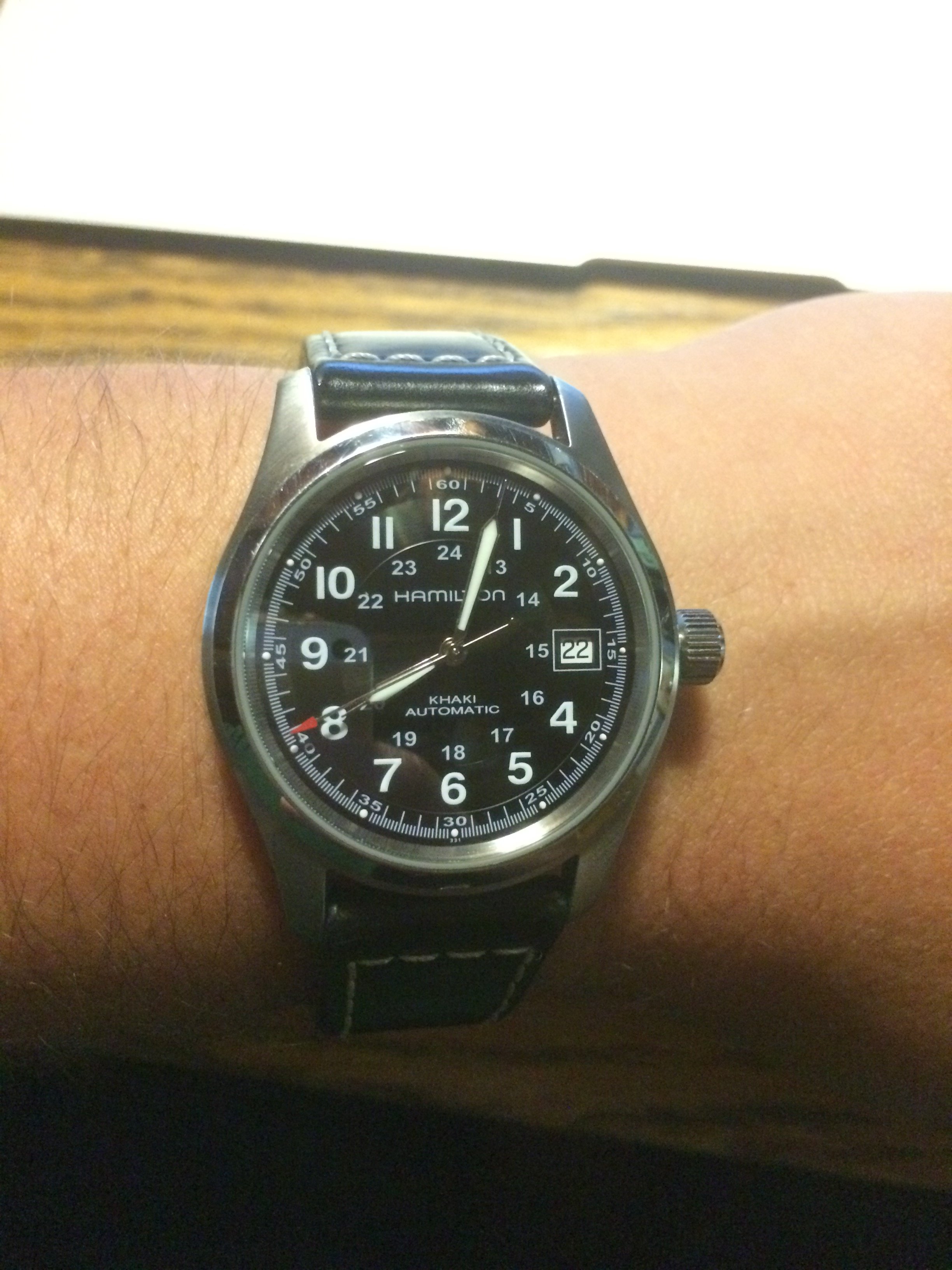 Posts 859 Likes 2,451 x3no ·Jun 22, 2015 First wrist shot of my (new) 38mm Hamilton which I traded my old 42mm for just yesterday. Couldn't be happier!