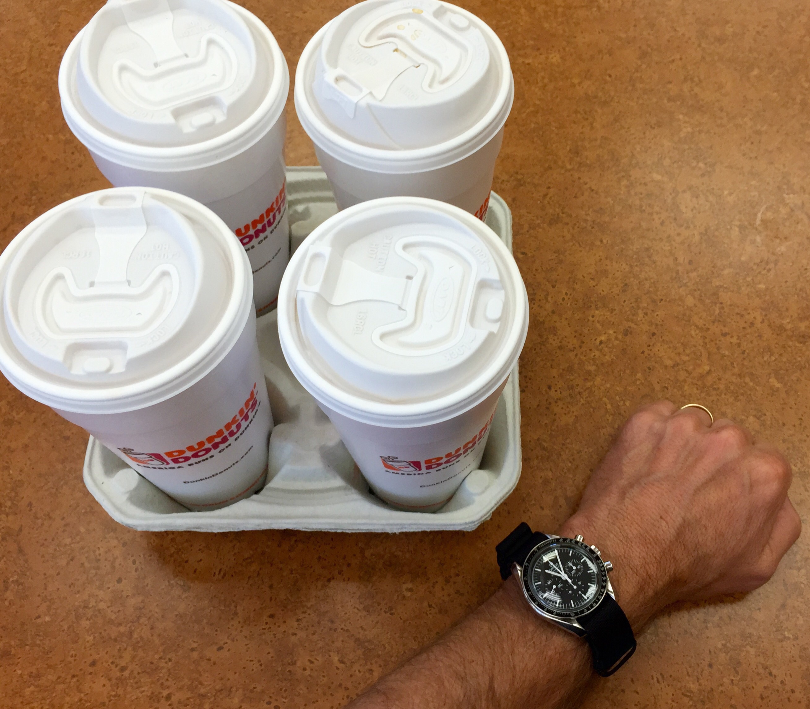 Currently at Dunkin' Donuts wearing Speedy Gonzales on the Omega black coated NATO band. It's 'Mandatory Metallica Monday'...getting ready to spin old school Metallica (The Black Album on CD) all FREAKING DAY...due to it being 'Mandatory Metallica Monday' and all.