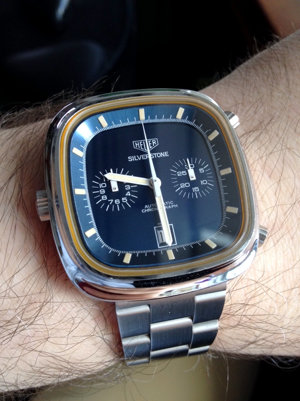 Haven't decided which one of these I should wear for my group bike ride. I'm thinking green and purple for some contrast against my black and yellow kit. Besides, the shark teeth in the dial of theBernhardt diver might come in handy [emoji16]: