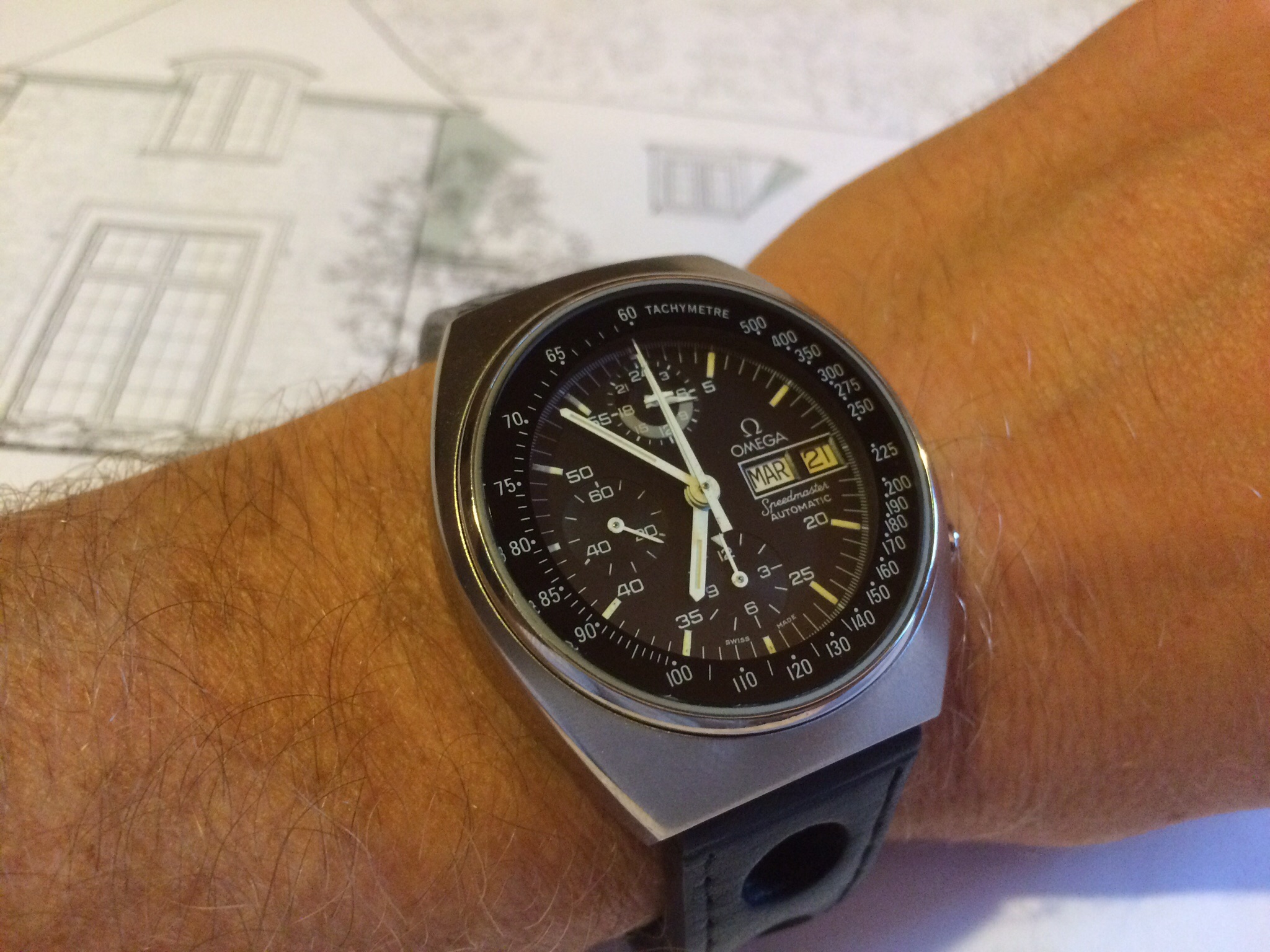 Posts 31 Likes 295 psholtz ·Jul 21, 2015 3570.50 Omega Speedmaster on a Dark Brown Hadley Roma 2035 leather strap.