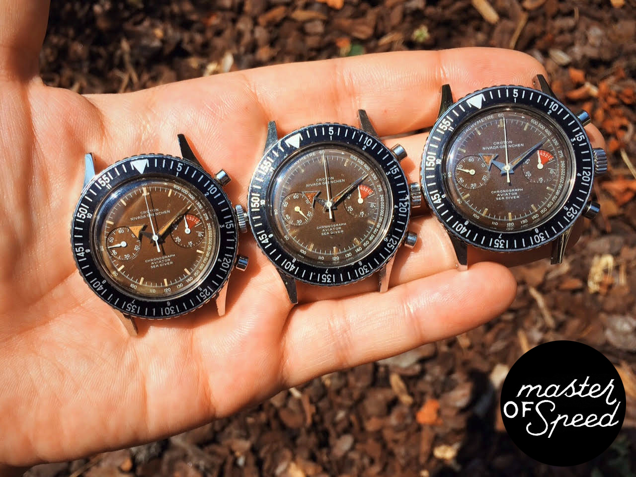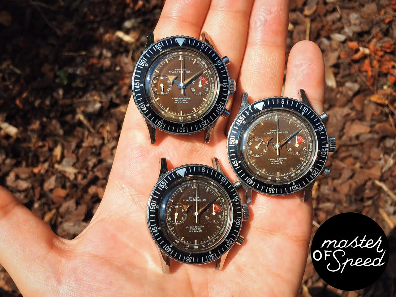 Posts 402 Likes 2,221 The Master of Speed ·Jul 21, 2015 Croton Nivada Grenchen Chronograph (pre-series of Chronomaster) Aviator Sea Diver with Venus 210 all from 1961 I wrist the first !