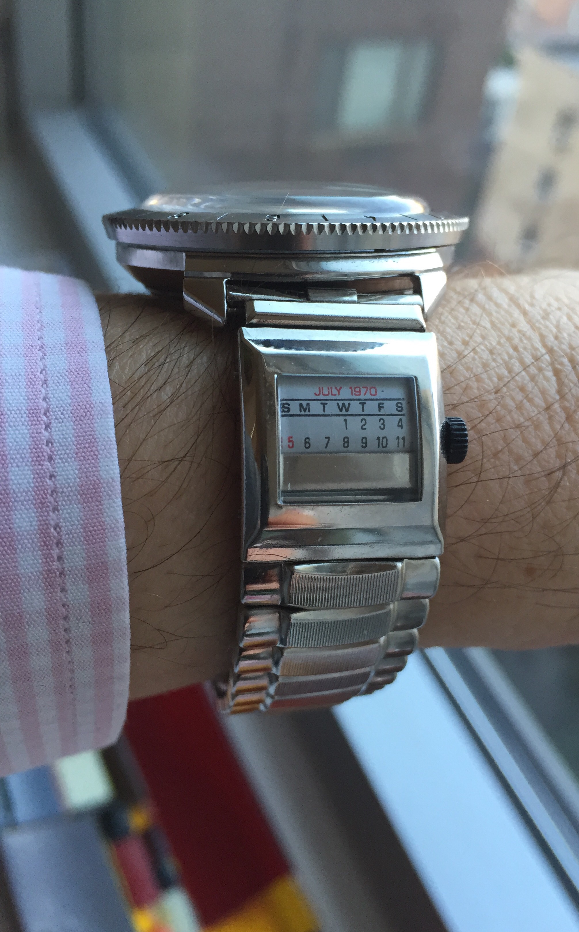 Posts 2,070 Likes 14,602 Traveler 路Jul 23, 2015 Still loving this one... "It's not a time piece, it's a conversation piece..." Electric hum, GMT hand... And 1970s style 'perpetual calendar' 馃檮
