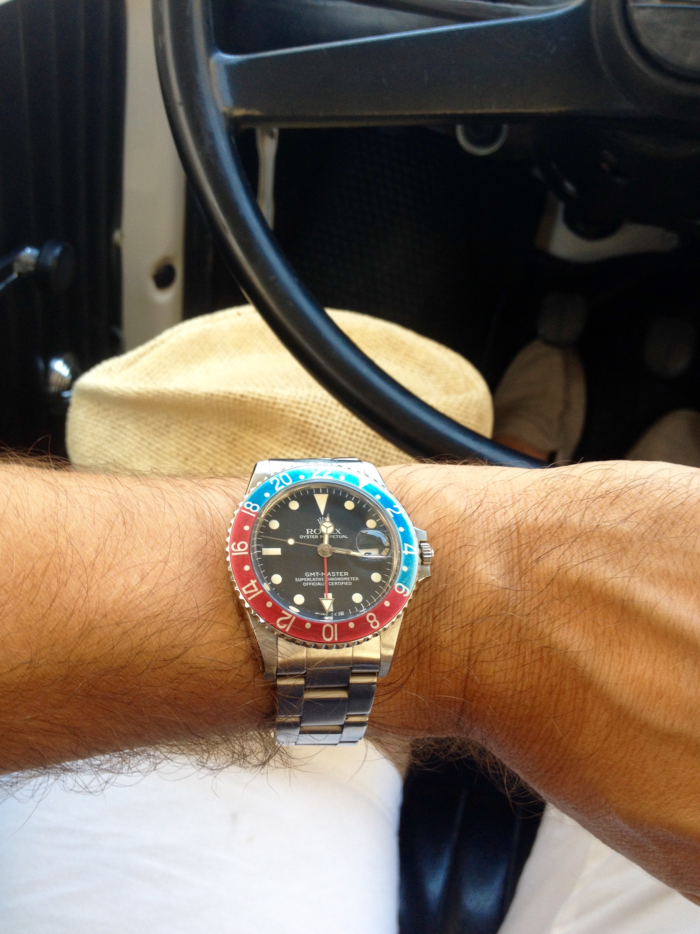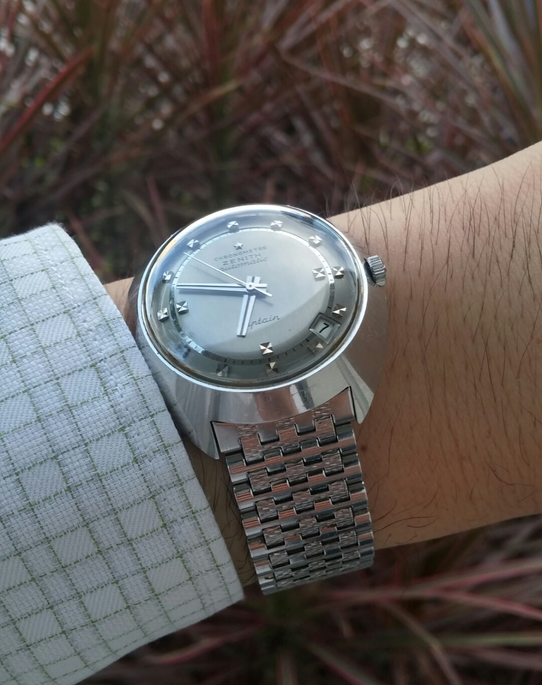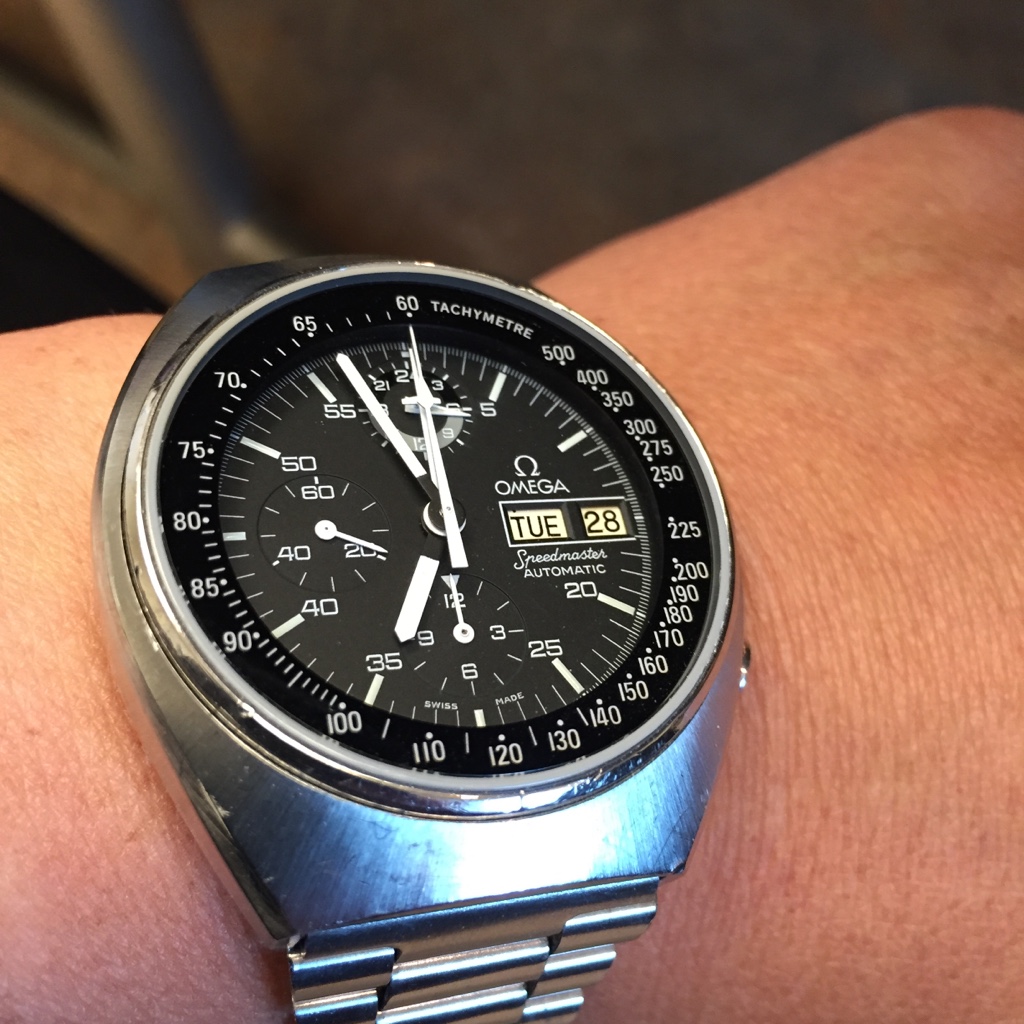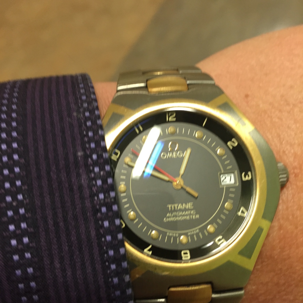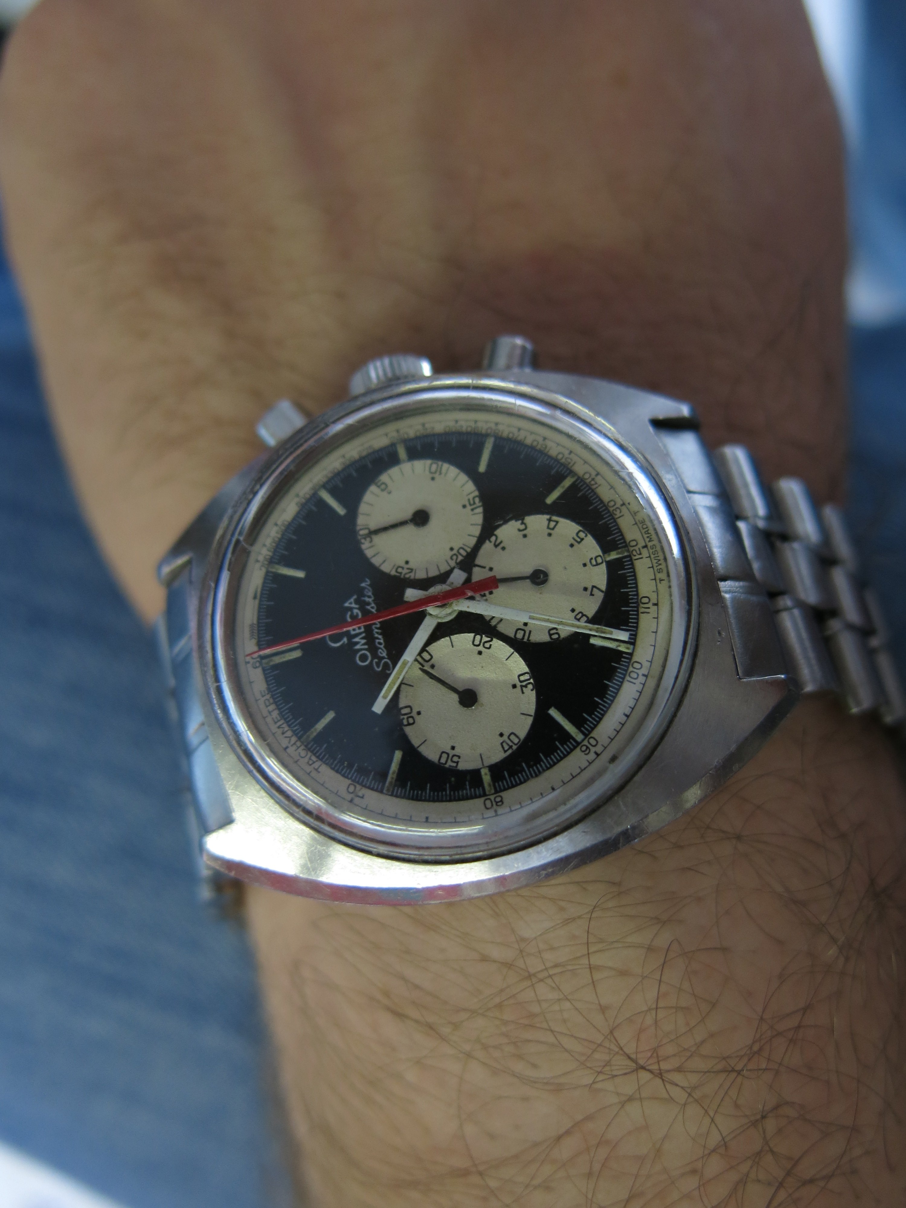 This watch initially left the factory with bright orange colored main hands and minute register half circle. However, my starting point was this over-polished wreck, fairly faded under South America's sun: