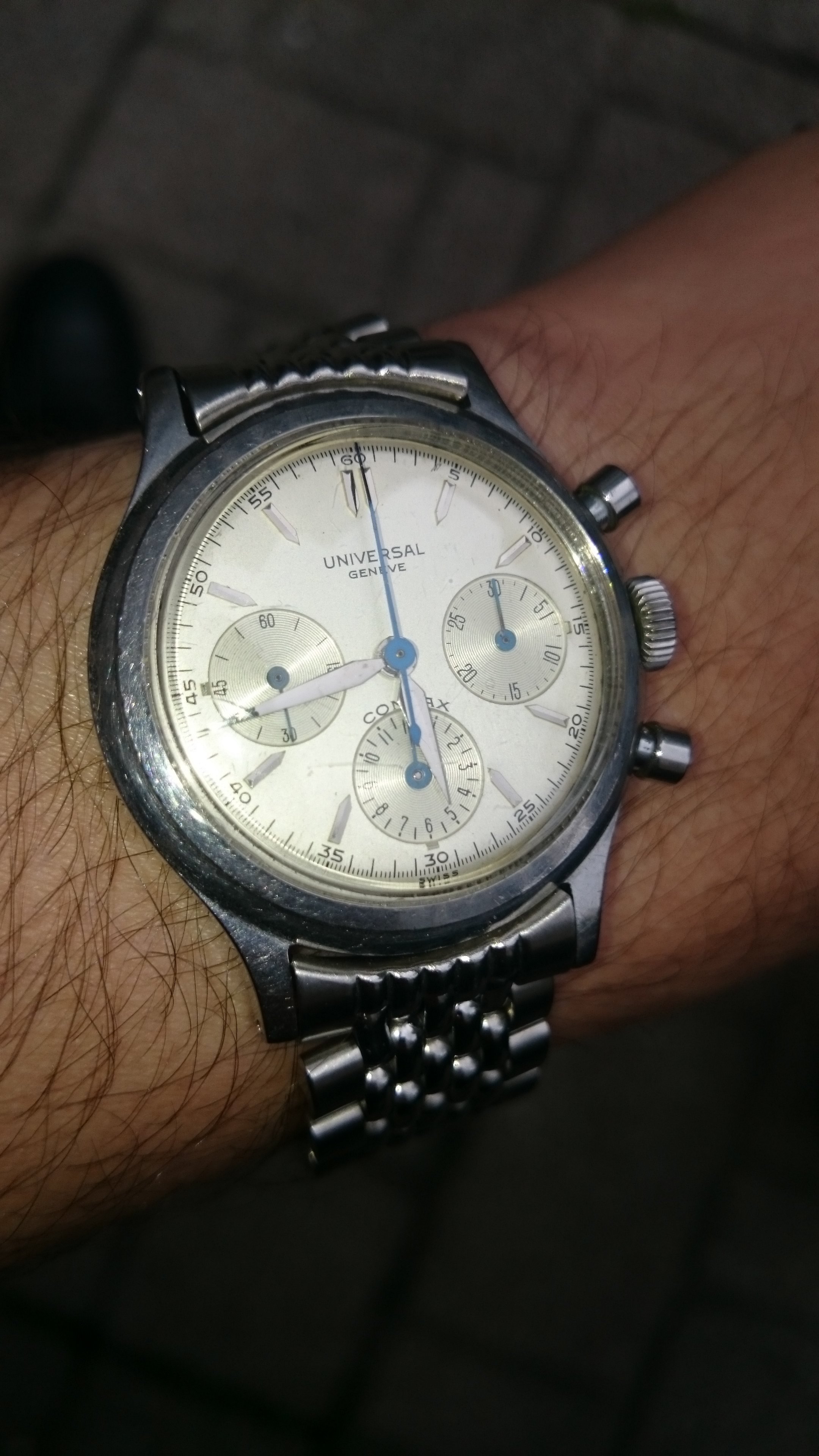 New arrival: Cal 143-6, early 1950's, a pilot's chronograph associated (at least loosely) with the Yugoslavian military... so now, with the Cairelli, I've got Adriatic air space covered.