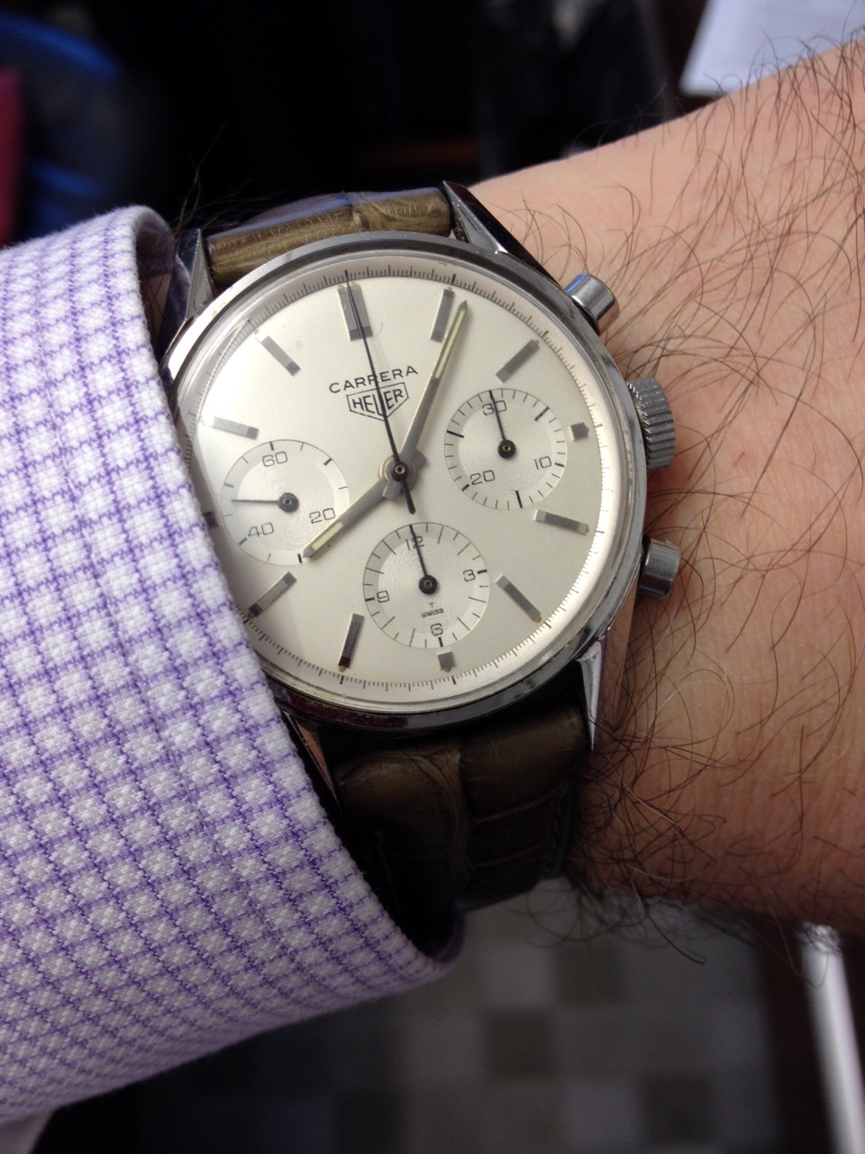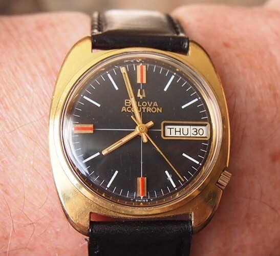 Hadn't worn this one for a while. i sold this watch to its original owner back in 1969. 46 years ago! I was in retail jewellery at the time. Back in the day, Bulova tied this model into the space program, associating the name Apollo with a series of 218 Accutrons that featured this dial. The original owner and his wife continued to be customers of mine for my entire career in retail. By about 2005 or so, he was no longer able to read the time on his Accutron, so he