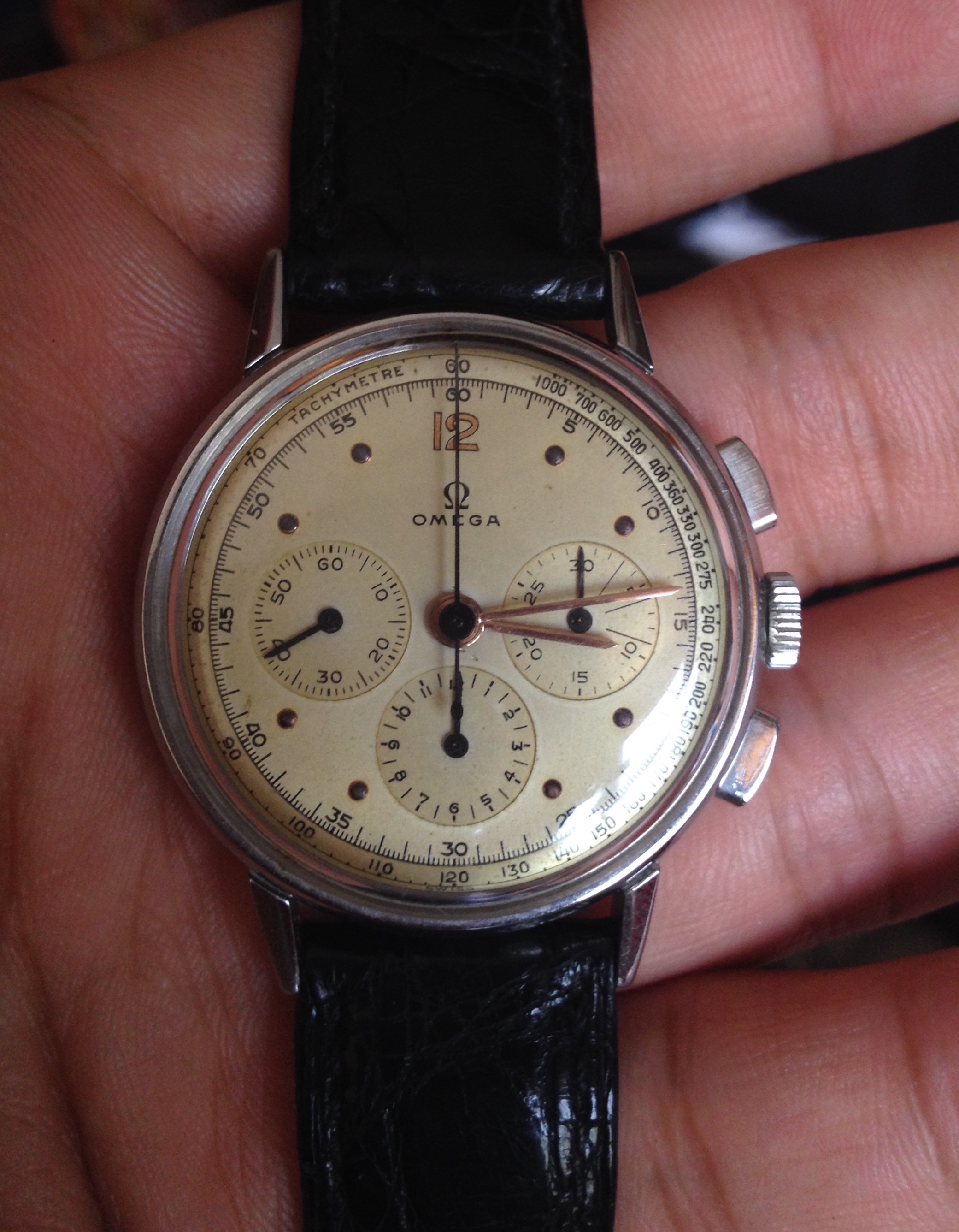 Posts 7,293 Likes 76,574 dougiedude ·Aug 1, 2015·Carpe horologium! Had to dig this one out from under a cushion and grace it with this strap that just arrived from Keleran: '61 cal 350 Edited: Aug 1, 2015