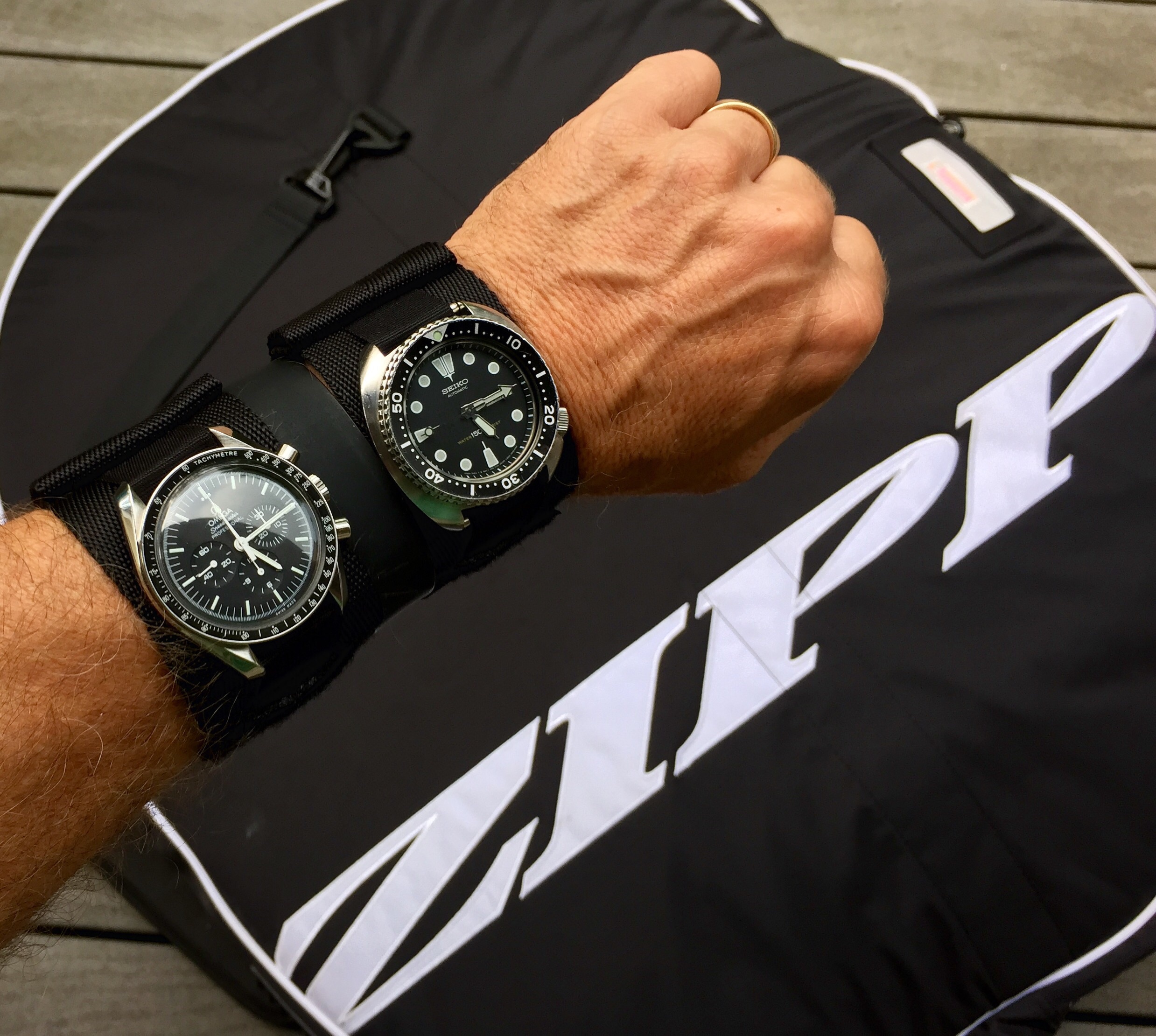 Double duty today...Speedy Gonzales and Psycho Pseiko on nylon Rothco Commando bands...separated by rubber Road ID band to prevent "watch bang".