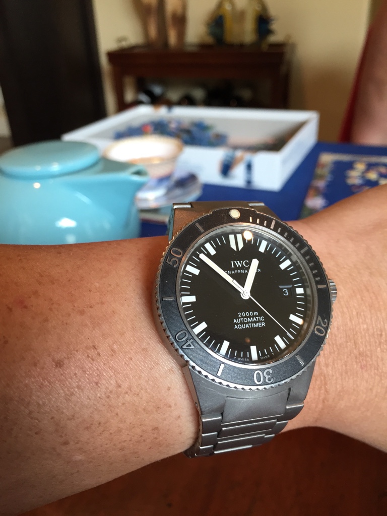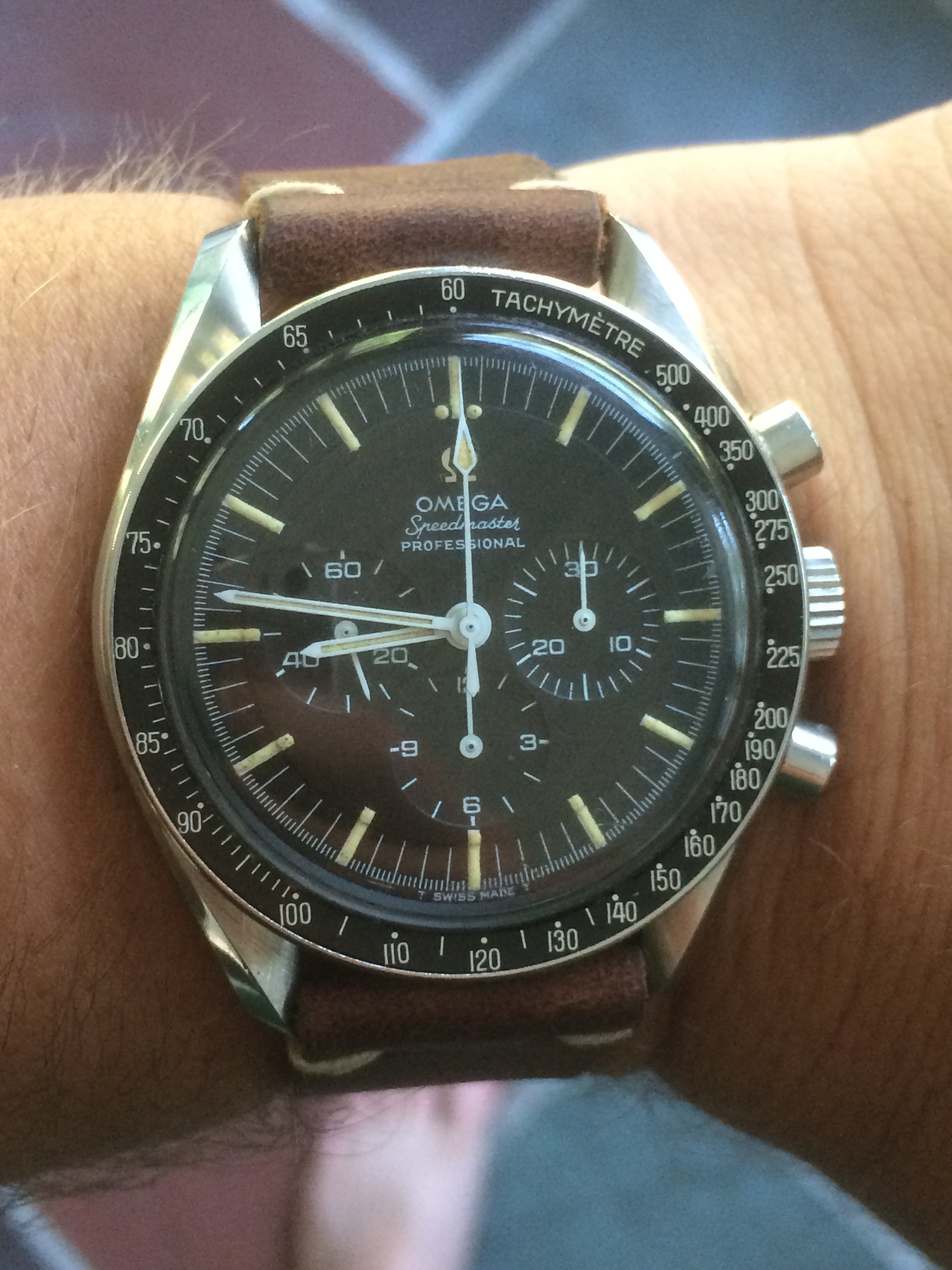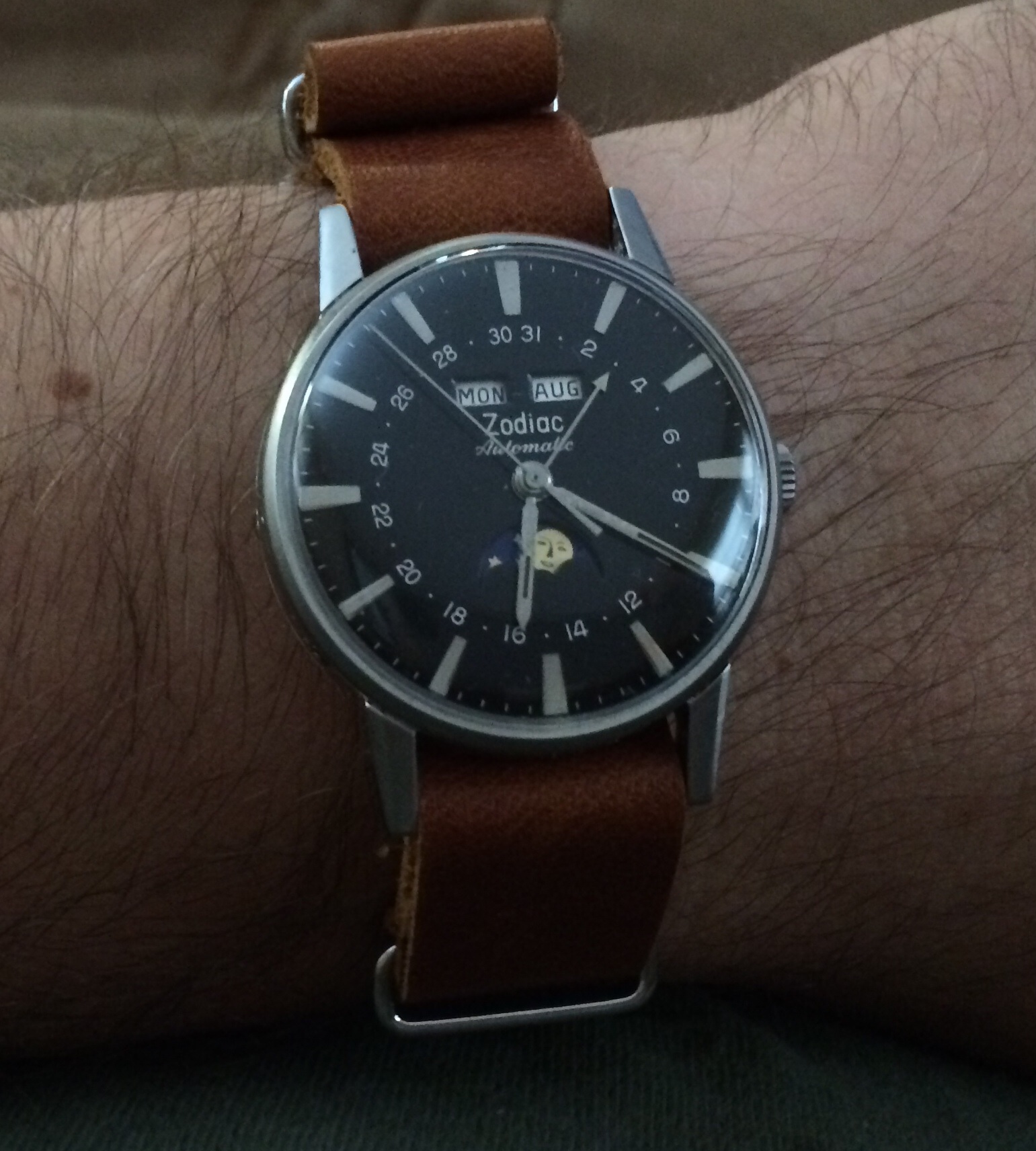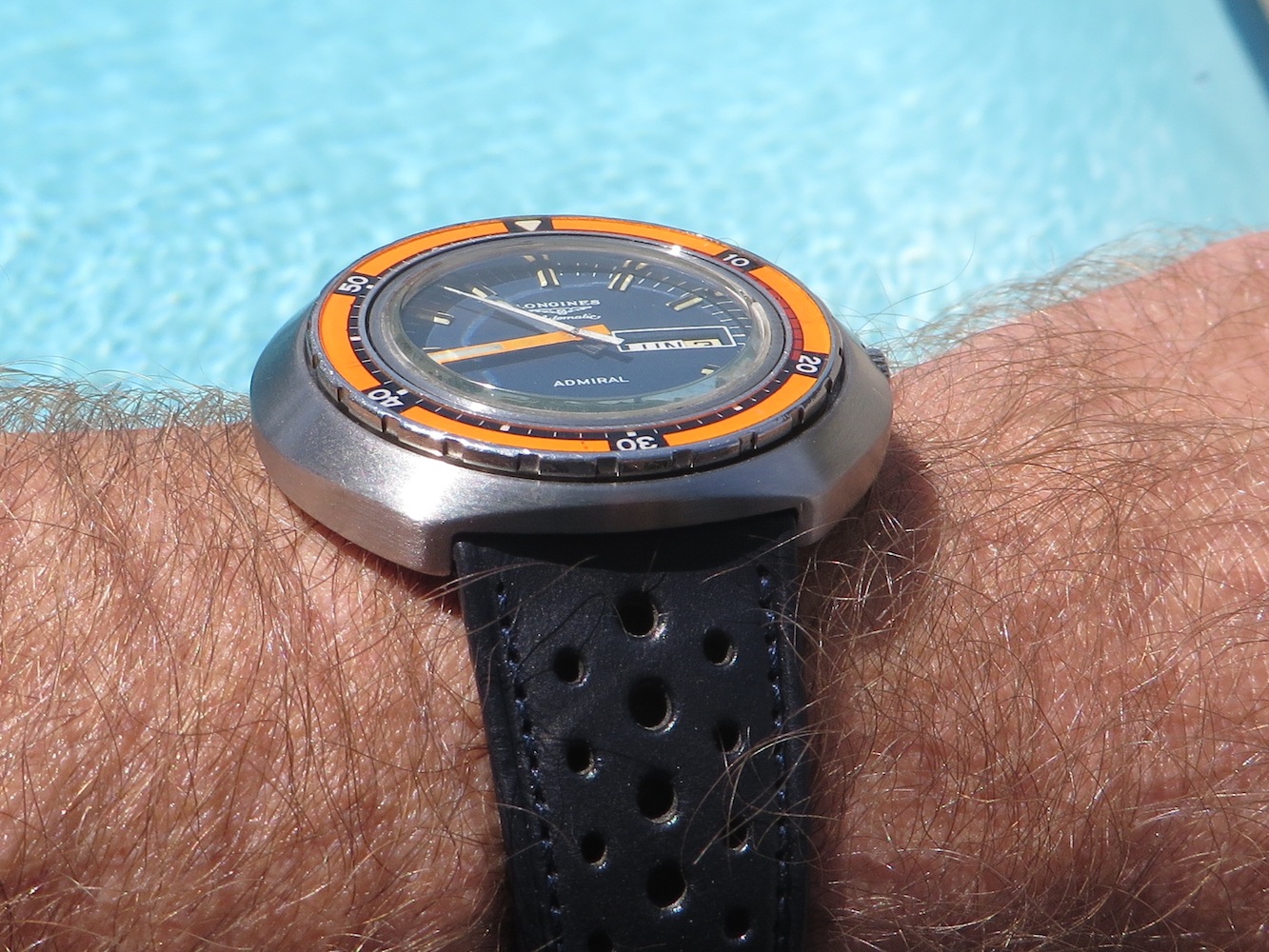 Don't wear this one often enough. Both pics taken within seconds of each other, in same place. No mod to camera settings. Very cool dial that looks so different depending on how the light hits it.