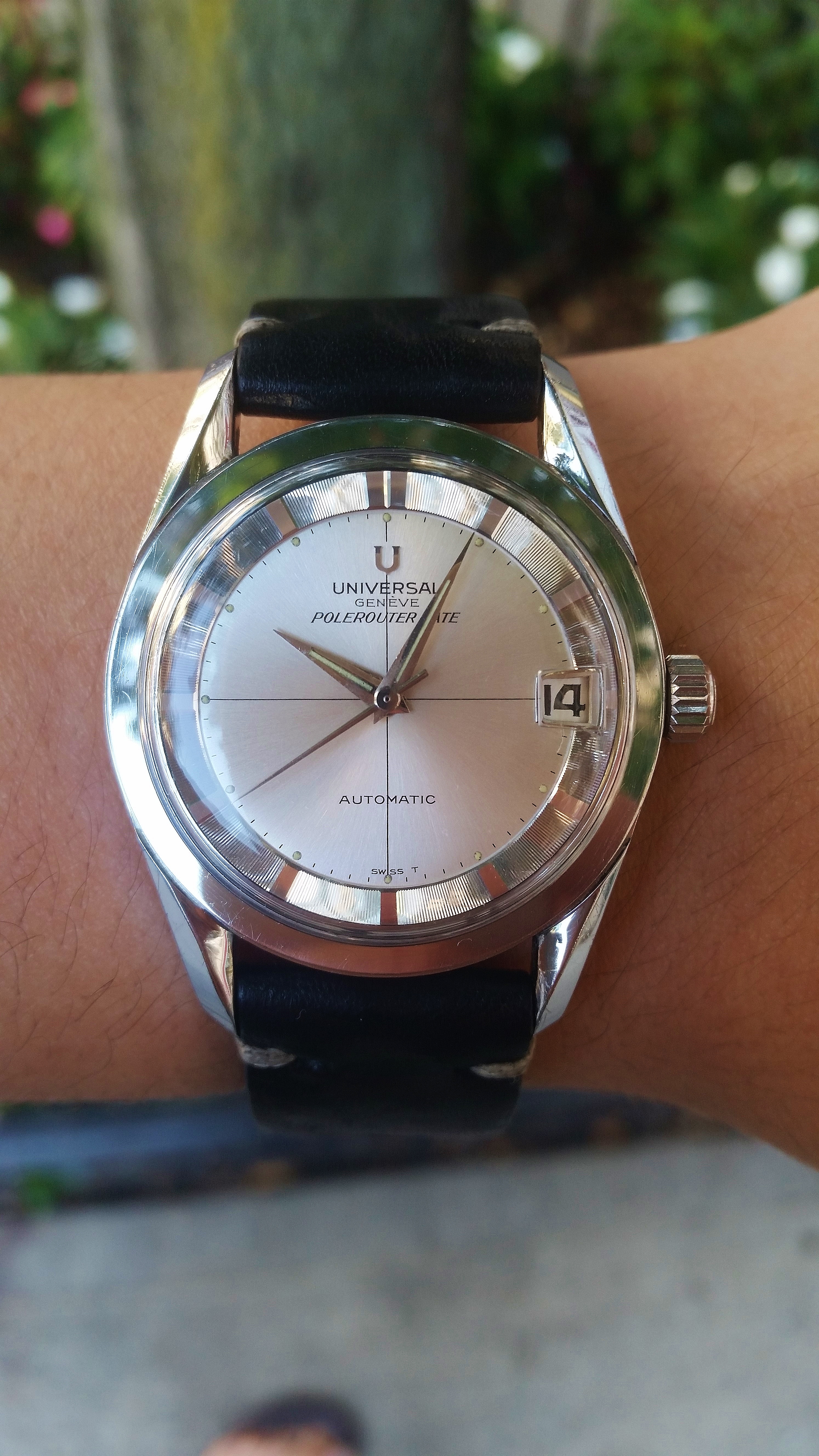 Finally, after a five month process, my calendar at 6:00 Seamaster! This began when I was rummaging through a can of Omega bumper automatic parts watches, looking for a part for a member of the repair fraternity. I found the centre wheel he wanted. I discovered the waffle dial that you see, plus the rest of the movement partially dismantled, but no case! I gathered all the bits and put it back together. That's when the process started. OF member Tritium became aware of my search for a case, and wonder of wonders, he had an extra NOS steel case which he made available to me! On closer examination, I realized why the watch had been "retired" about 40 years ago! RUST! After a lengthy process of glass brushing, polishing parts, replacing a few parts from my "stash", soaking the pillar plate in alum to dissolve a broken screw, cleaning, and fitting into the case. The result! I have a couple things yet that I need to do. One is to replace a peculiar "stair-step"like case clamp, and then put a better strap