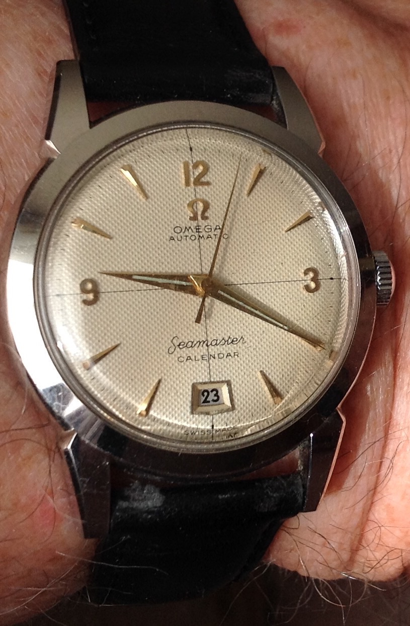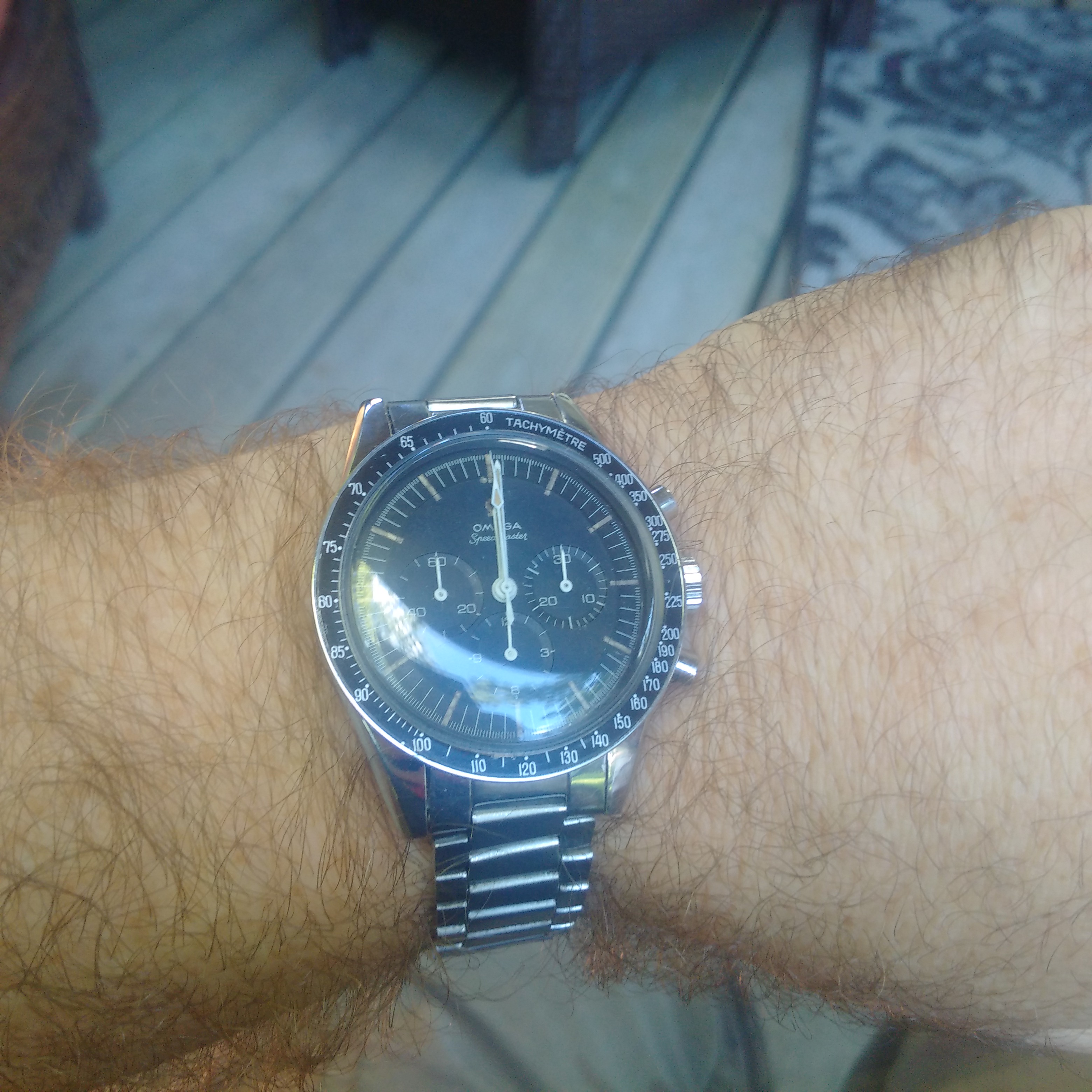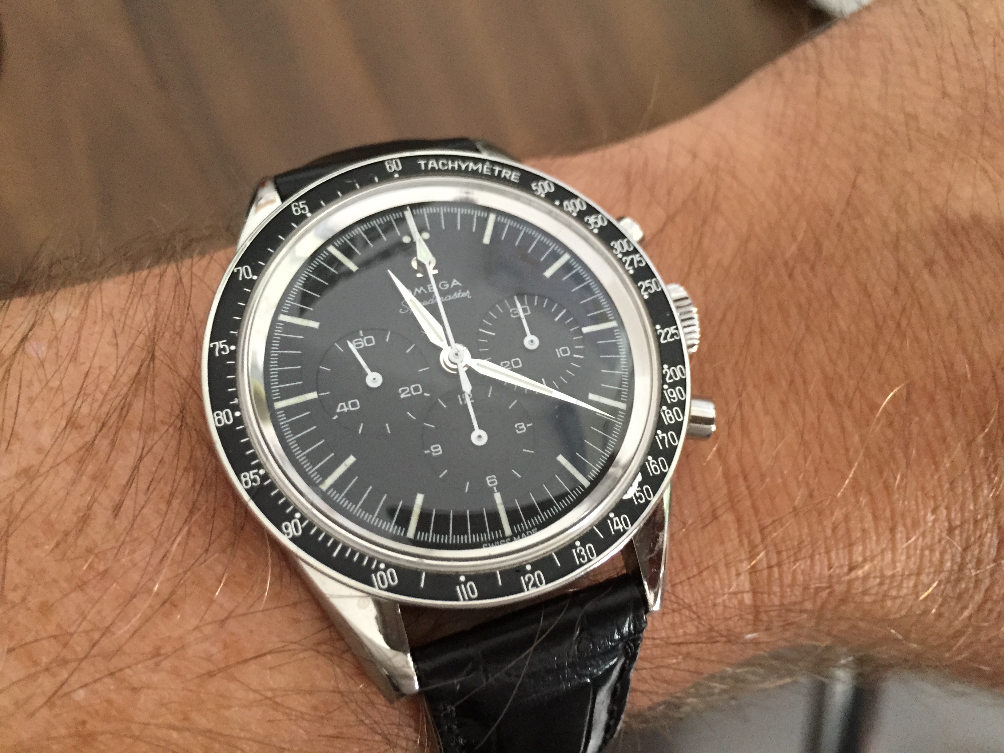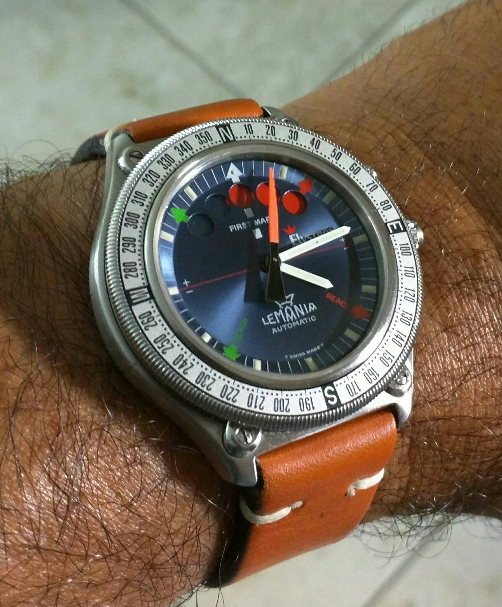 Not sure which strap or bracelet to use, but I am liking this one. It's on an Omega bracelet for now, but I think leather may be better.