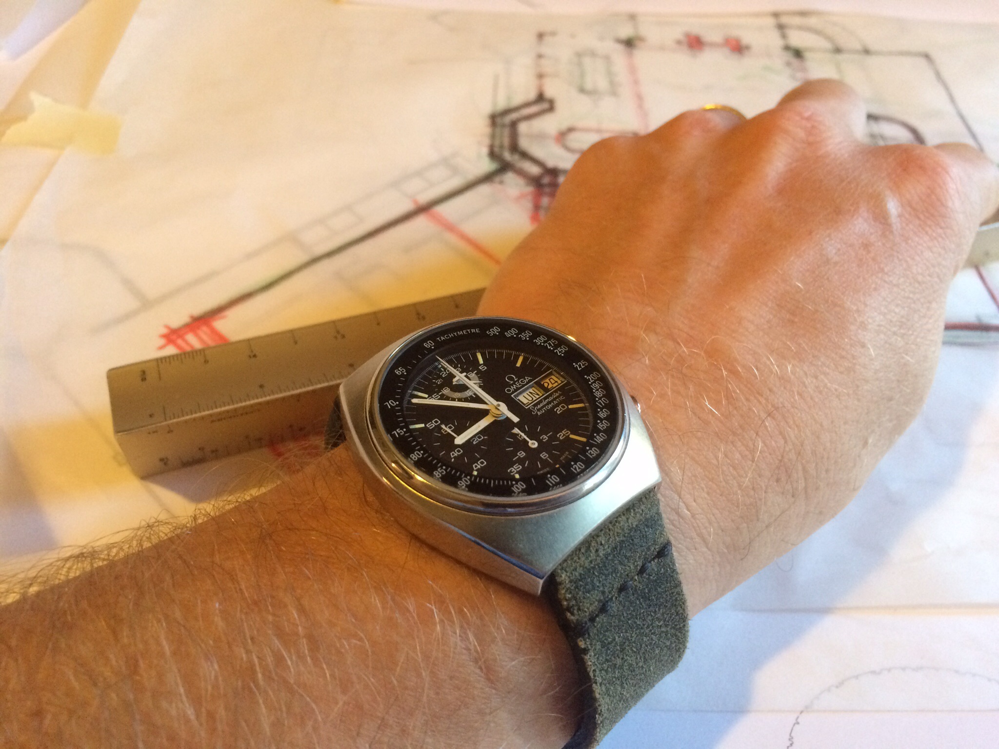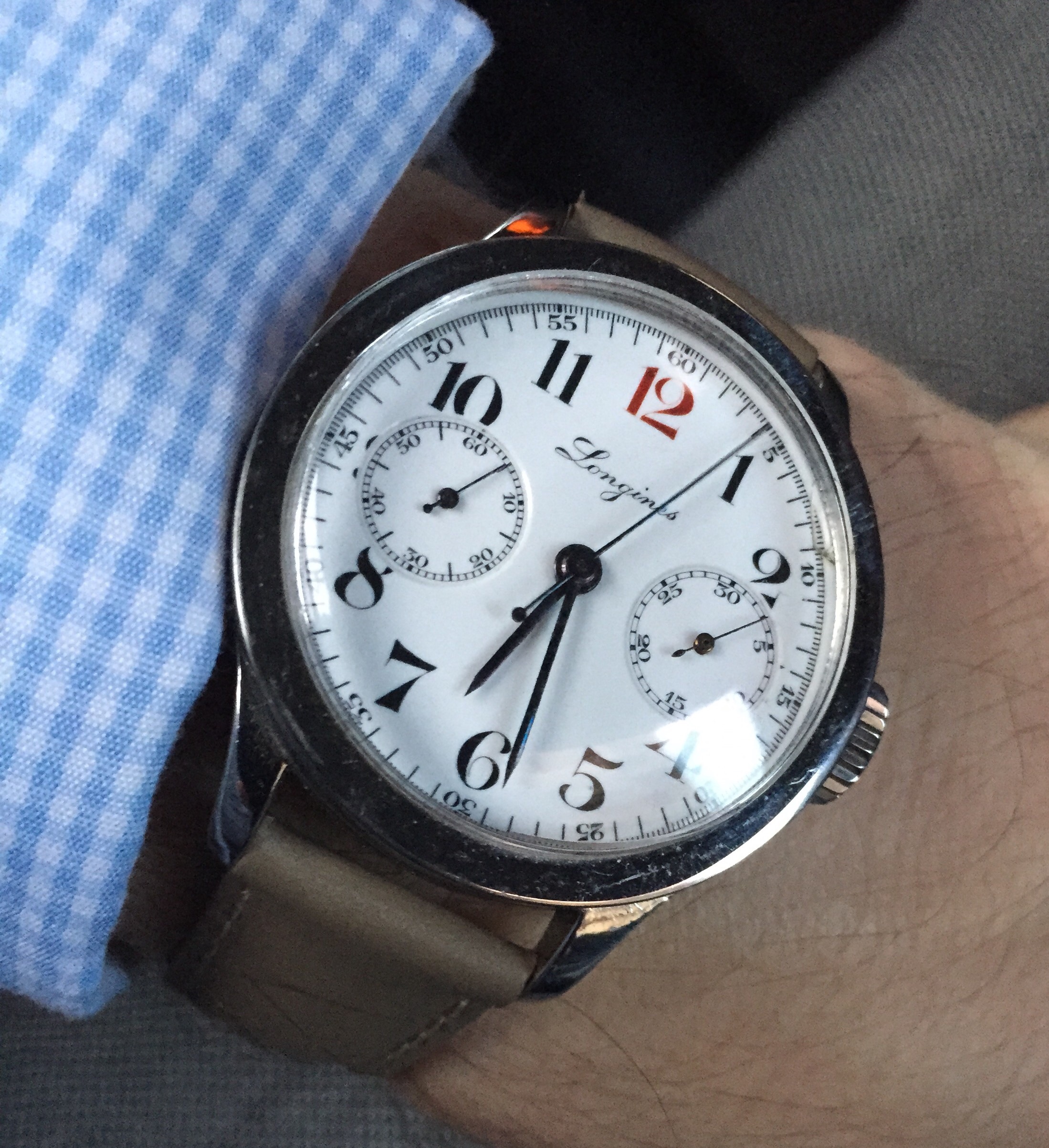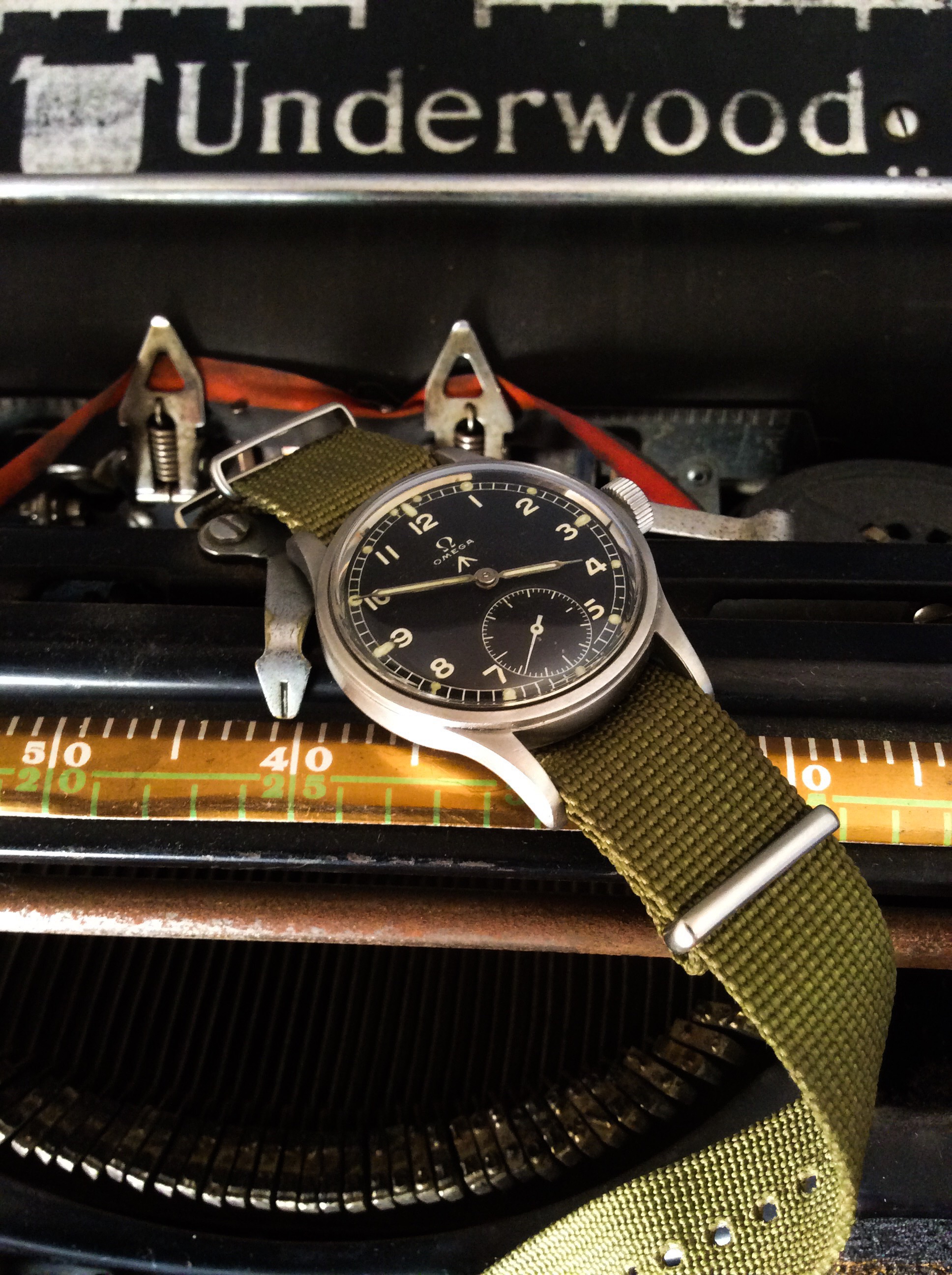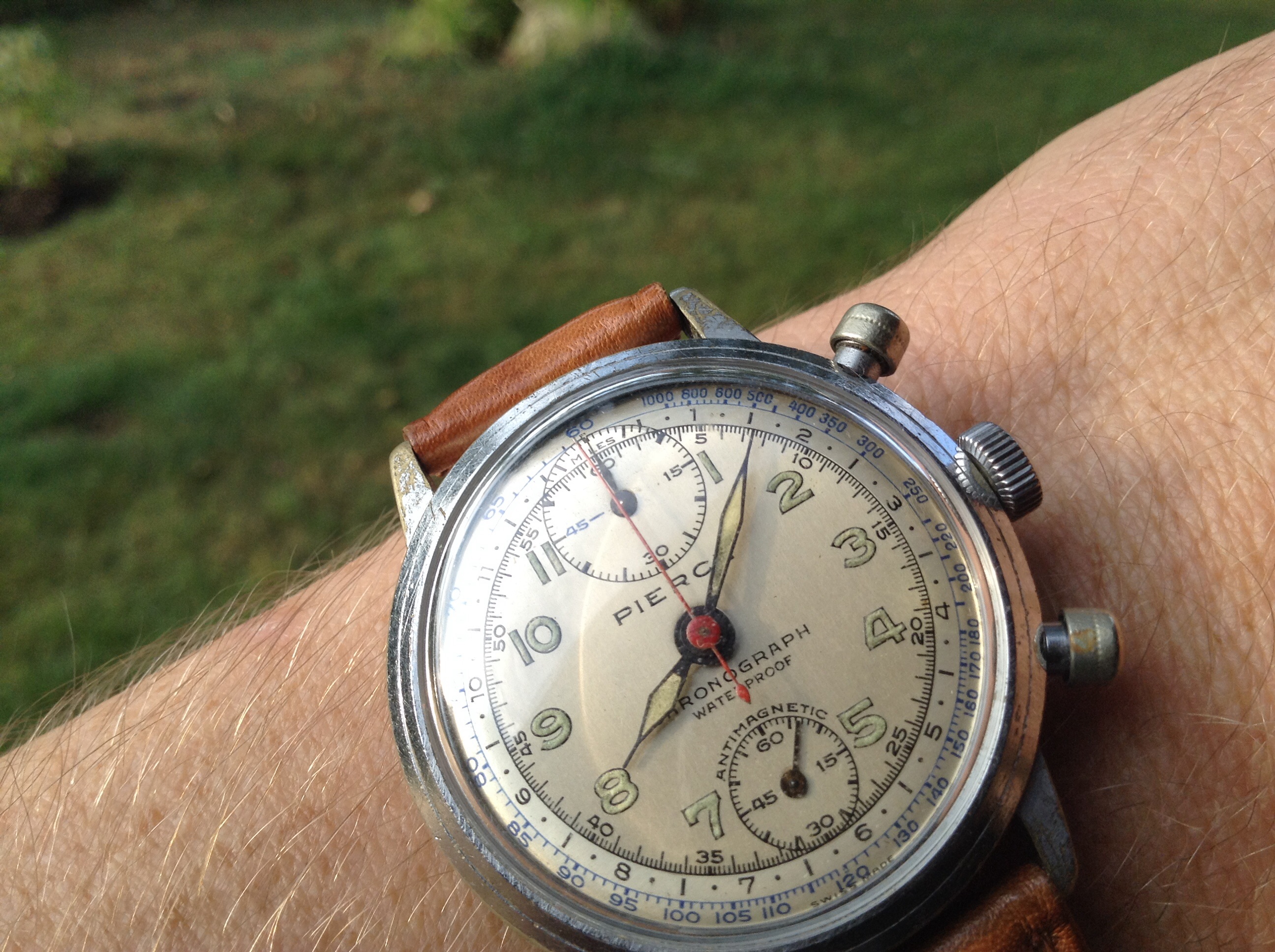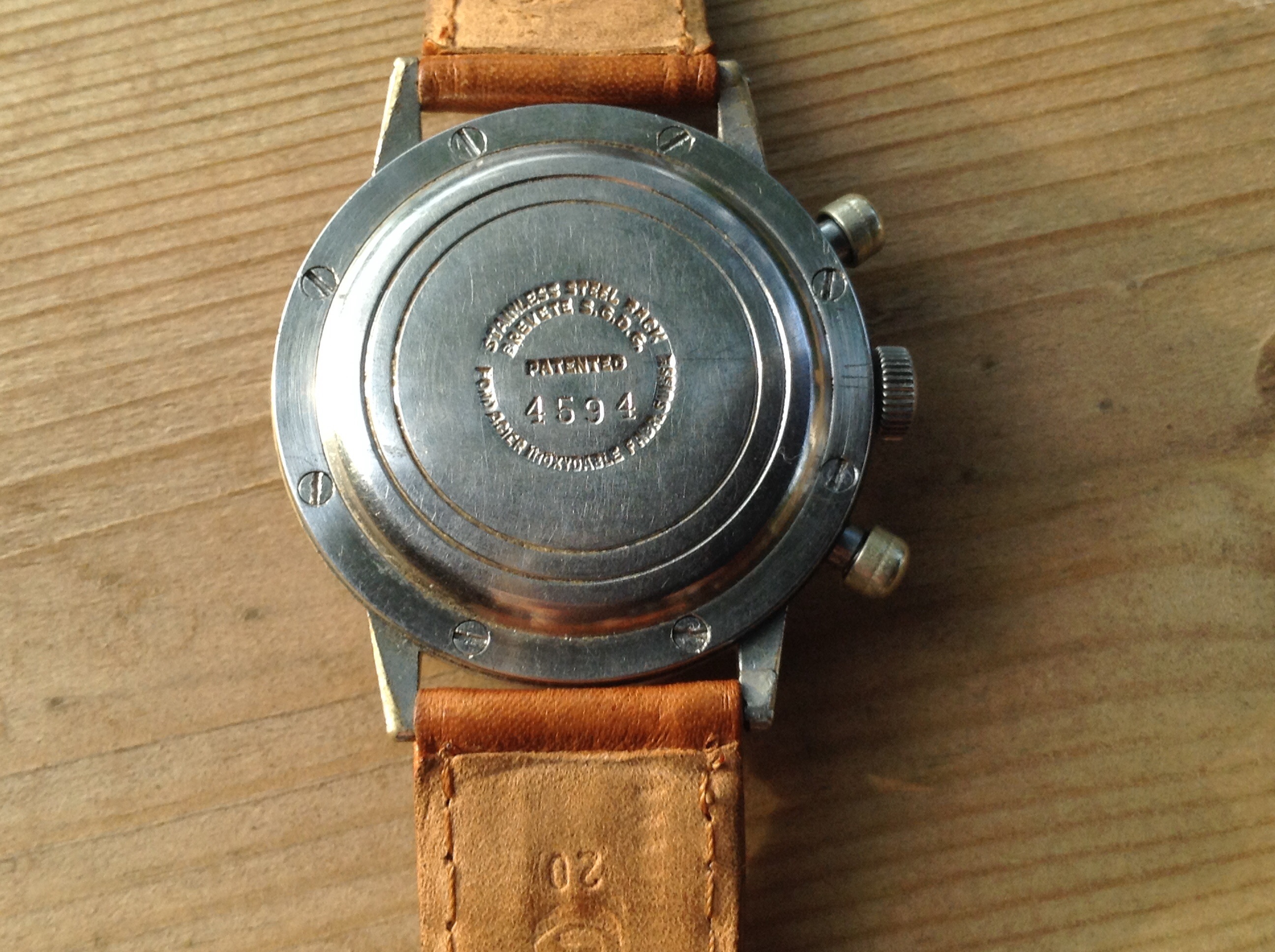 First day back at work.... Probably going to be clock watching so may as well watch something cool ... 13ZN mono pusher, 1938, enamel dial... One of the best bits is the jump hand on the minute recorder...