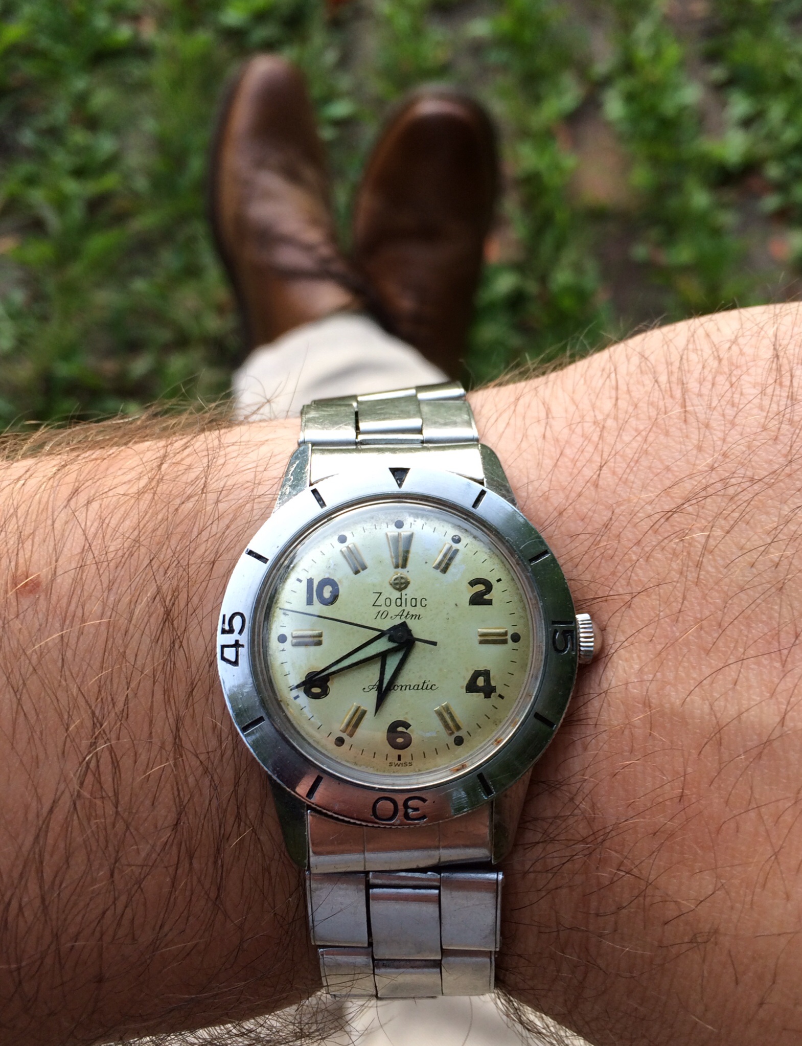 Zodiac 10 ATM. The predecessor to the Sea Wolf on a 1965 stretch bracelet.