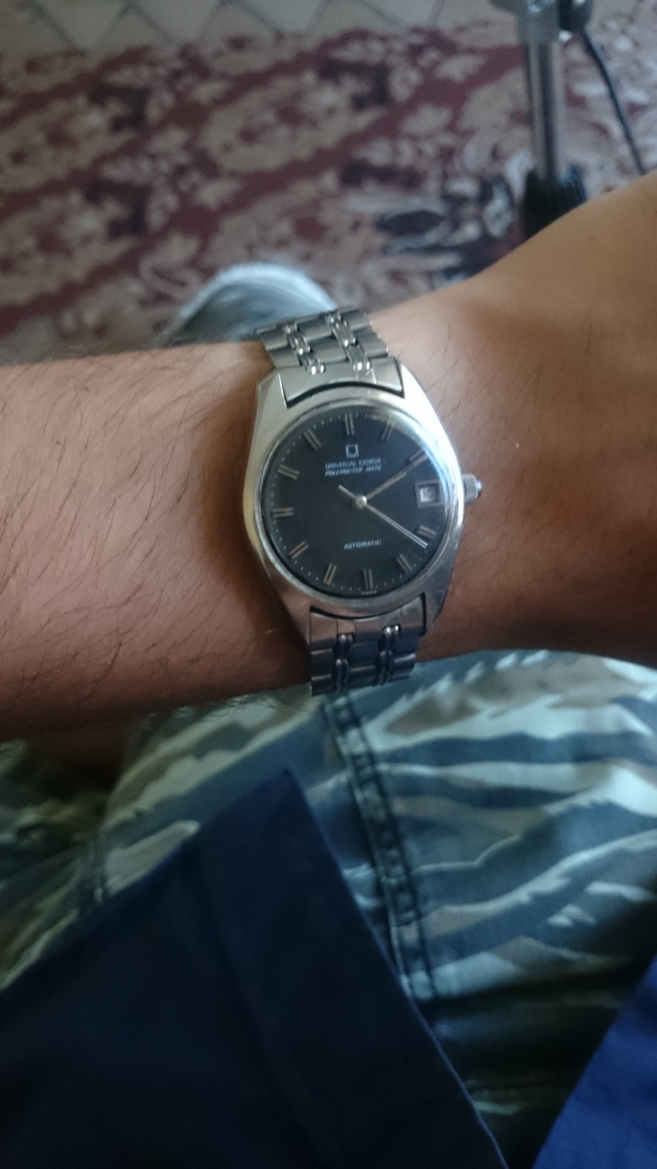Today I'm wearing a diver with its characteristic helium relief valve. I'm an enthusiastic SCUBA diver but will likely never dive below 40m, and certainly will never breathe an exotic tri-mixture of gases while sitting inside of a diving bell. Thus, for me, the He valve is entirely superfluous. However, last evening I met fellow OF member @tpatta and found out that in a past life, he had been a commercial diver had indeed required the utility of the He relief valve! I honestly thought I'd never meet anyone who had use for the valve, and what do you know, I meet a fellow OF member who had used, and needed one! The distinguished gentleman on the right (in the second photo) is @tpatta, and I'm the dweeb on the left.