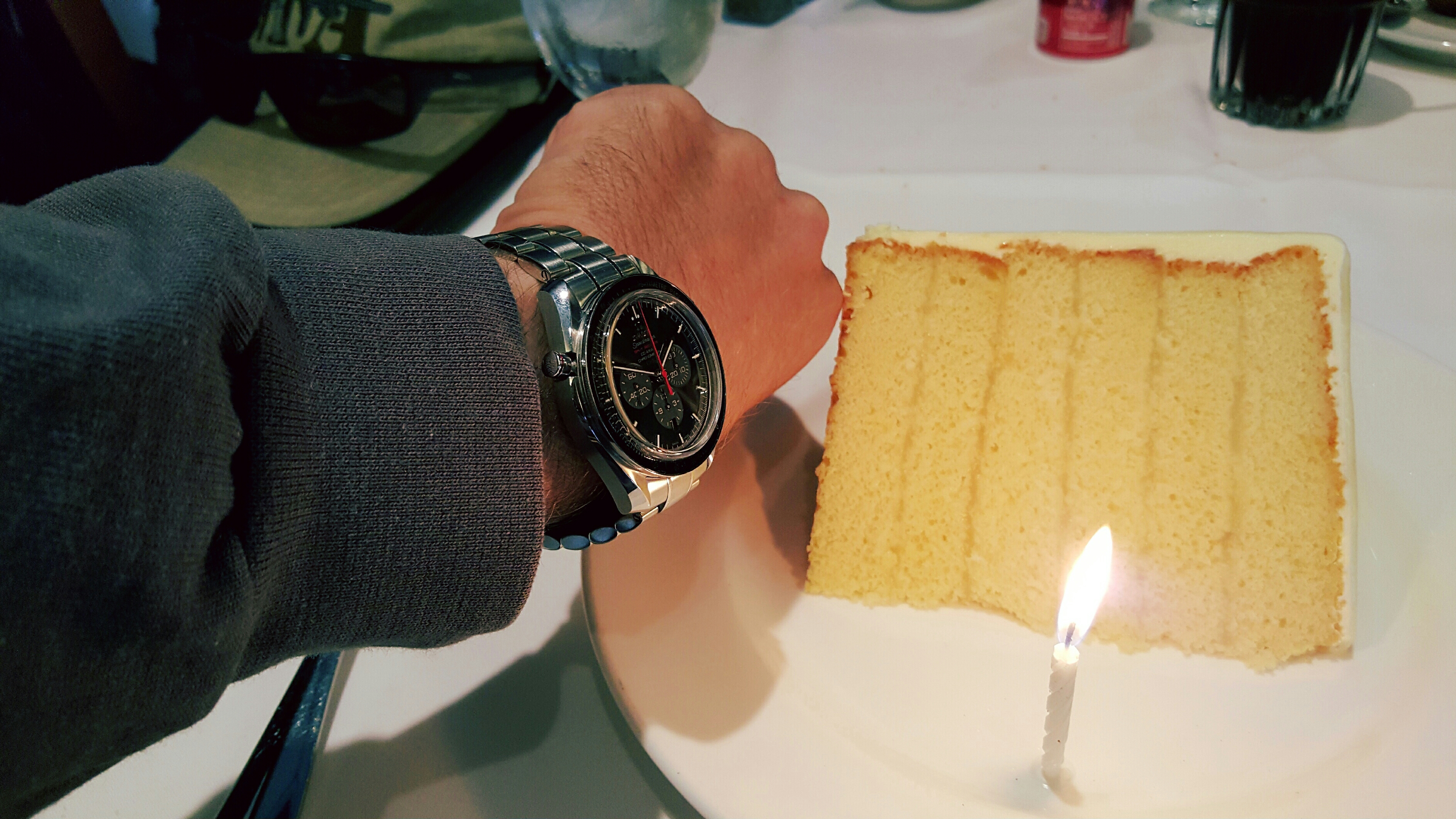 The comedic moment occurred when Enrique suggested that the moonwatch bracelet was the same size as the rattrapante bracelet and i shouks try it on.