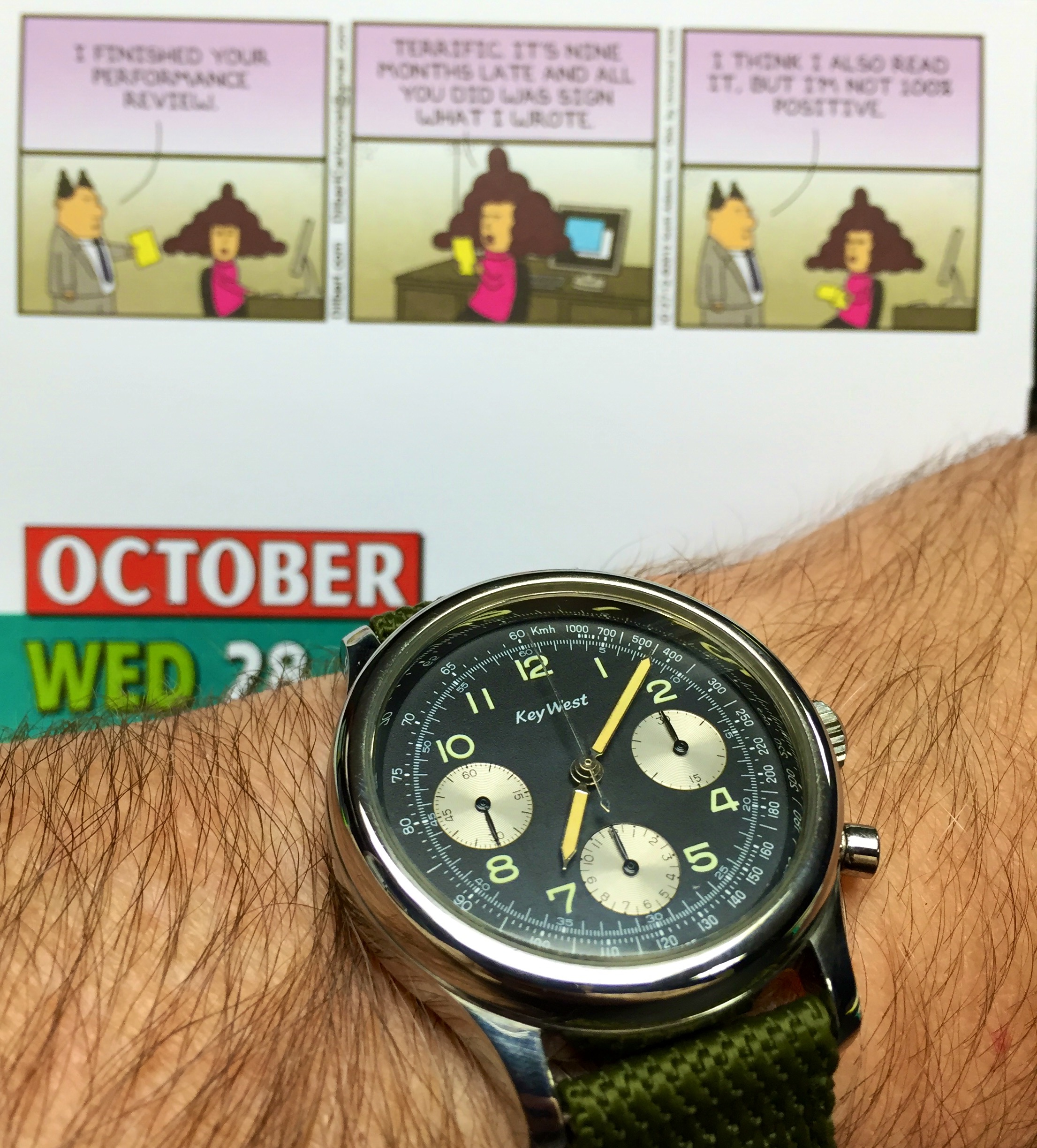 For today...wearing (using) my Longines Hour Angle chronograph replica to time the repair evolution of the knit cuff degradation of my almost 25 year old NOMEX flight jacket...at Dunkin' Donuts. 👍