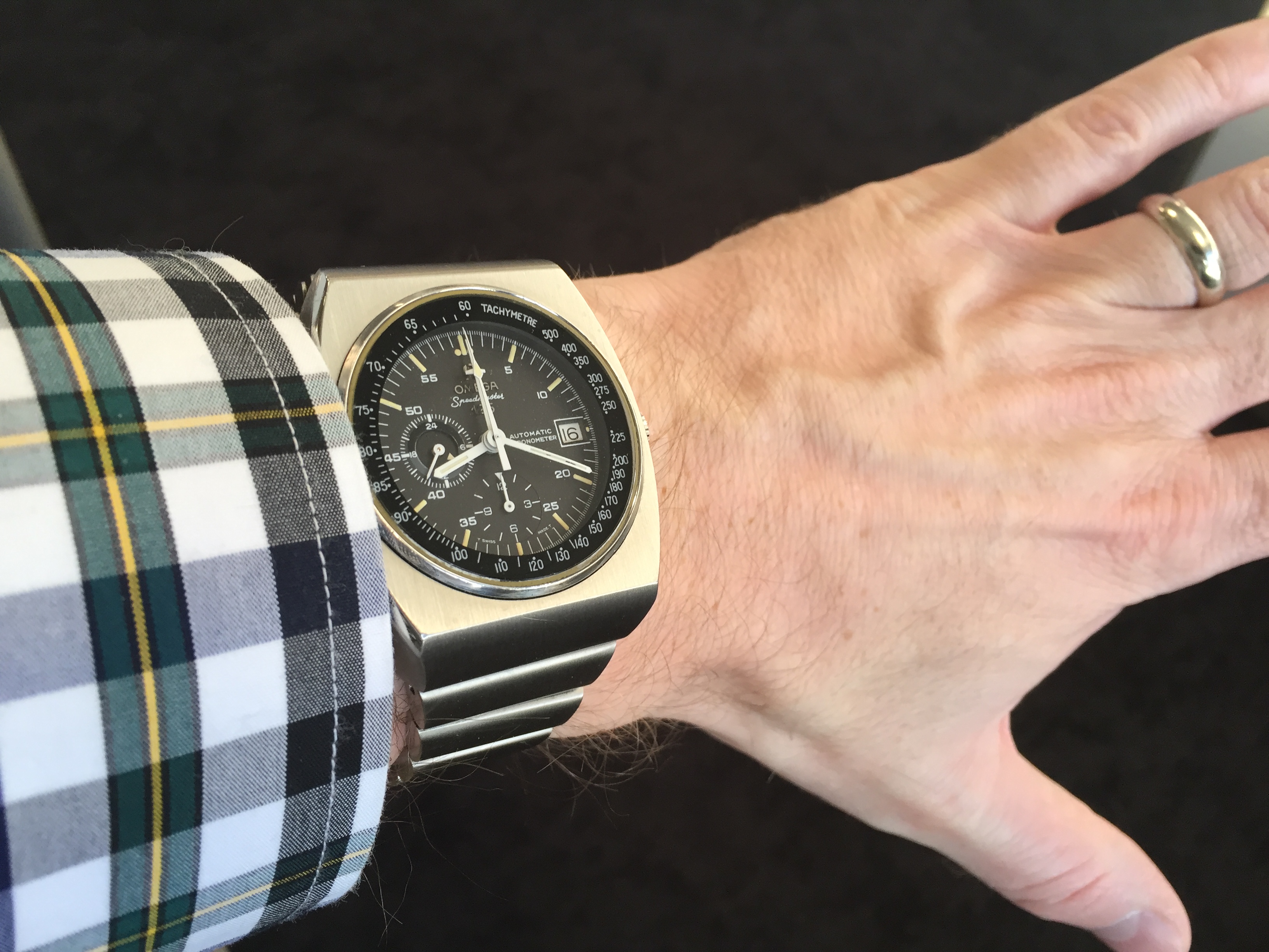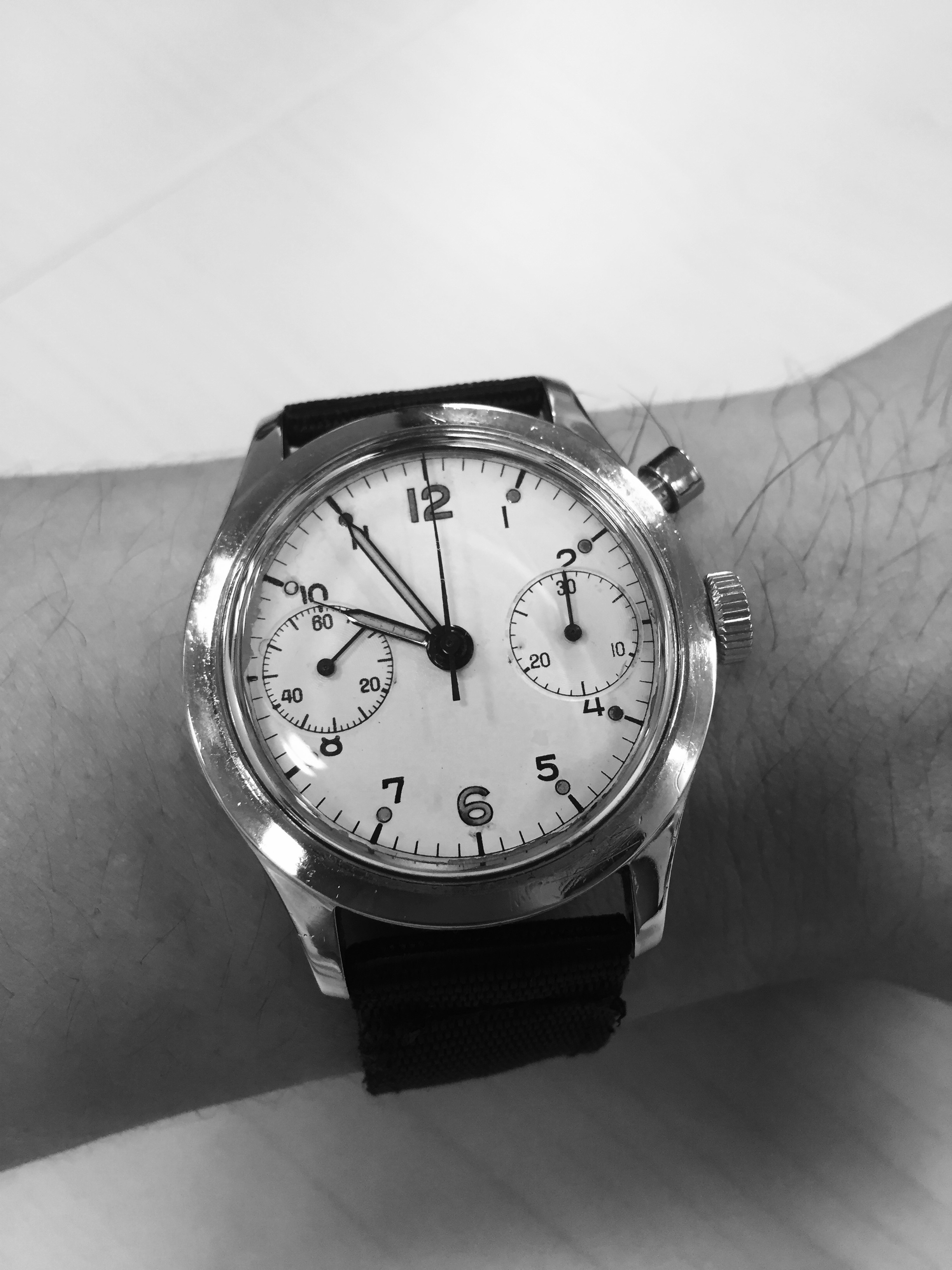 Posts 5,334 Likes 129,558 Lou P 路Nov 16, 2015路YaY! Forgive the photo re-use, but wearing my 5441 Portuguese today. Pop quiz: The 5441's hour hand is longer than an SMP Chrono's minute hand. True or False? 5441 hour hand measurement (Note the minute hand pointing toward 1:00). Keeping the calipers set to the same length... No wonder this watch reminds me of this old movie poster.馃榾