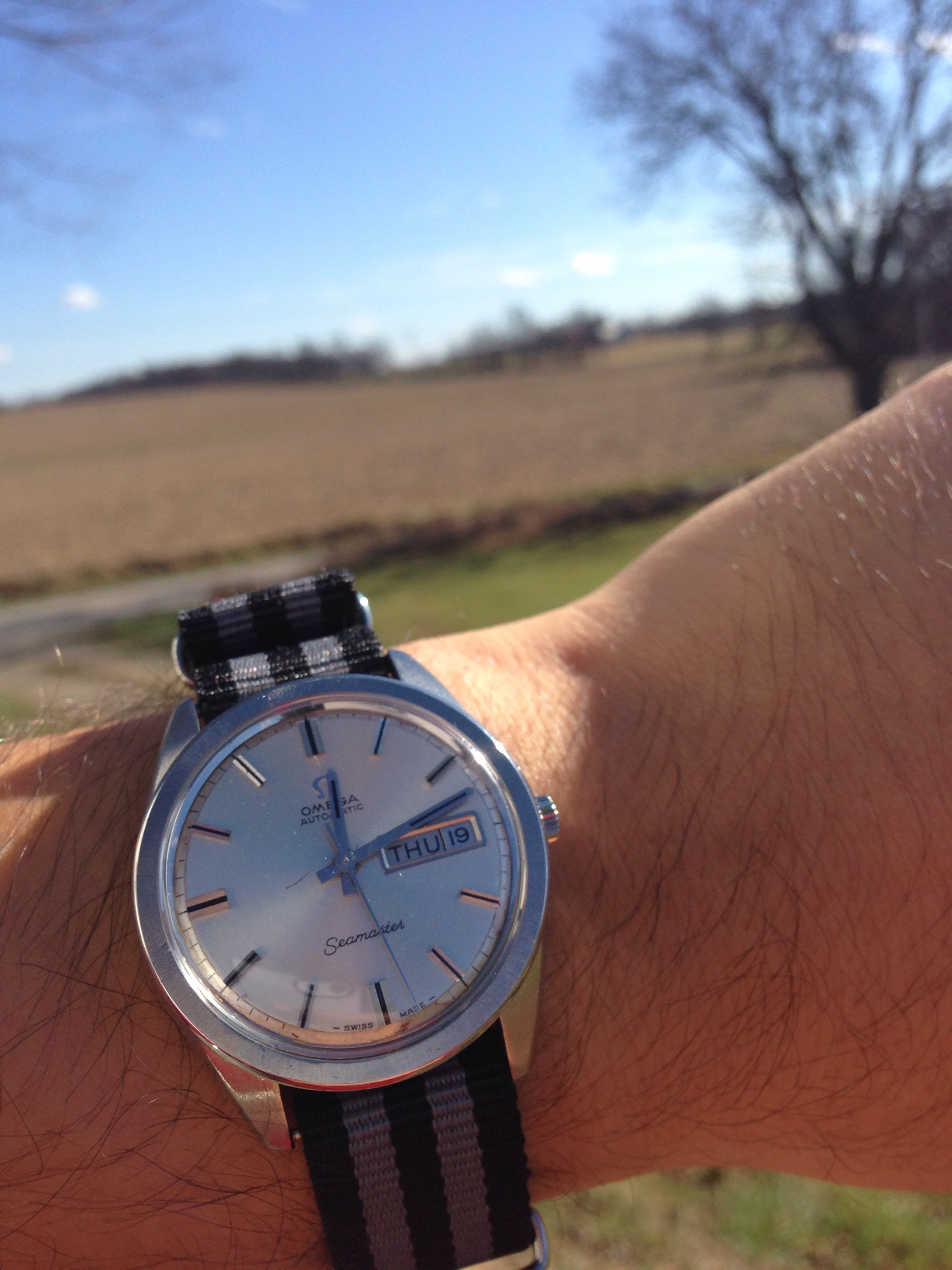 Posts 957 Likes 3,177 LawBrk ·Nov 19, 2015 On a "Bond" nato, as close as I'll get to a Bond LE for some time. Just back from the spa.