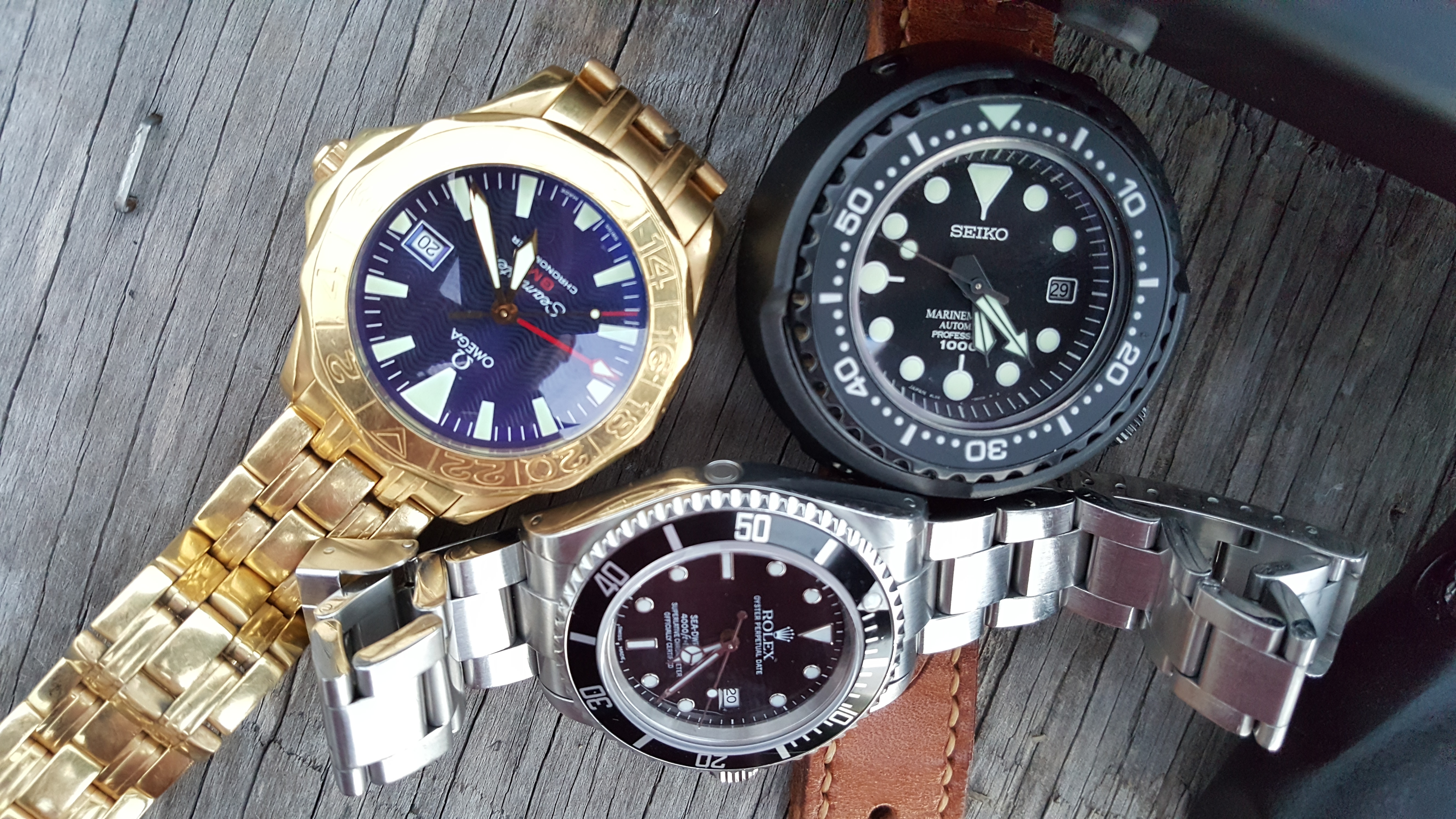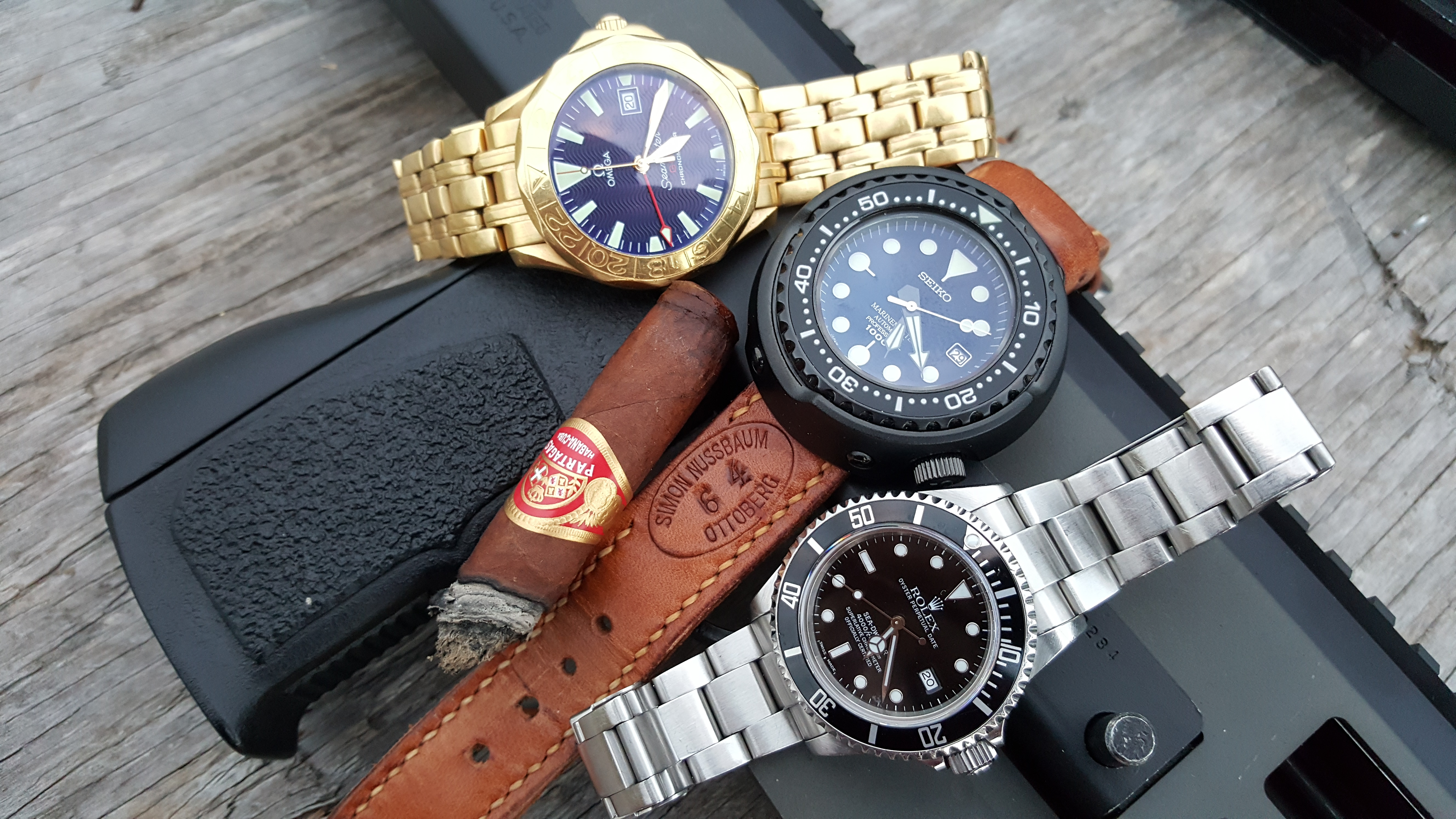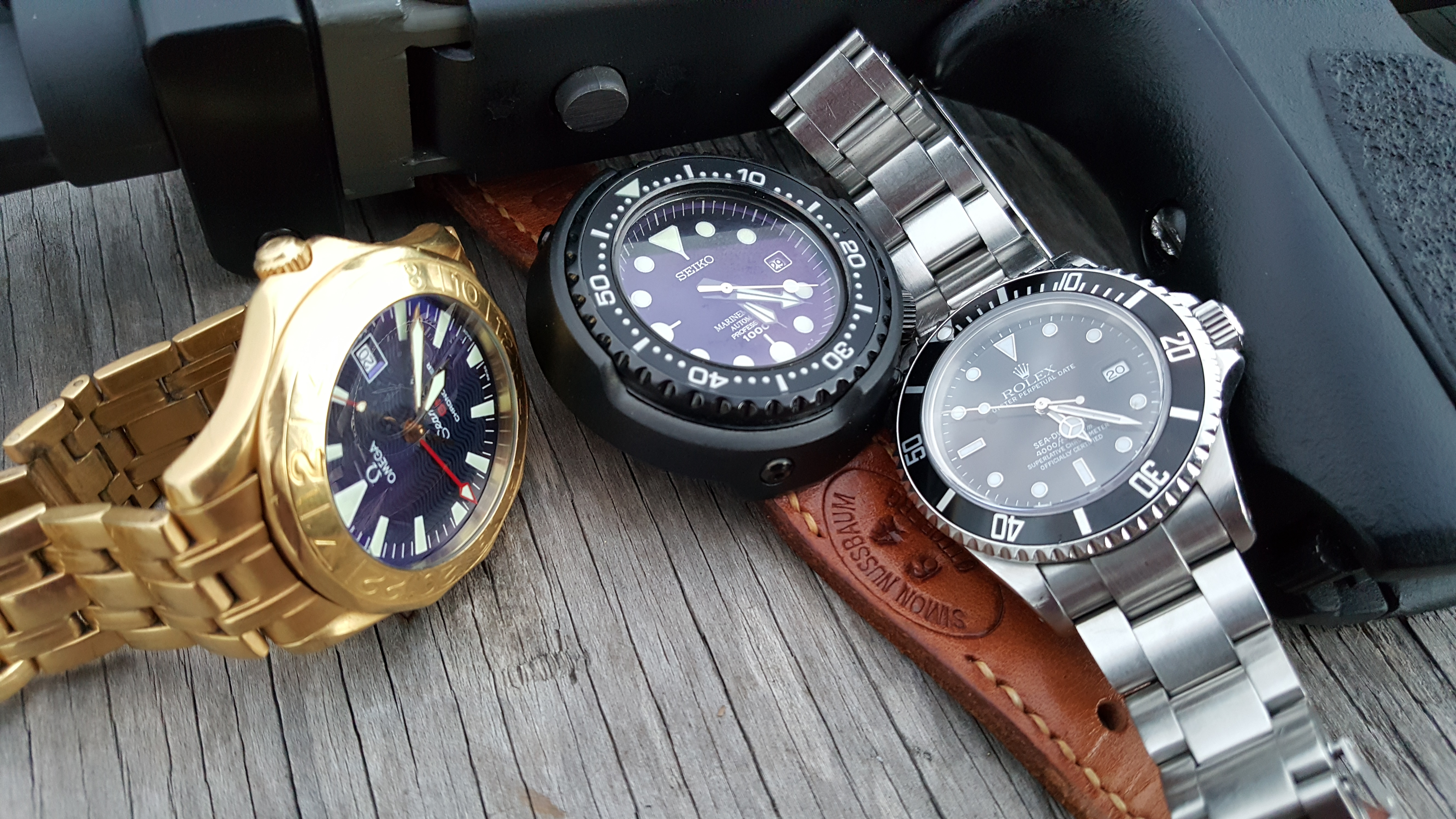 Posts 361 Likes 1,158 sc-texas ·Nov 20, 2015 It's watches and Machine Guns Friday! My Seiko Emperor Tuna, a 50th anniversary Seamaster GMT and a Sea Dweller