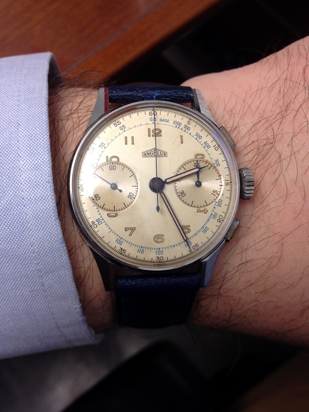 What a crisp example. Judging by that bezel, civilian? You have inspired me to pull out my funky Airain. Still looking for the chrono sweep seconds hand as it was replaced sometime during its life.