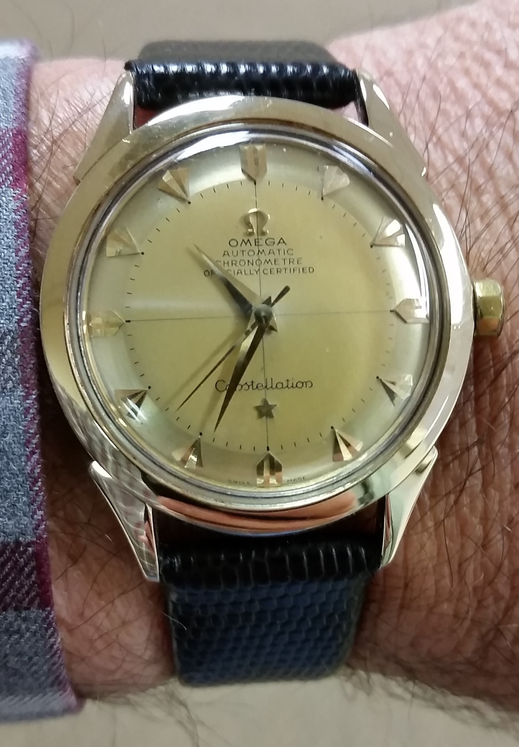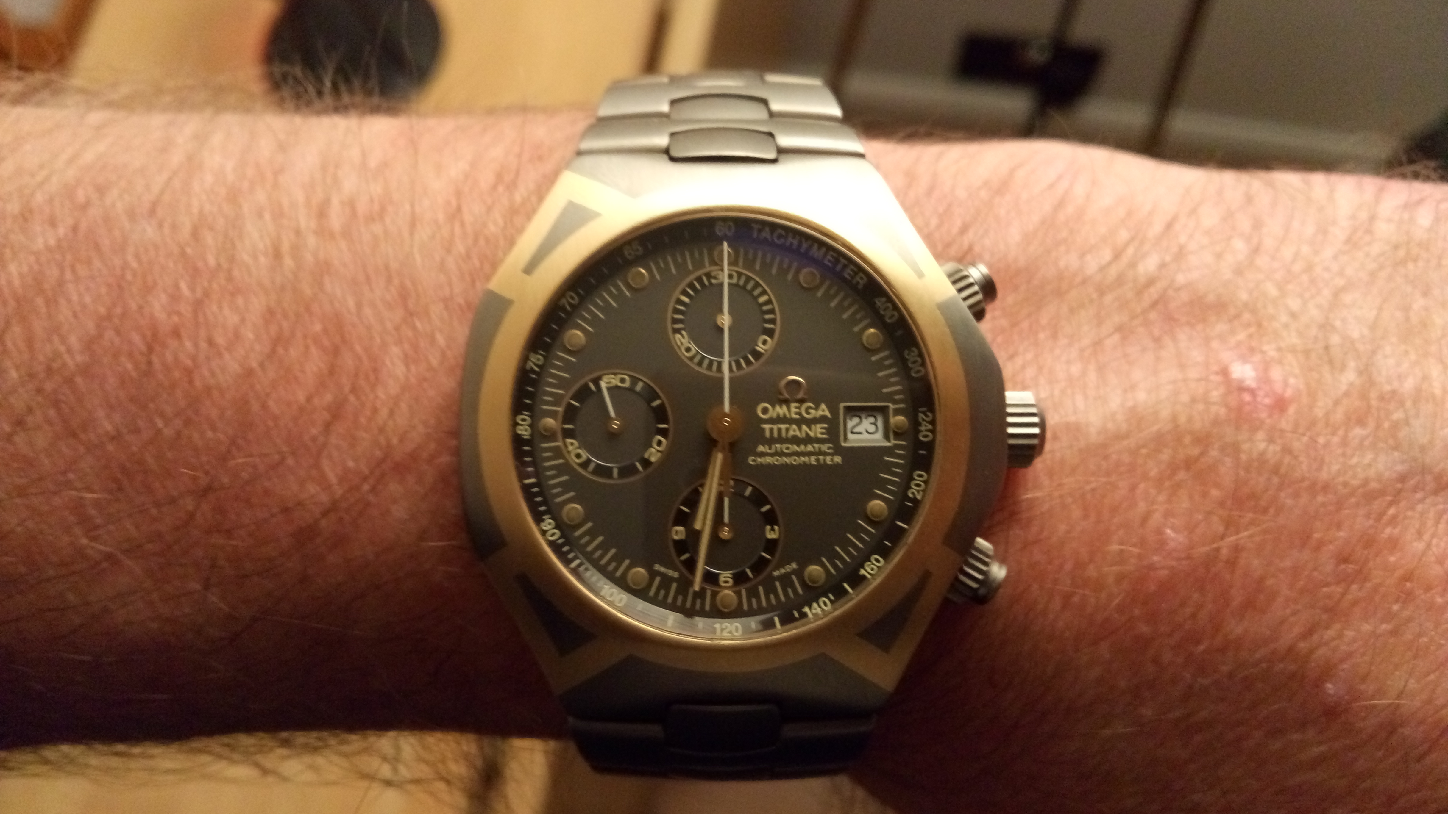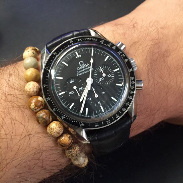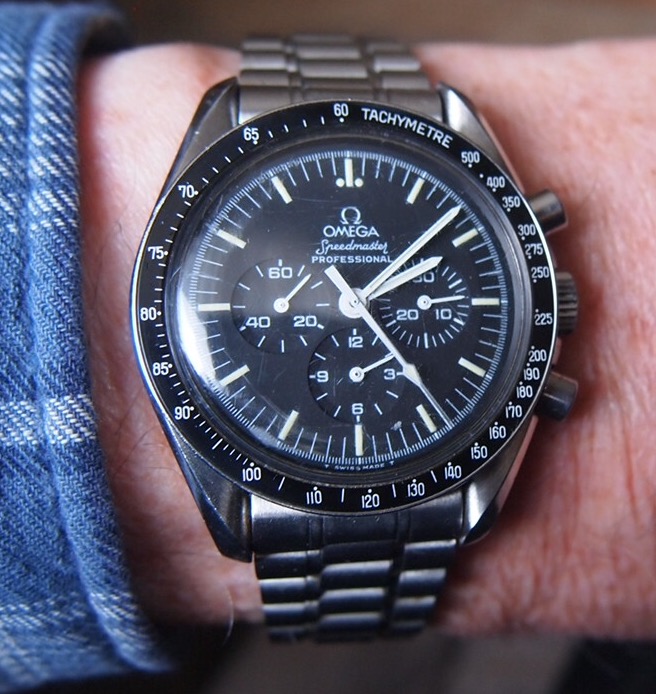 Wearing two Omegas today. Each for a different reason. The 30-year old Seamaster needed a cell, and the 1989 commemorative Apollo XI Speedmaster needed to have the case back engraving refreshed after 25 years. Neither had been out of the safety deposit box for a while, so they were crying for wrist time. File photos, but I am wearing them both. Took the 60 year old calibre 355, date at 6:00, off today to give it a rest. It has performed flawlessly for over three months.
