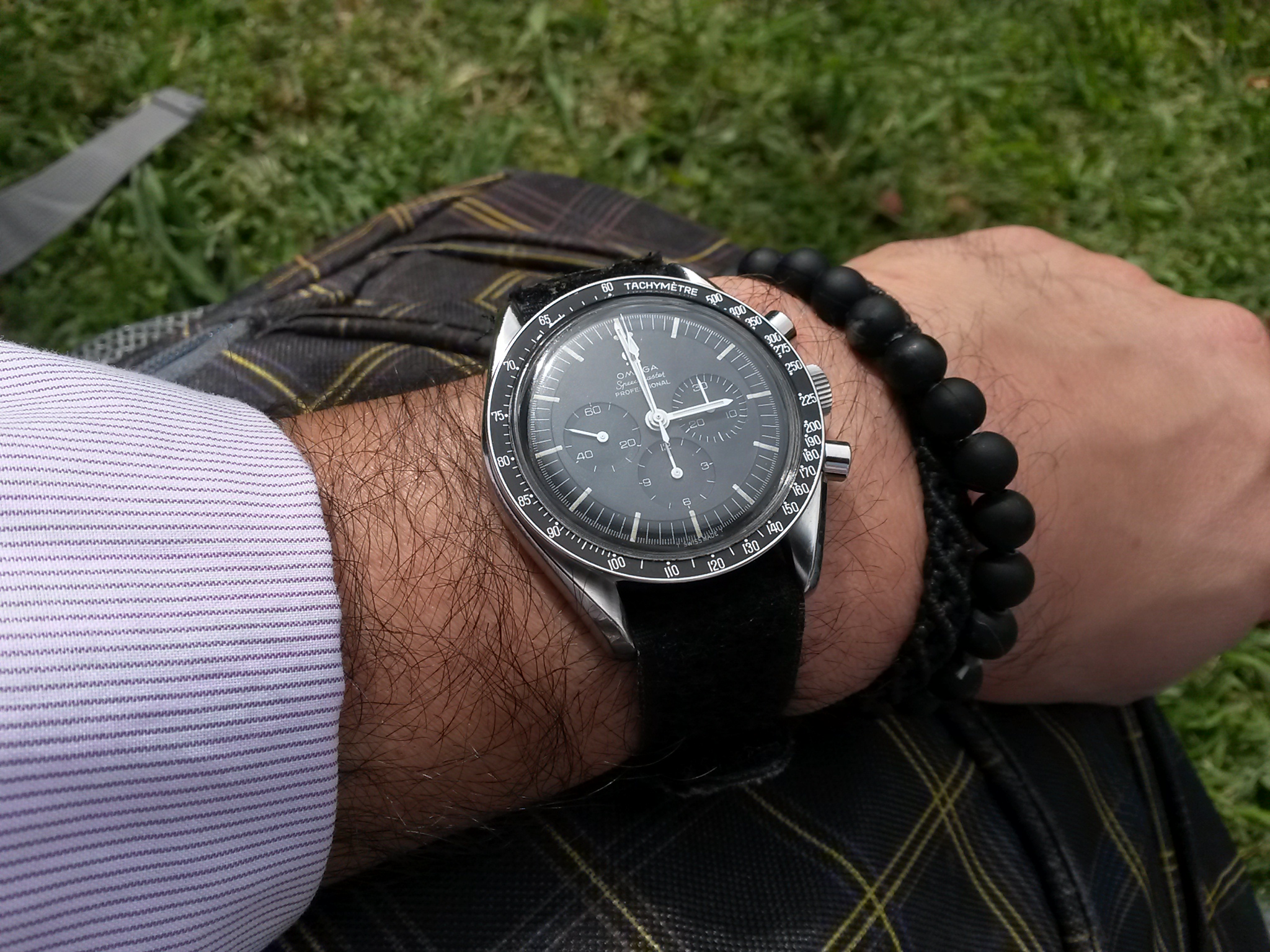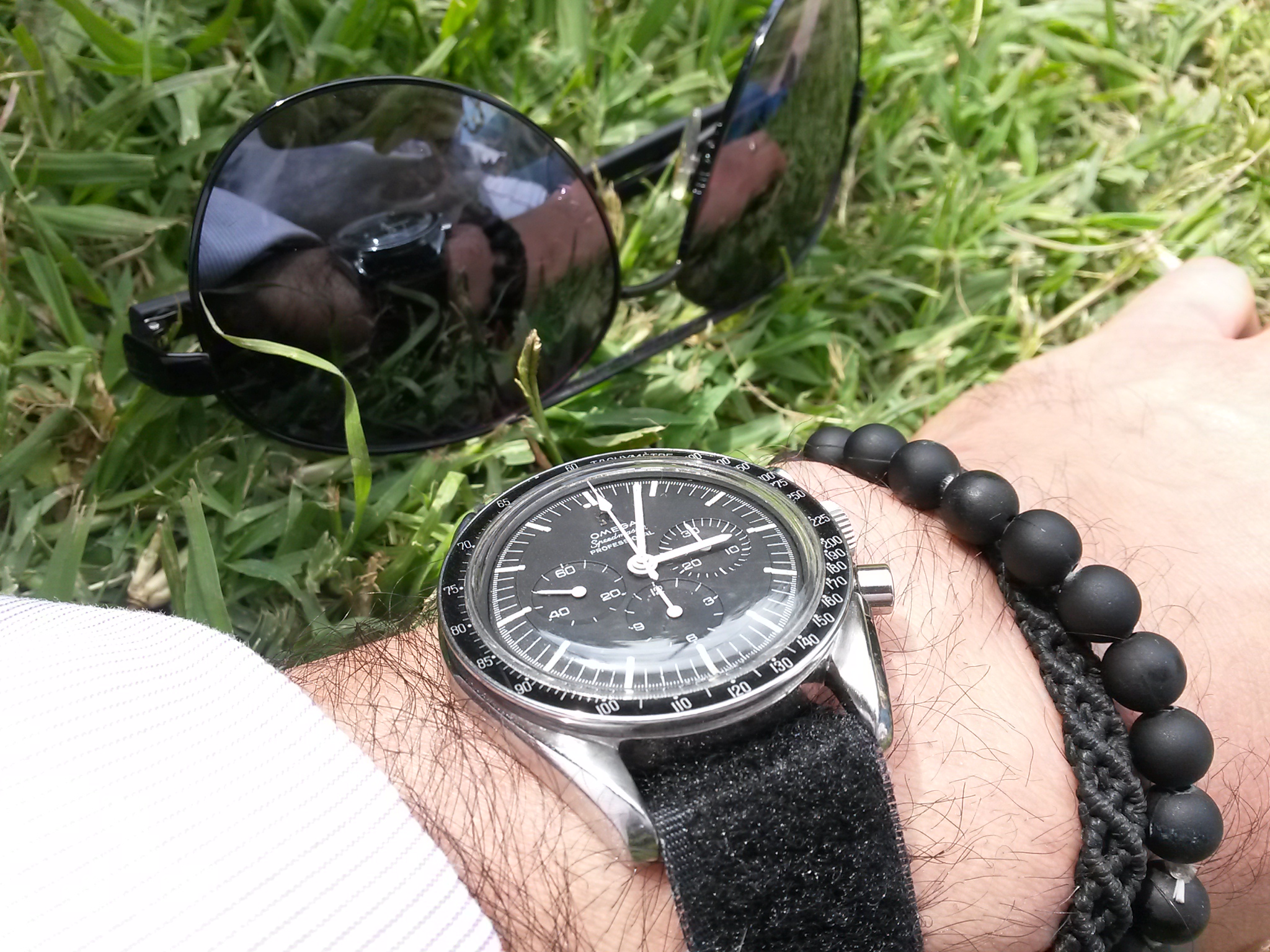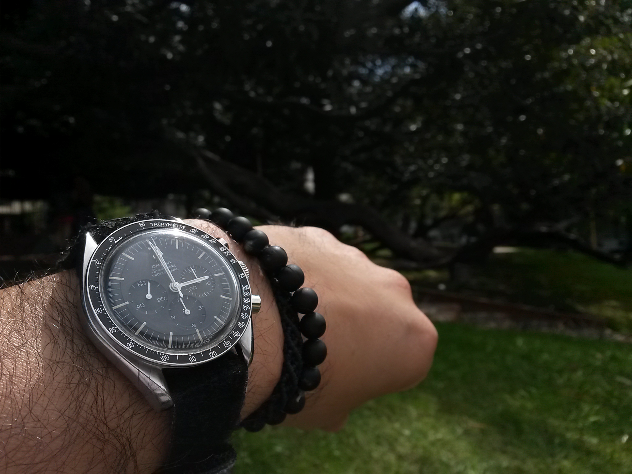 Wearing two Omegas today. Each for a different reason. The 30-year old Seamaster needed a cell, and the 1989 commemorative Apollo XI Speedmaster needed to have the case back engraving refreshed after 25 years. Neither had been out of the safety deposit box for a while, so they were crying for wrist time. File photos, but I am wearing them both. Took the 60 year old calibre 355, date at 6:00, off today to give it a rest. It has performed flawlessly for over three months.