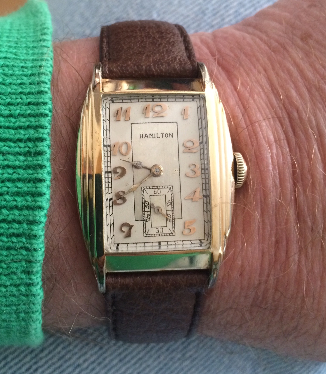Thanks, Genghis. Nothing very exciting under the hood, a val. 7733, and it's only 36 mm or so. But the Singer dial and handset were hard to resist. I fear my wife will like it as well...