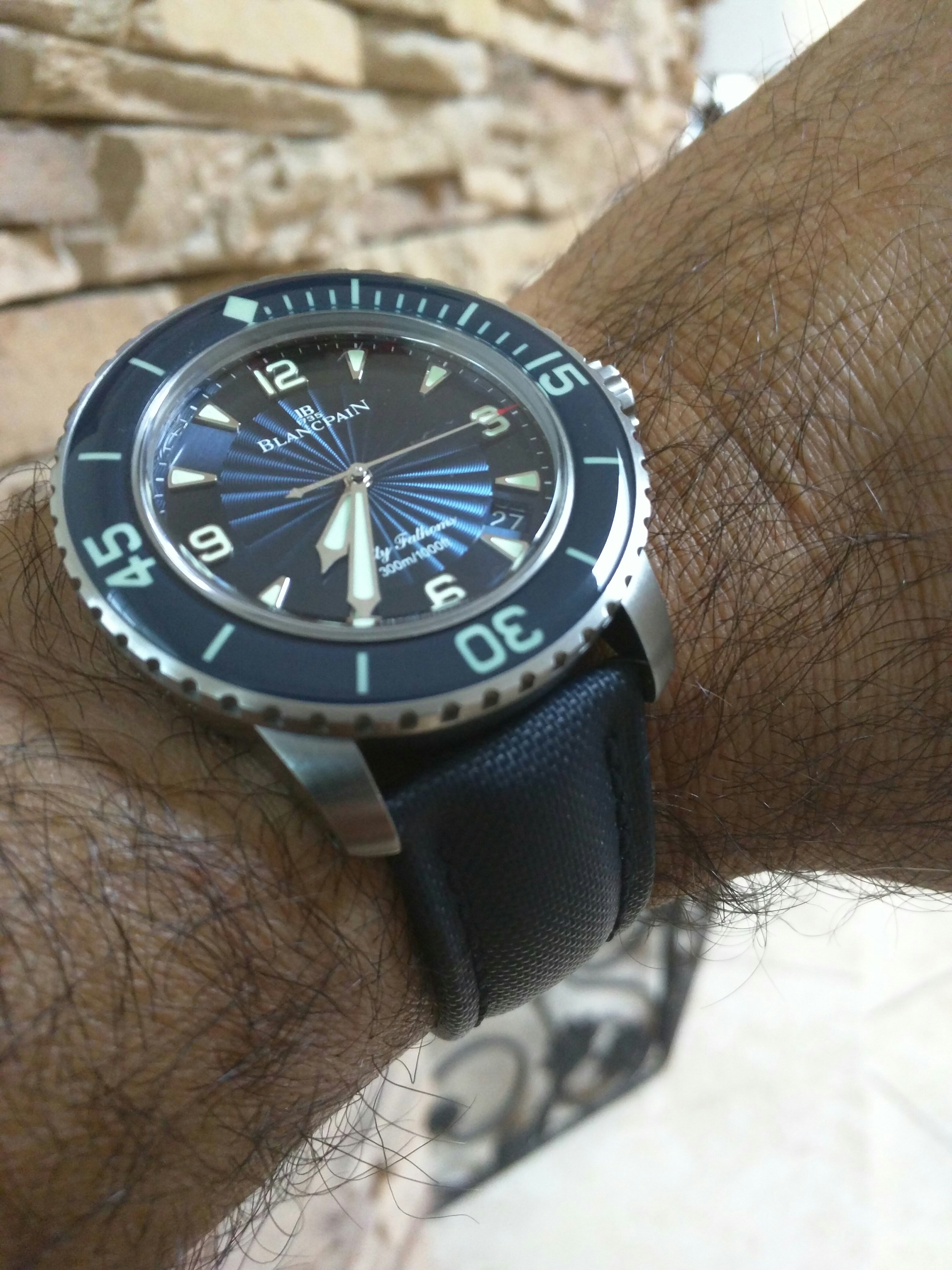 Posts 4,879 Likes 31,871 Taddyangle 路Nov 27, 2015 Fifty Fathoms Friday... The little doggy chewed up my in-laws watch strap. Had a replacement strap for him.