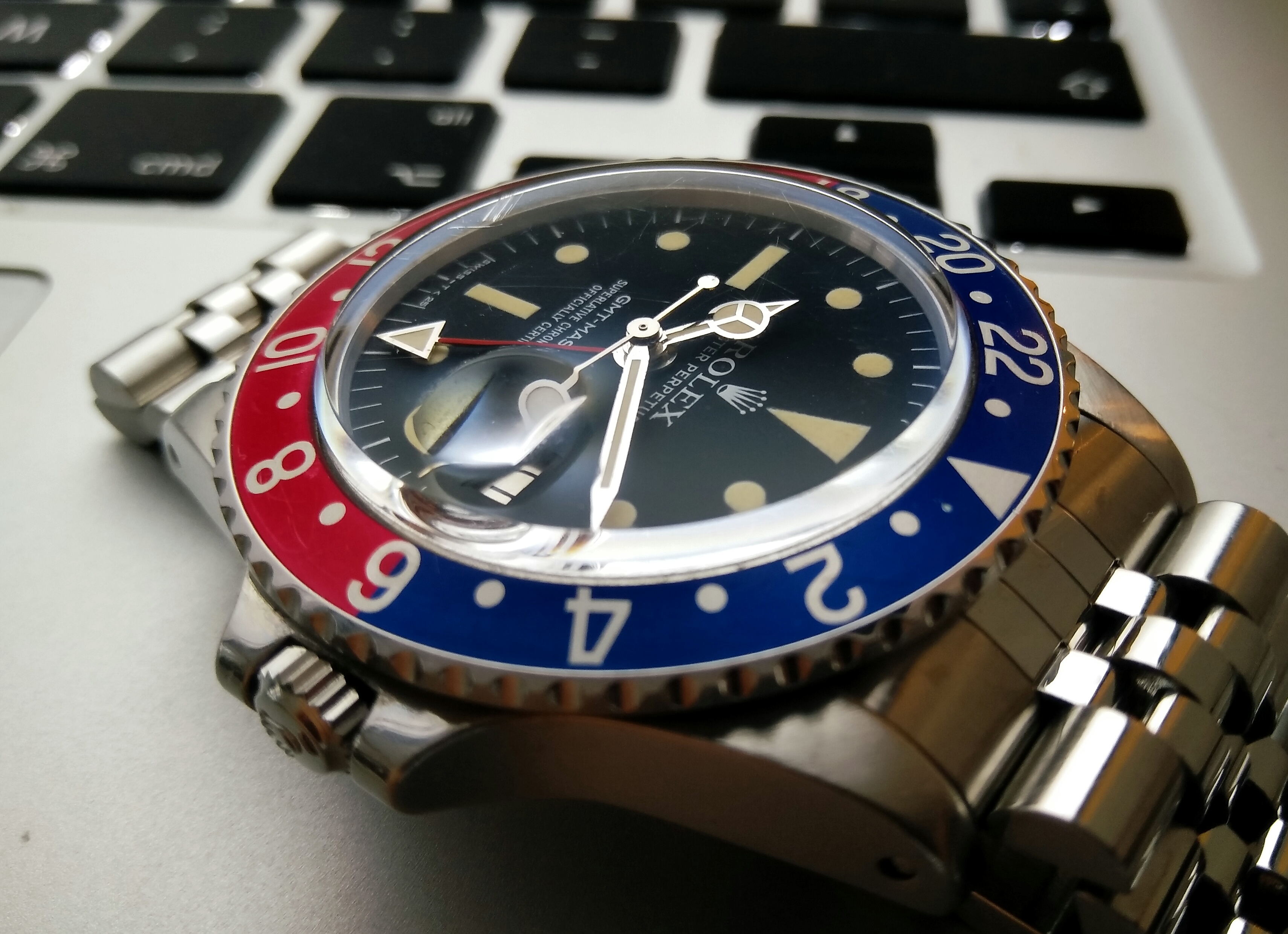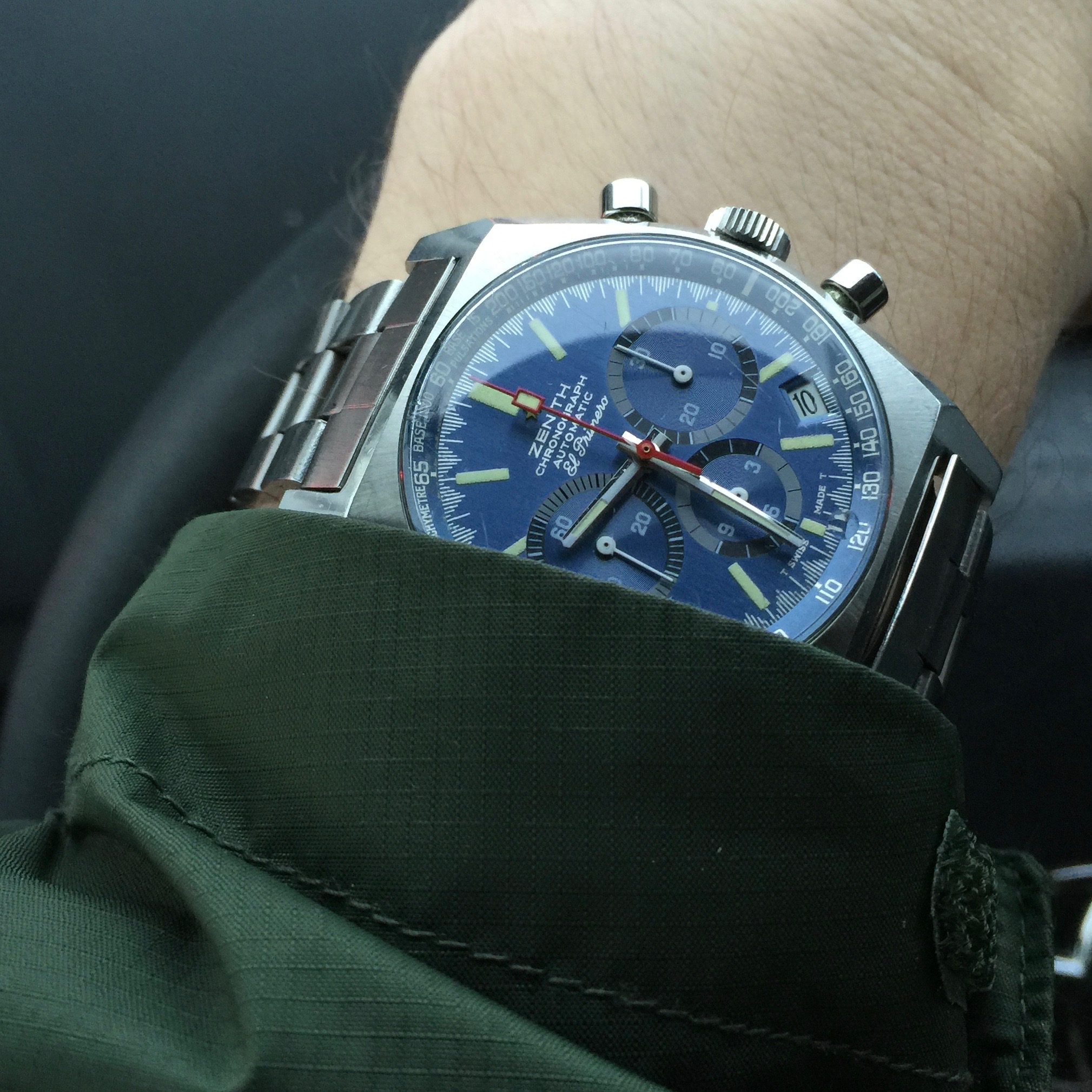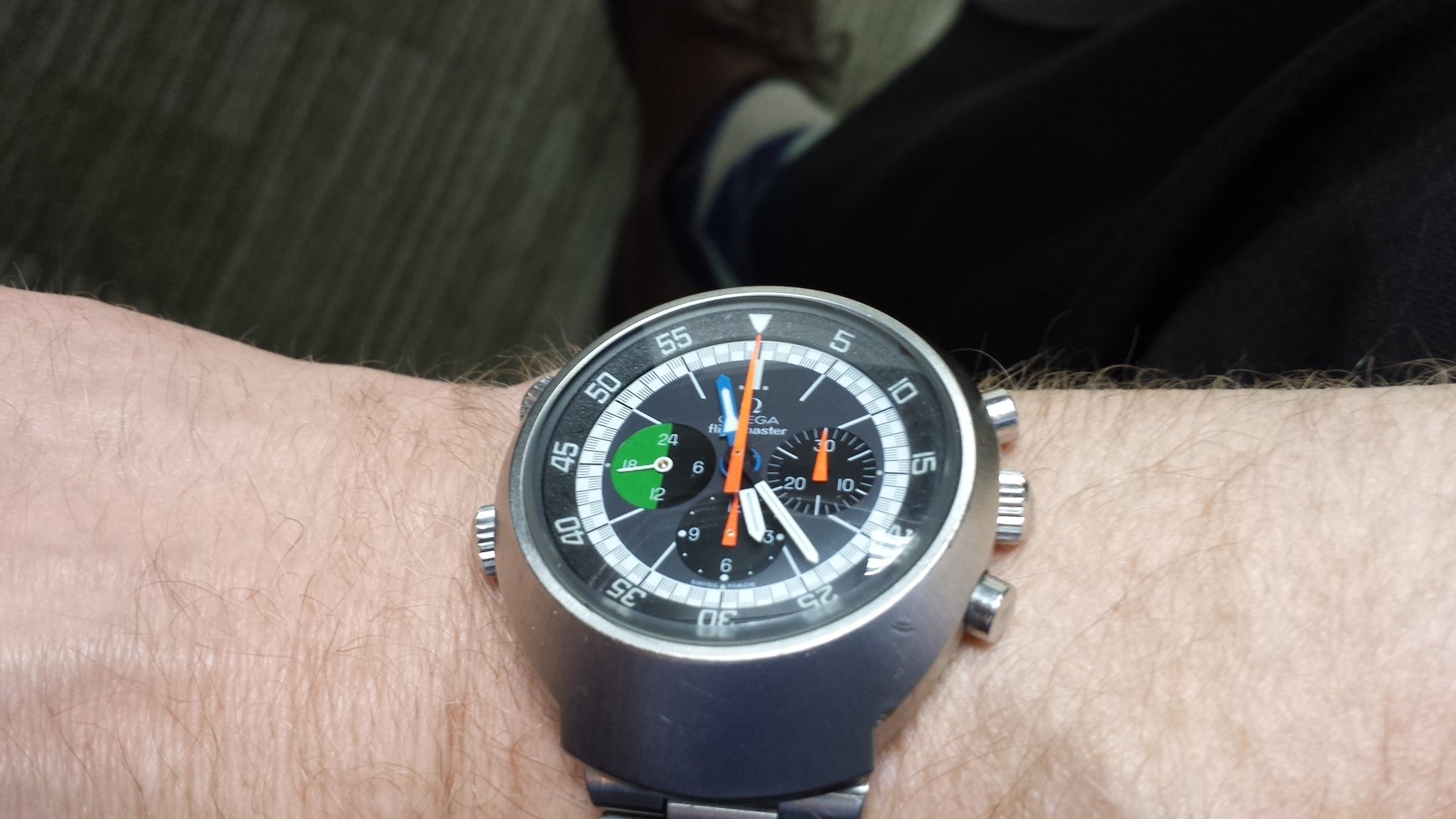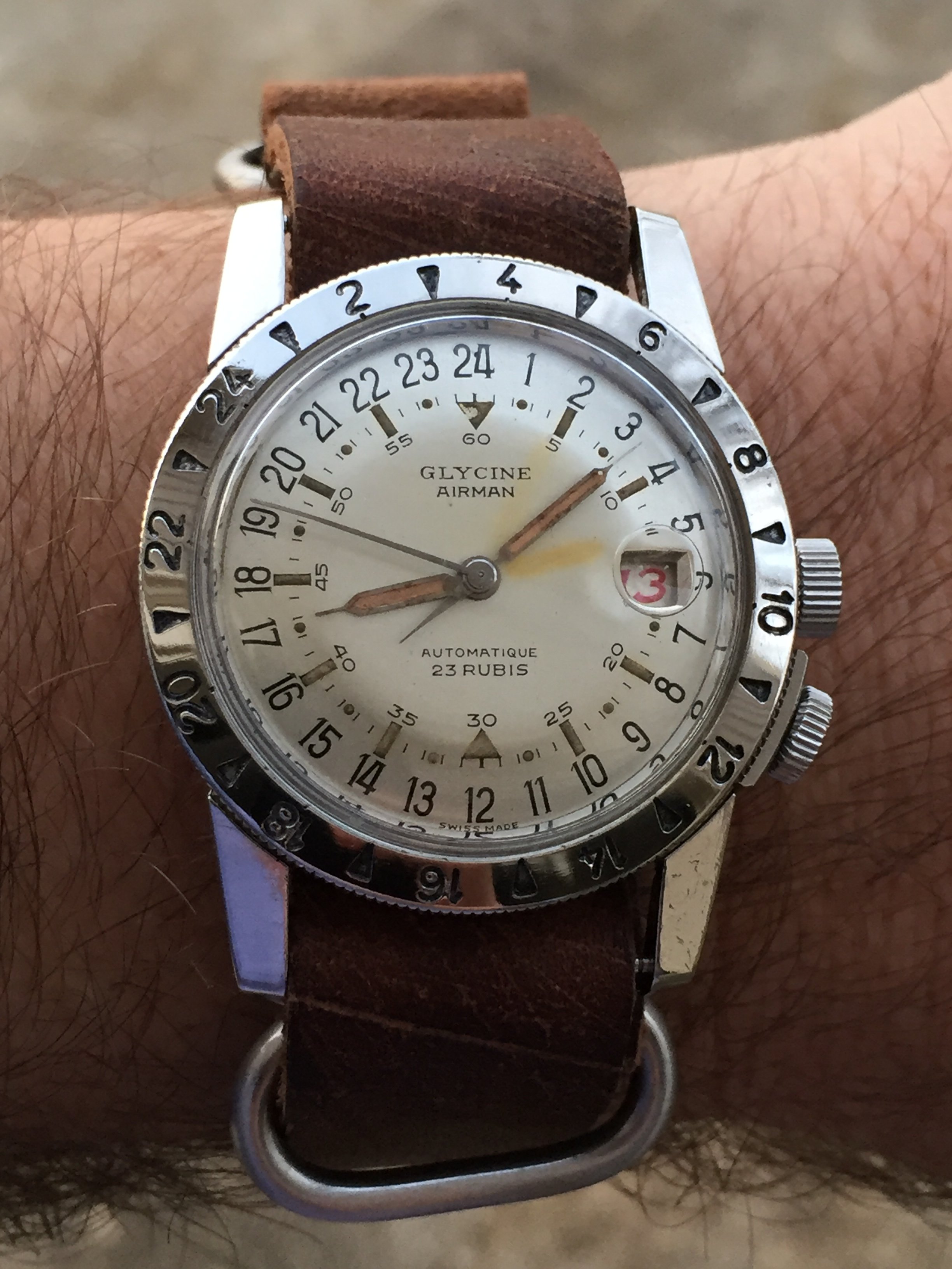 Back on my wrist again after a too long stay in sick bay while it found the parts I needed, and found the time and inclination to finish the job. This one is a style 280, calibre 330 Gruen Curvex, gold filled case, 45 mm x 20 mm. The unusual movement layout was designed for use in the Curvex series, and was used only in that series. Notice the pronounced curve which allows the 45mm long case to hug the wrist. Better strap forthcoming.