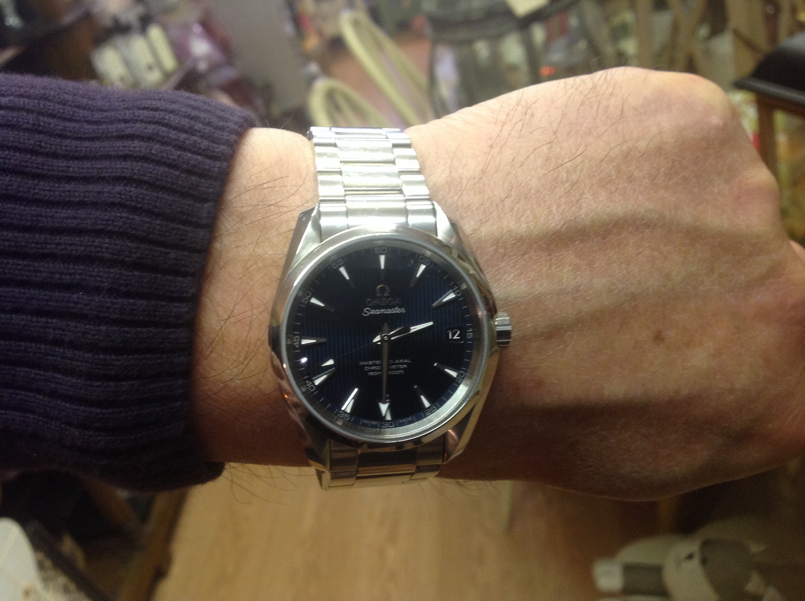 Got up off night shift and showered shaved and ready to go with my first watch The Aquaterra Master co axial. My first proper watch.taking my fiancée to Bruges for the weekend and this is going with the nice tweeds and brogues... Let's hope the rain stops.