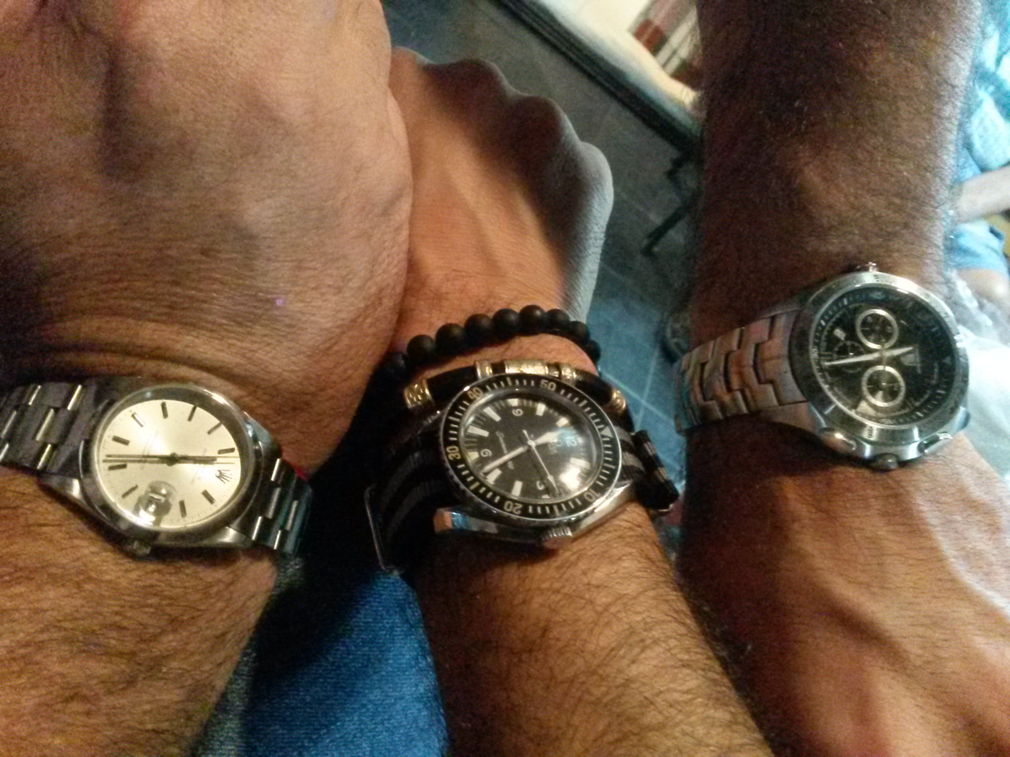 Posts 231 Likes 1,059 constellationM 路Dec 13, 2015 Nice Trio !! Is that CN Tower in your avatar?? ricardorio Saturday night with my very friend (Rolex) and my brother (Tag Heuer) .... and my Seamaster 300 165024-68 (my first Omega)