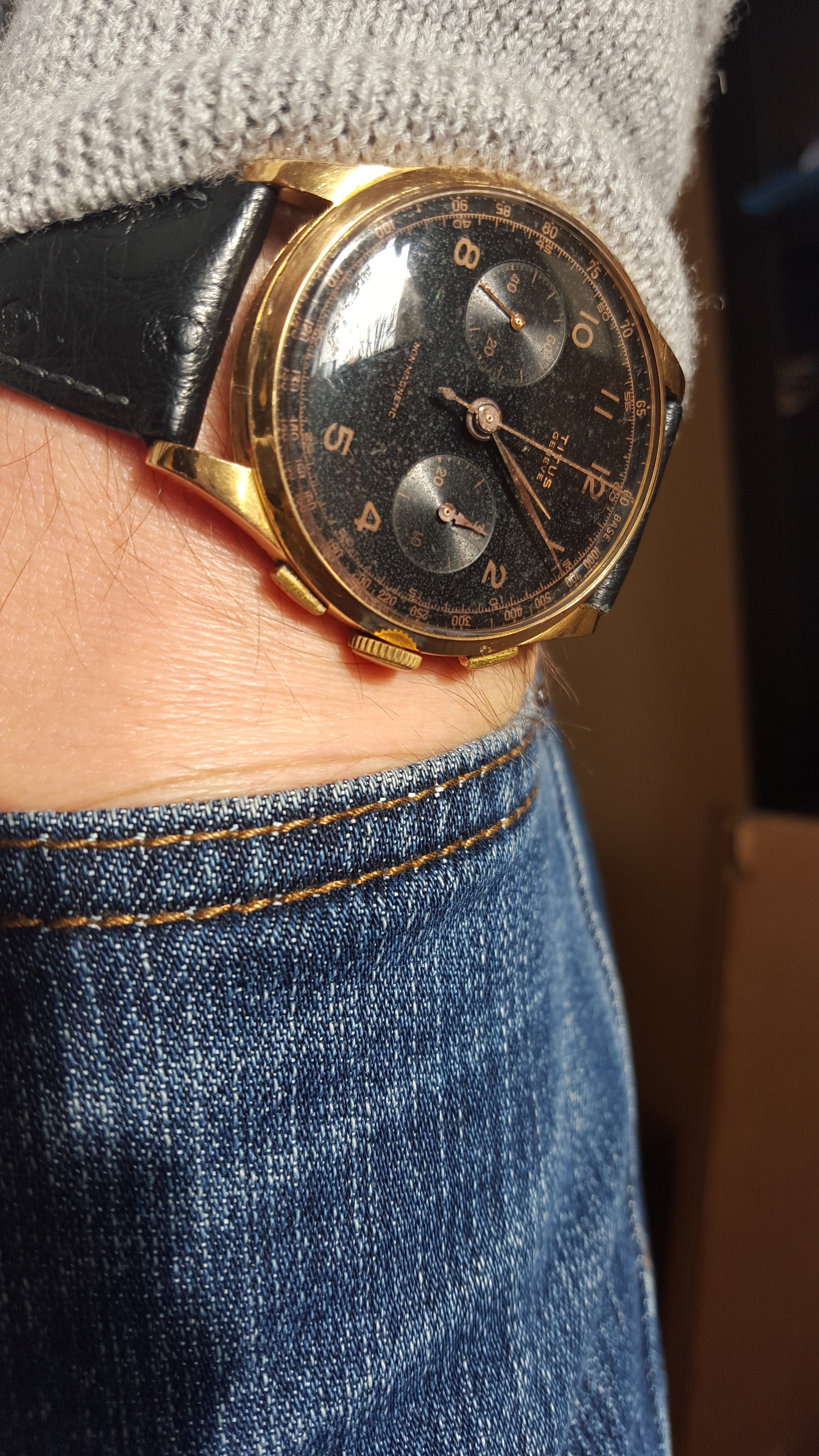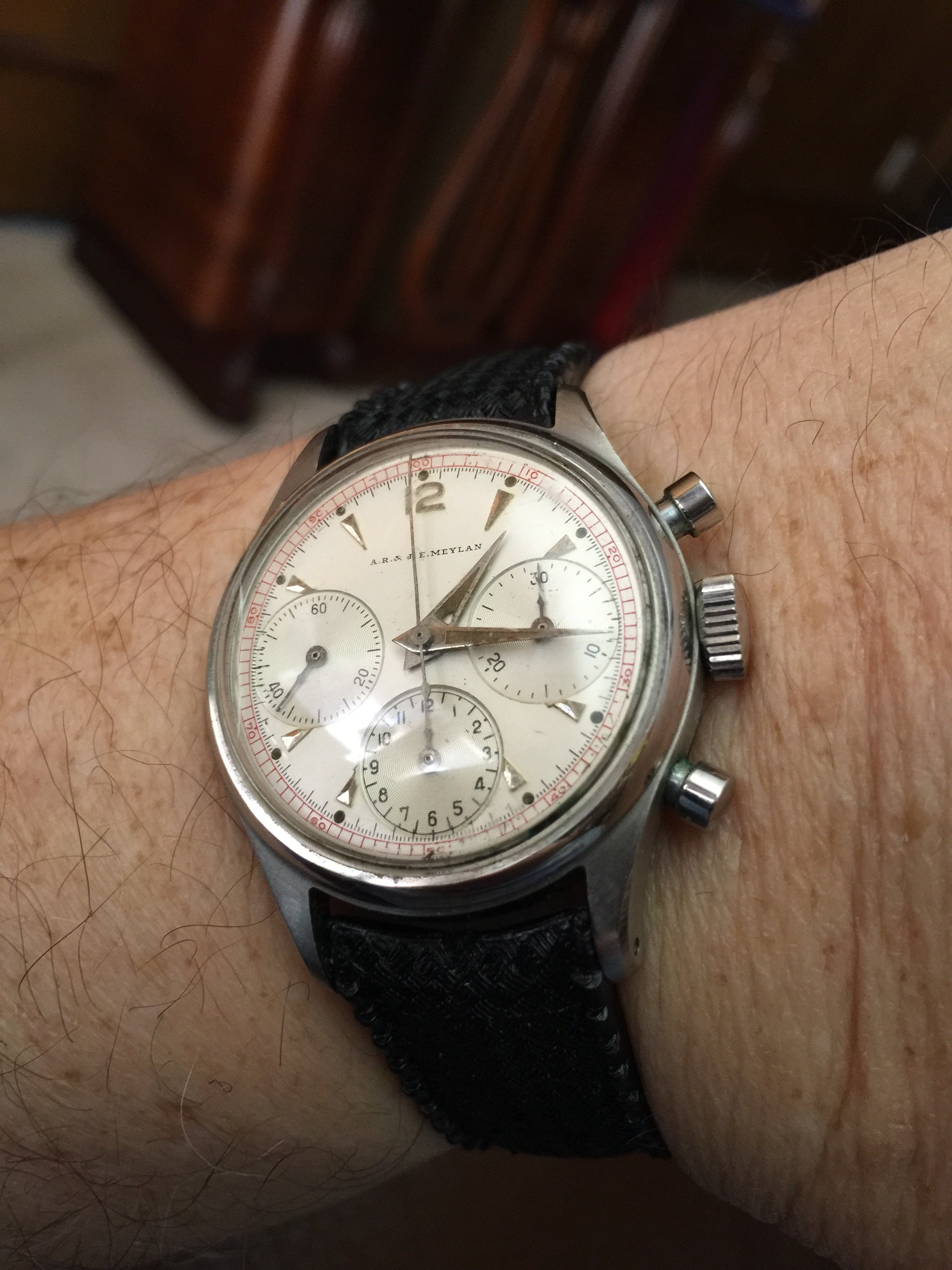 Posts 3,849 Likes 27,365 adam78 ·Dec 14, 2015·Adam @ ΩF CdnWatchDoc Adam, that is gorgeous!! Original dial? Man, I love that!! Thanks. Yes, all original as far as I can tell. It's so perfectly preserved that it makes one wonder, but there is definite even patina. It's a pretty large watch for the era (25 x 42 mm lug to lug).